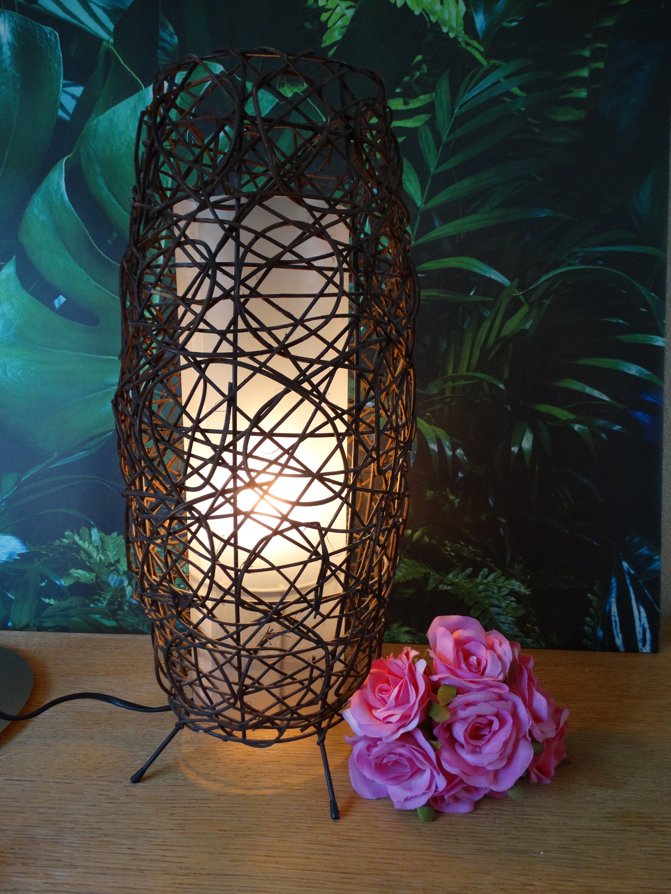 Very decorative table lamp made of rattan, cane!