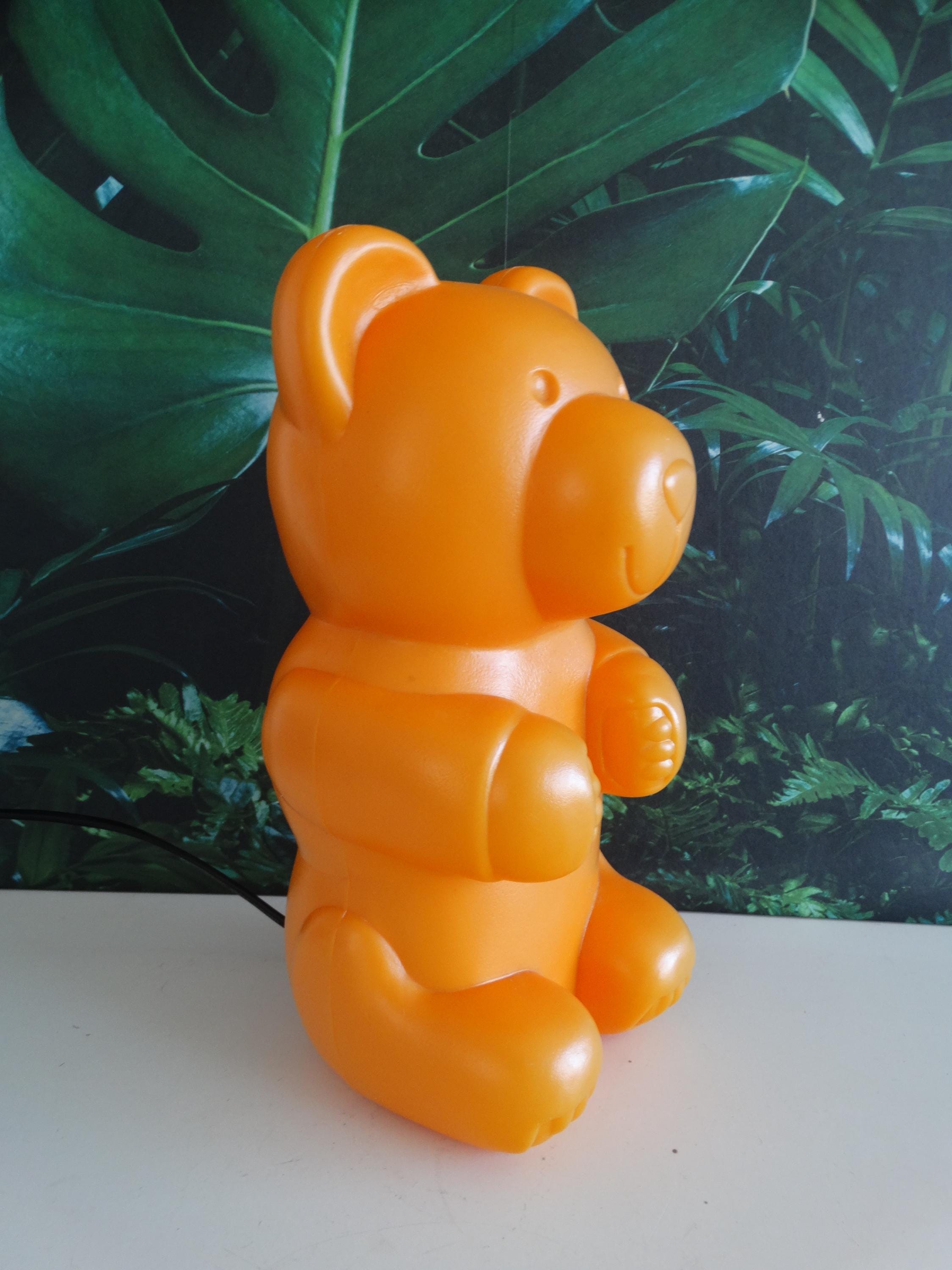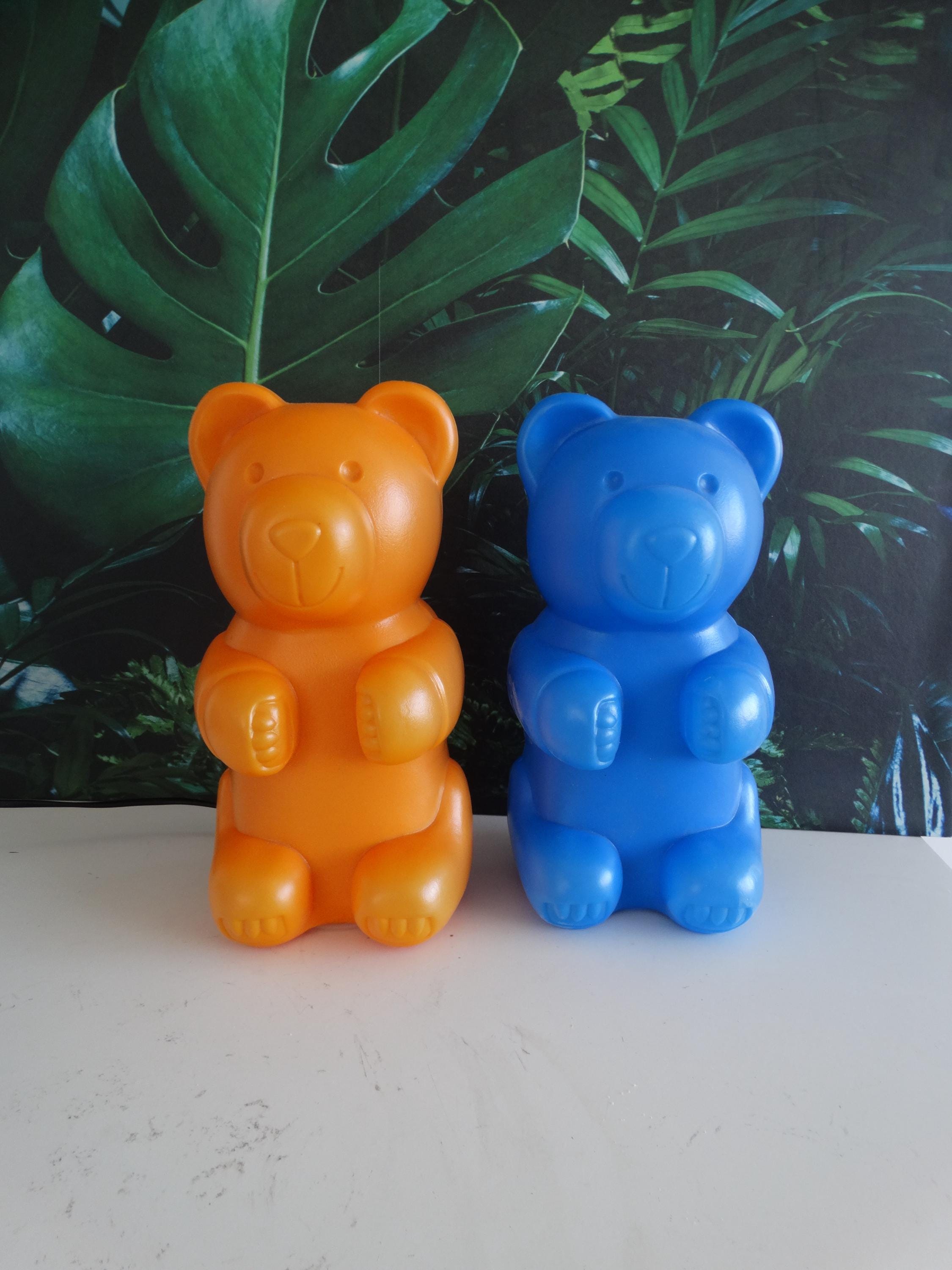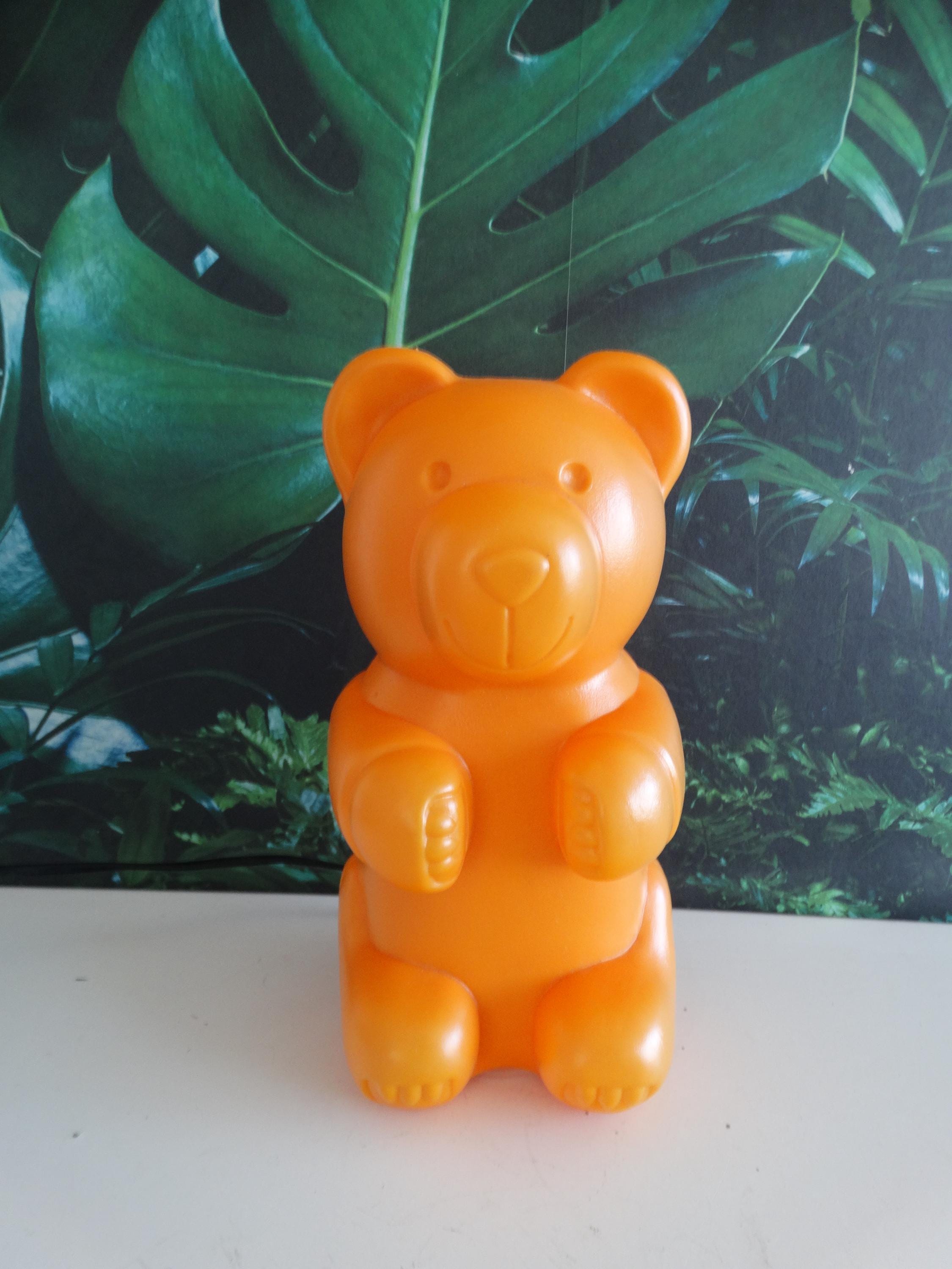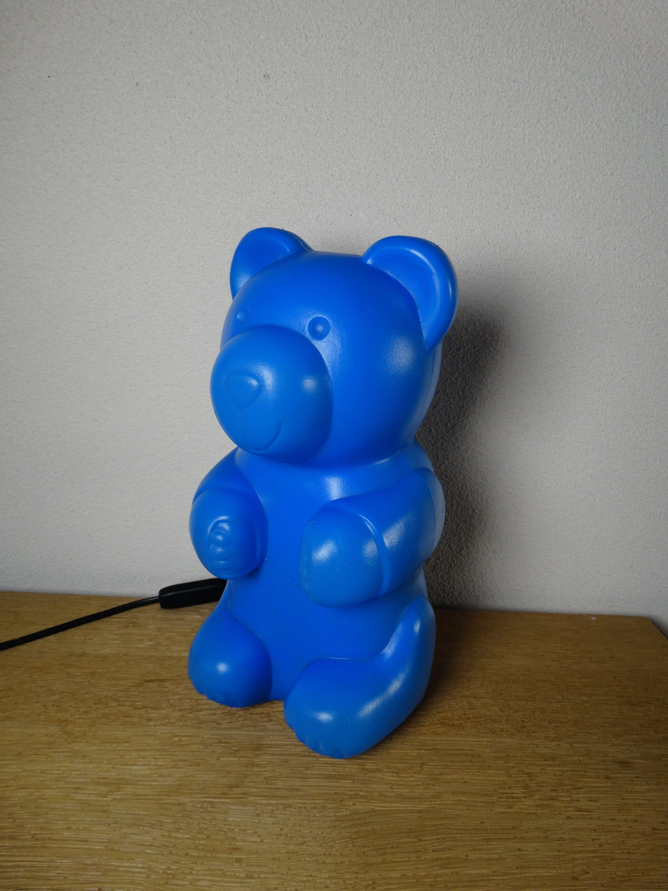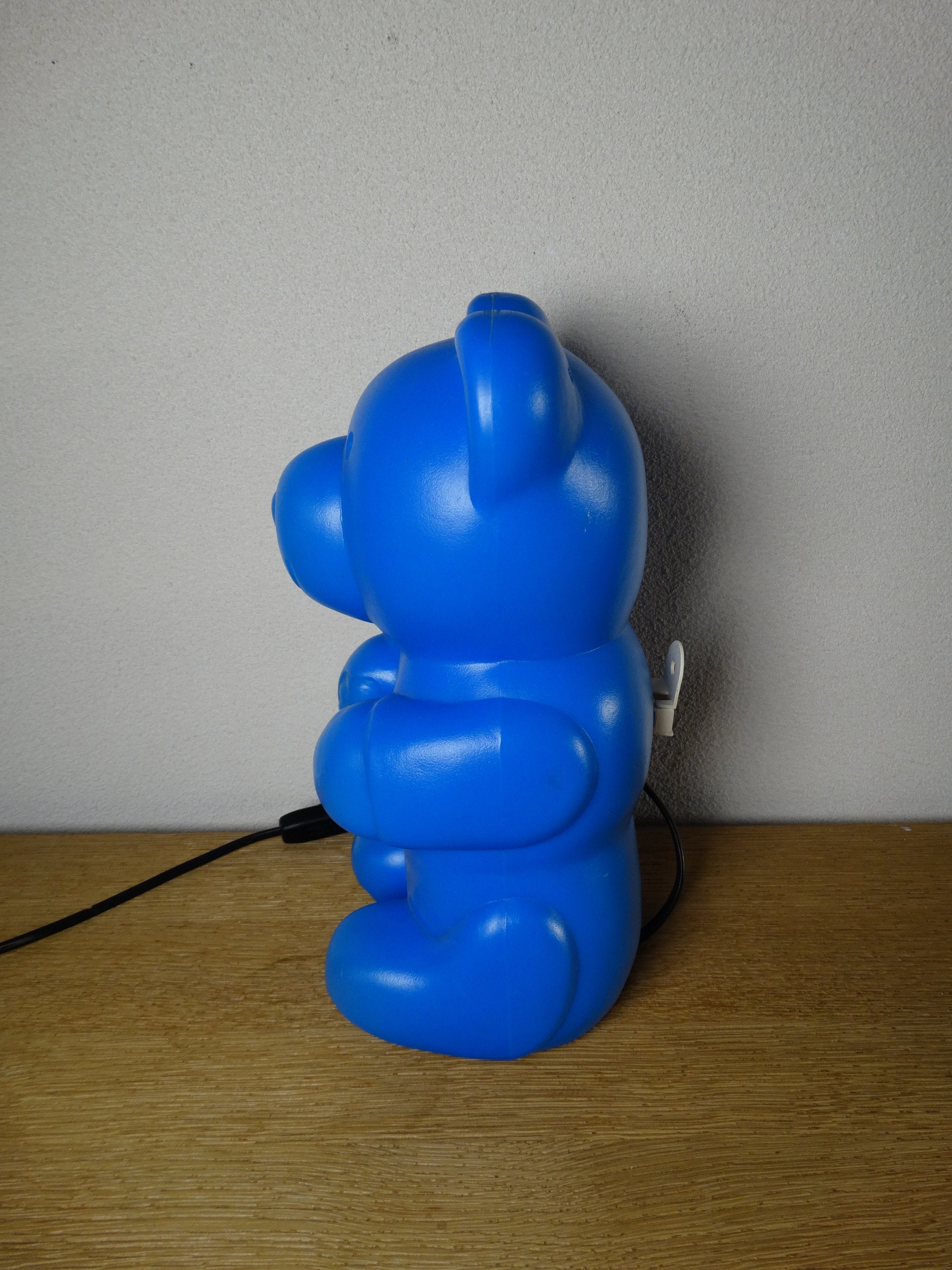 Beautiful rubber bear shaped lamp. The lamp is blue or orange and in good condition.