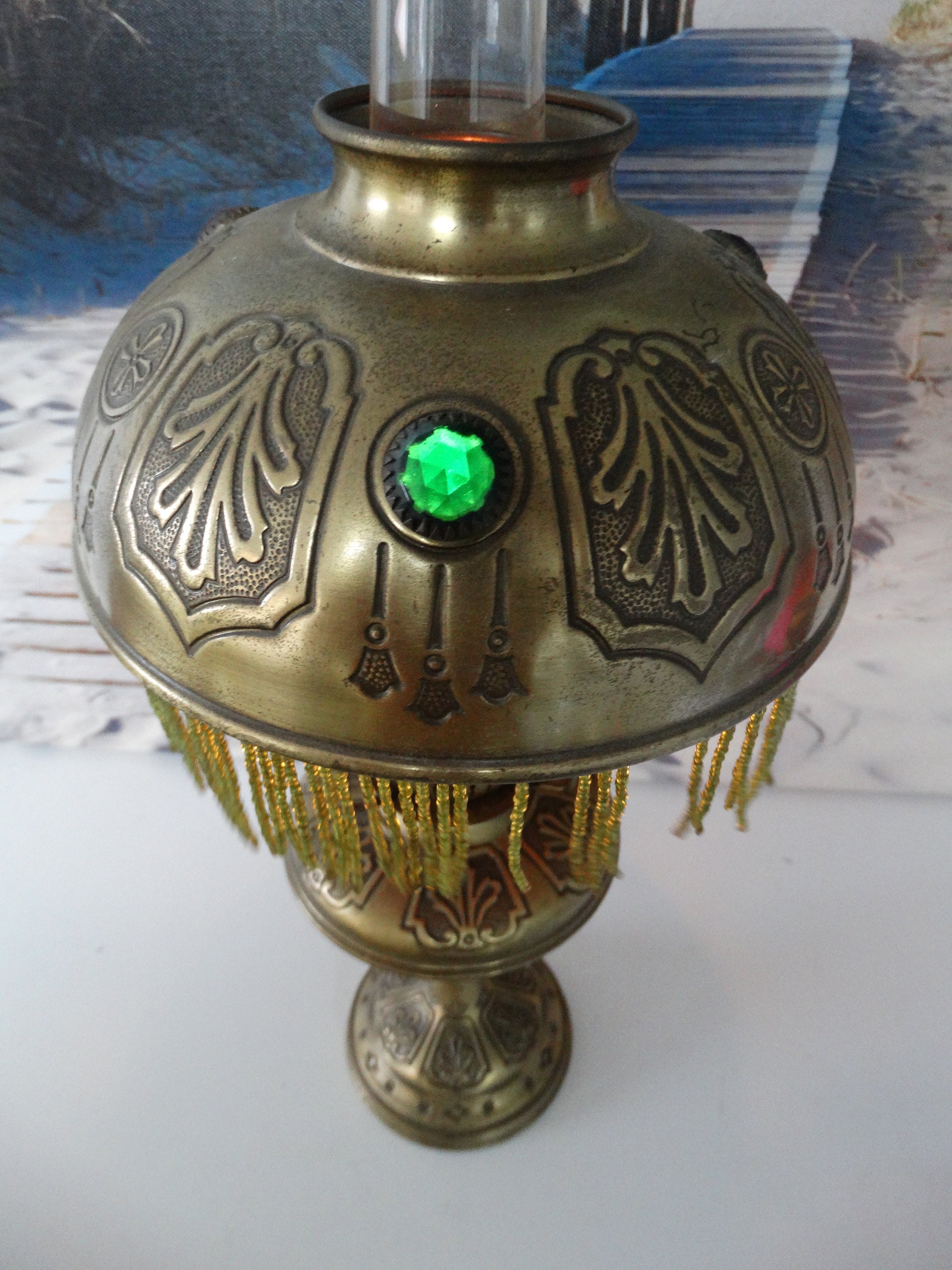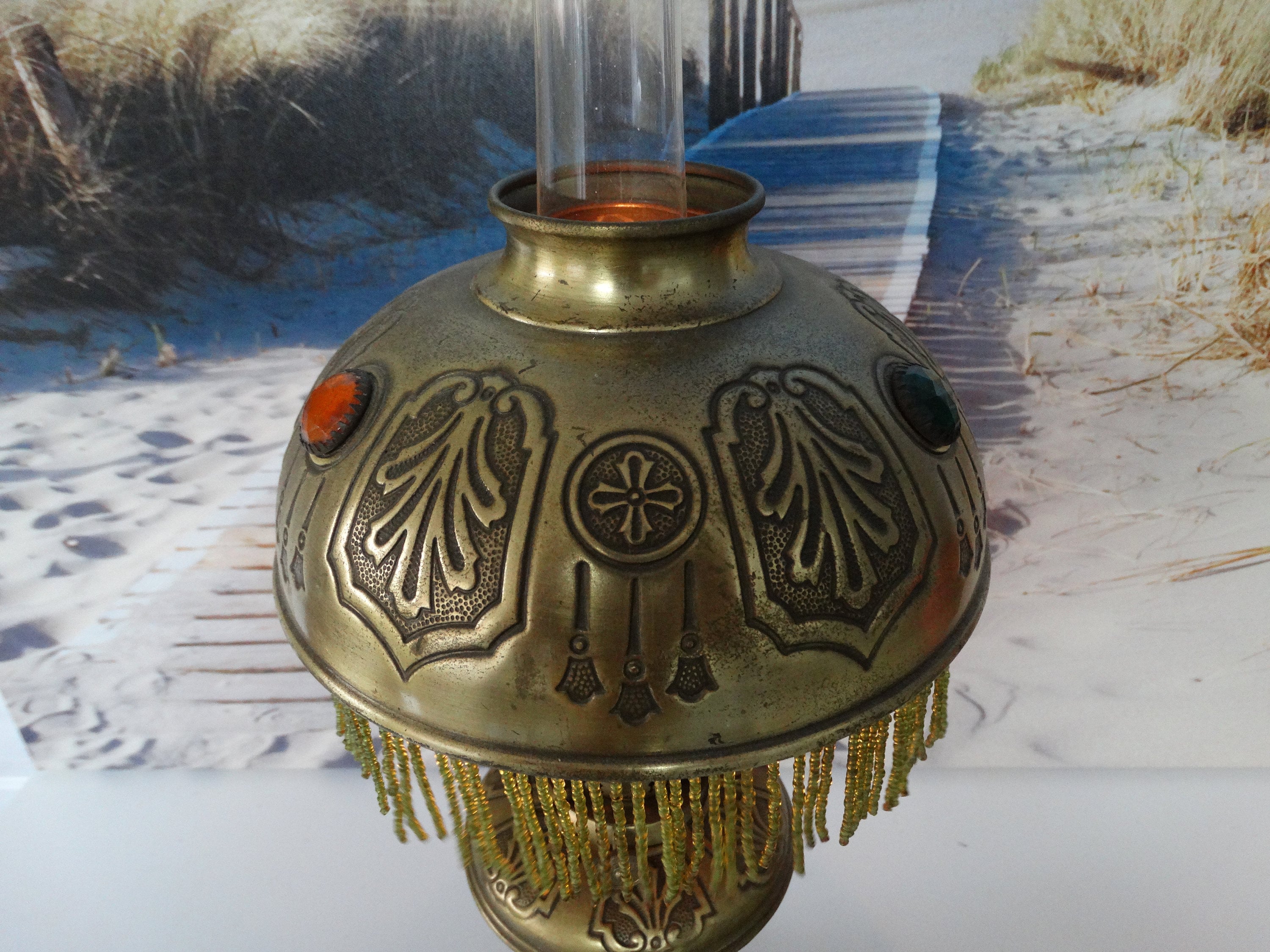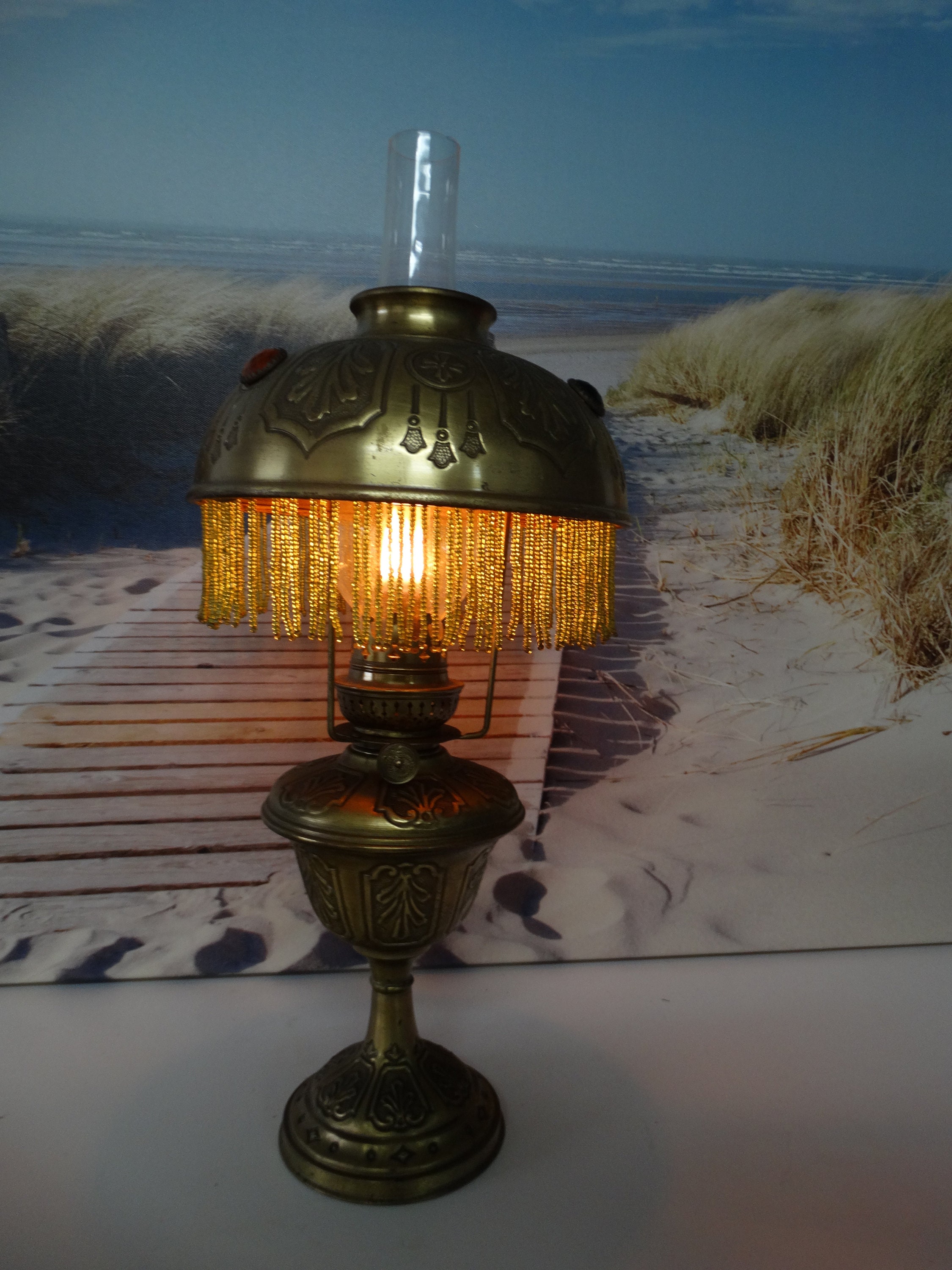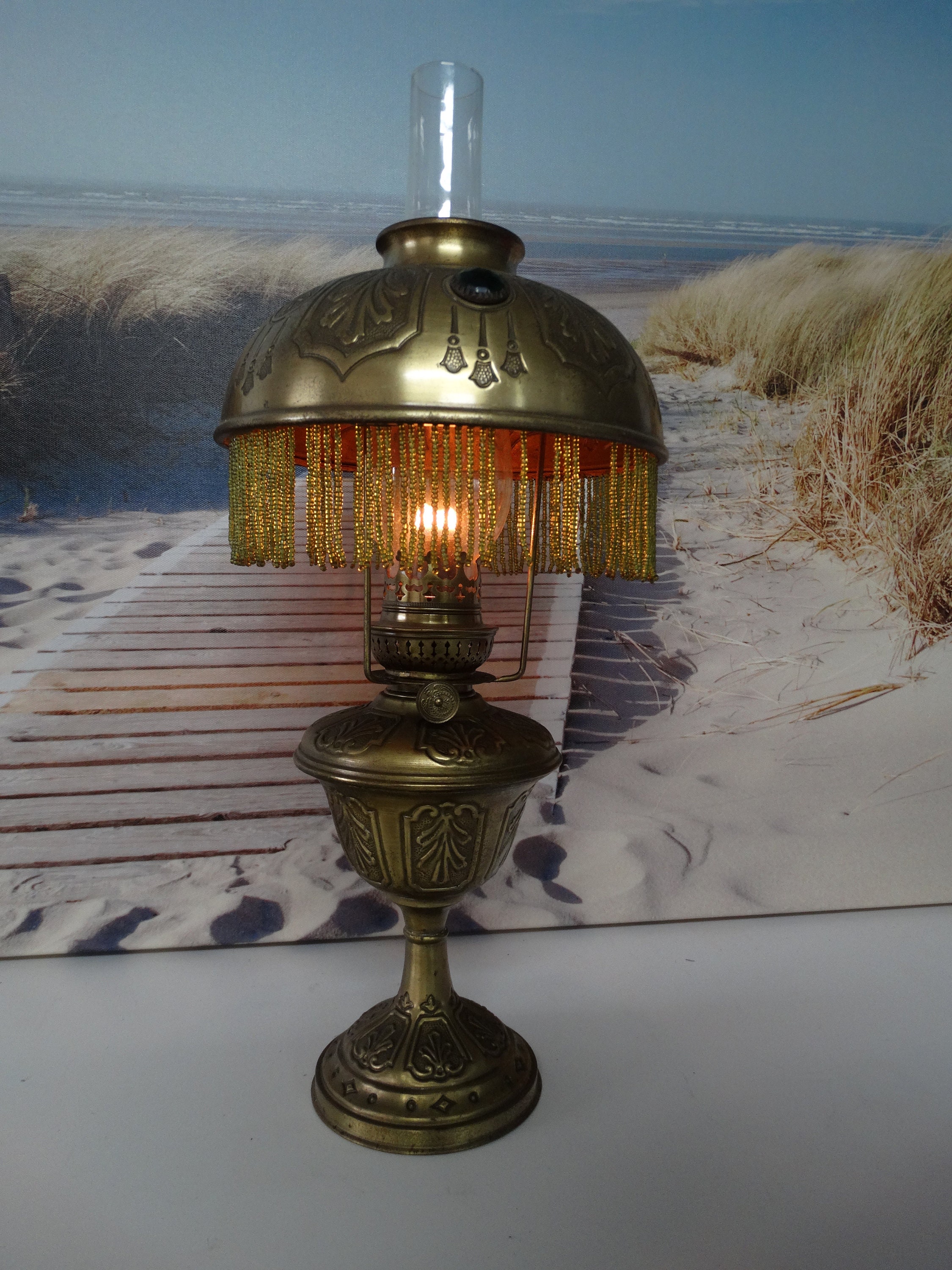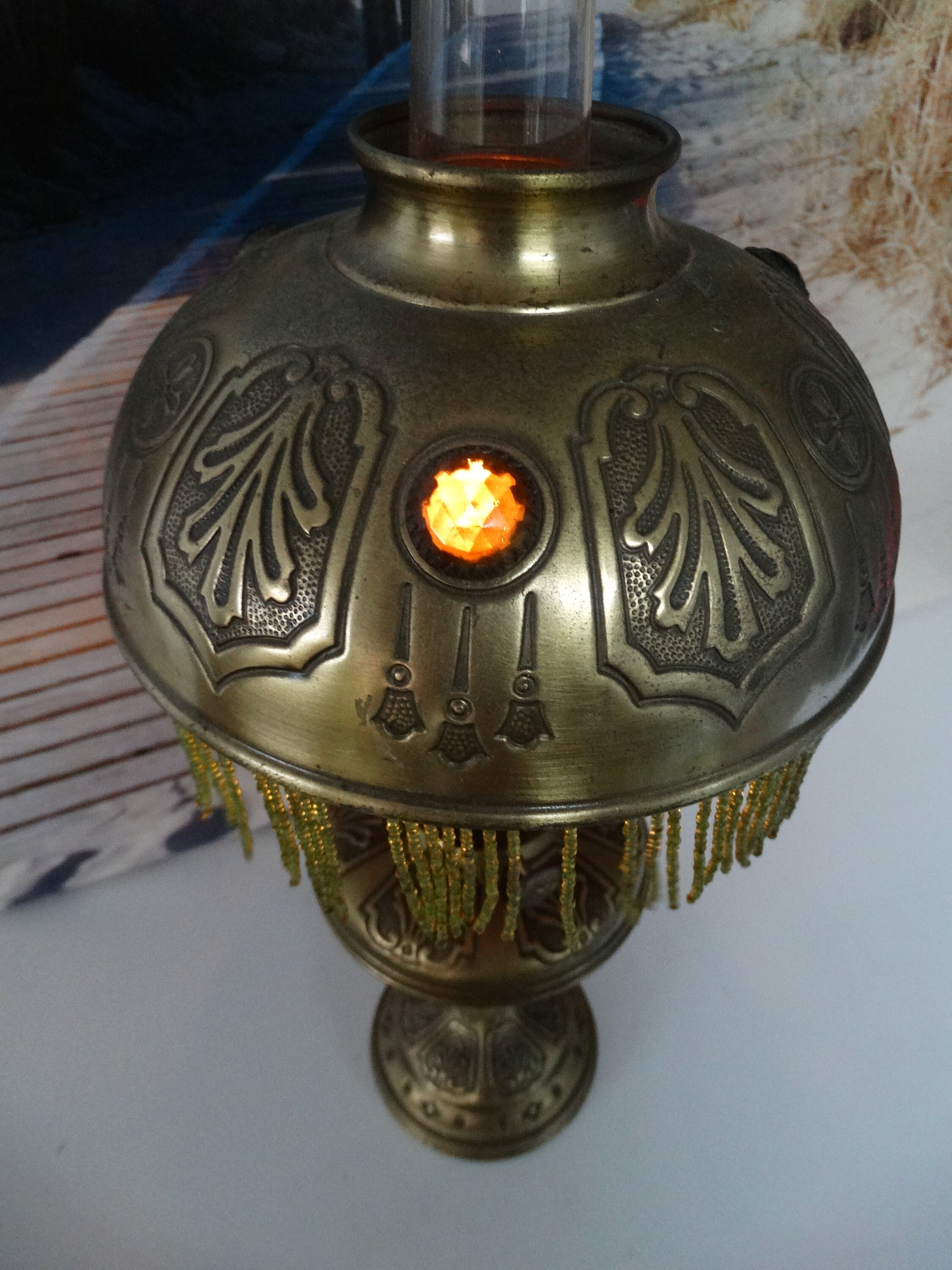 Oil lamp burns as can be seen in the pictures!