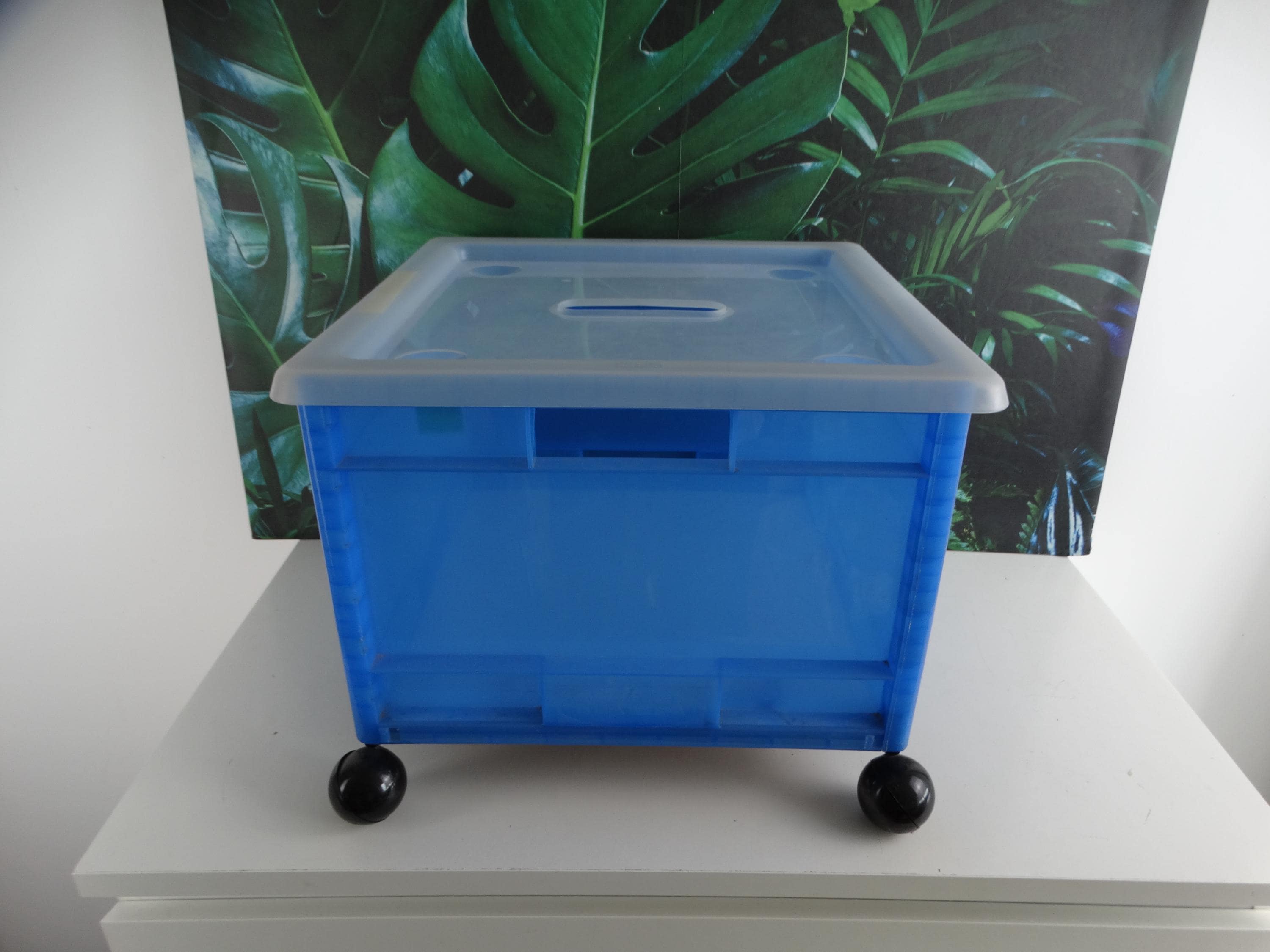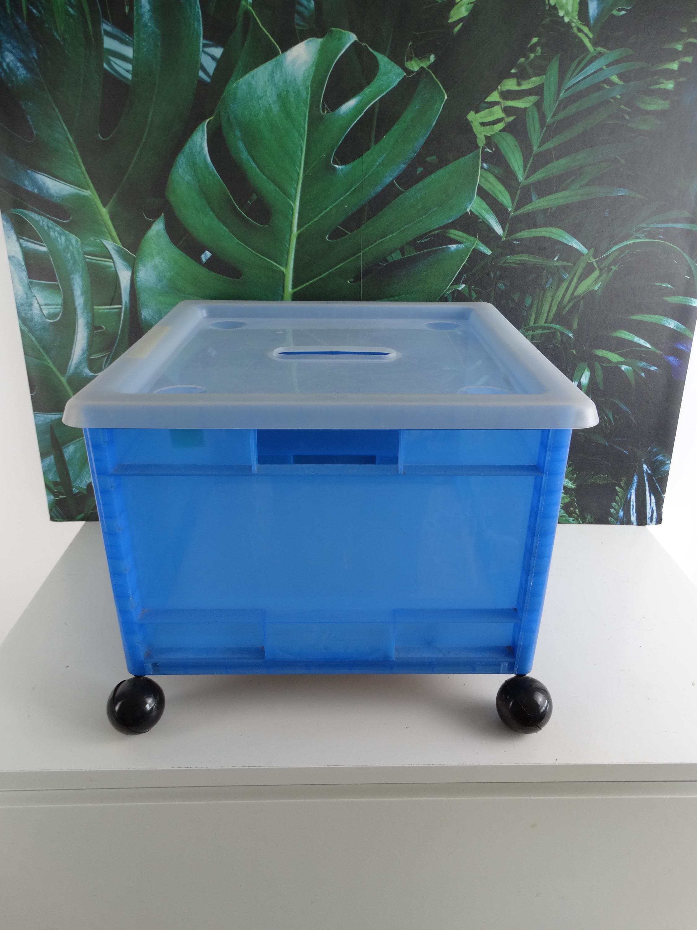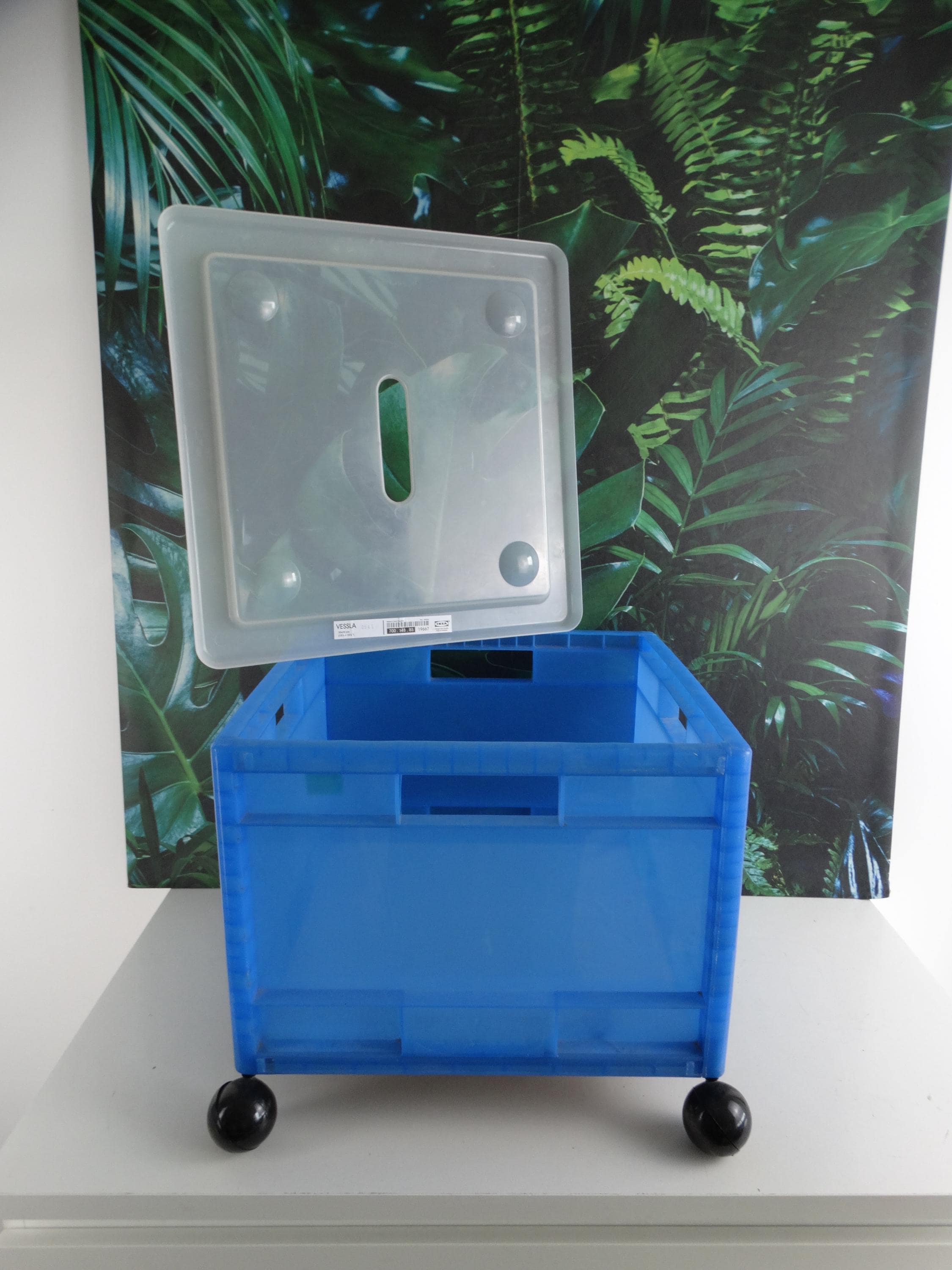 The storage crate is in good vintage condition, but with signs of wear (scratches).
