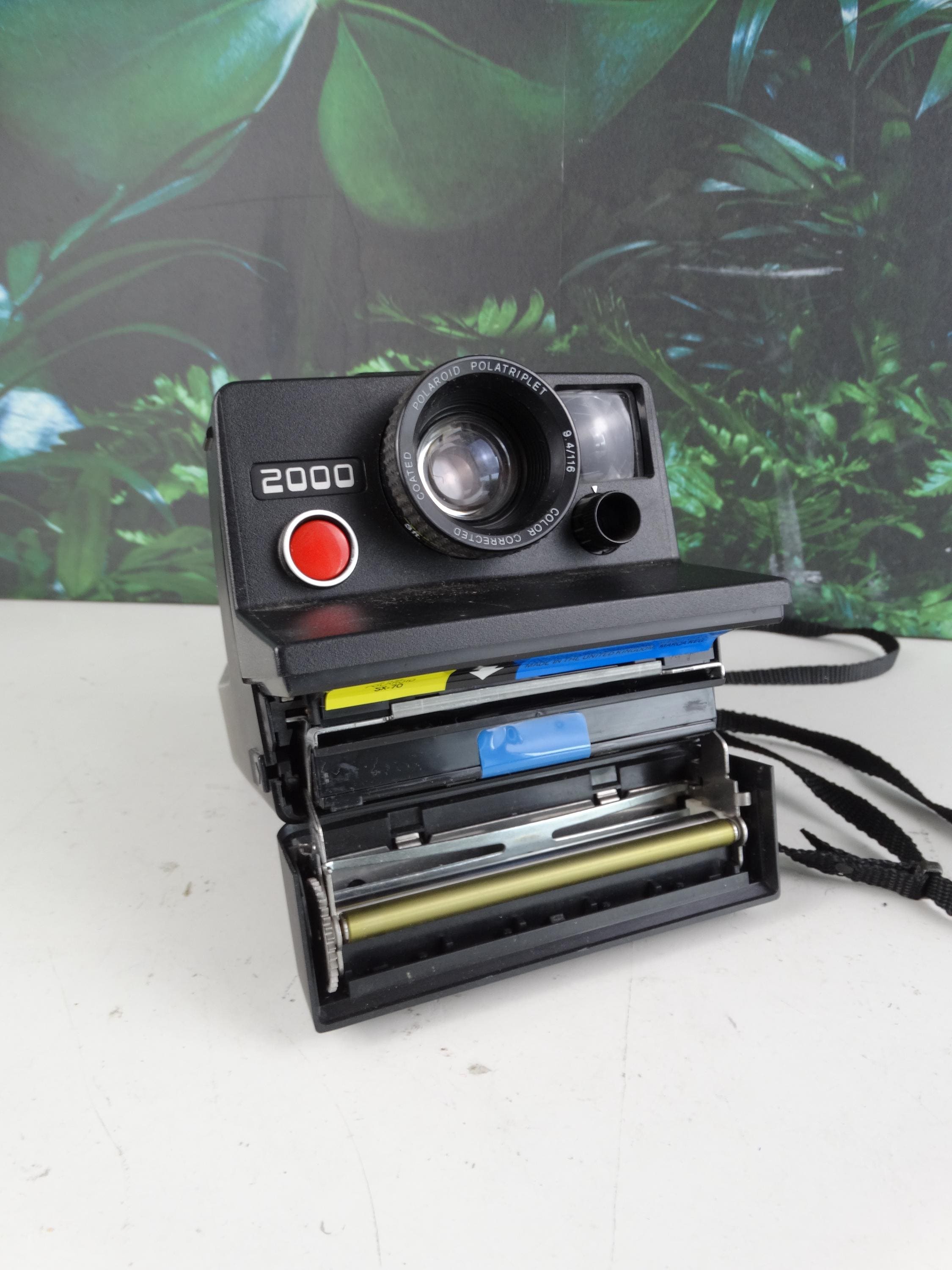 Rare Polaroid camera in excellent and fully functional condition with minimal signs of use. What sets this camera apart from many similar models is its focus scale. While other cameras have a fixed lens, this one can focus from 1 meter to infinity, resulting in sharper images than comparable models with a fixed lens. The camera uses SX-70 Polaroid film, which is not included.