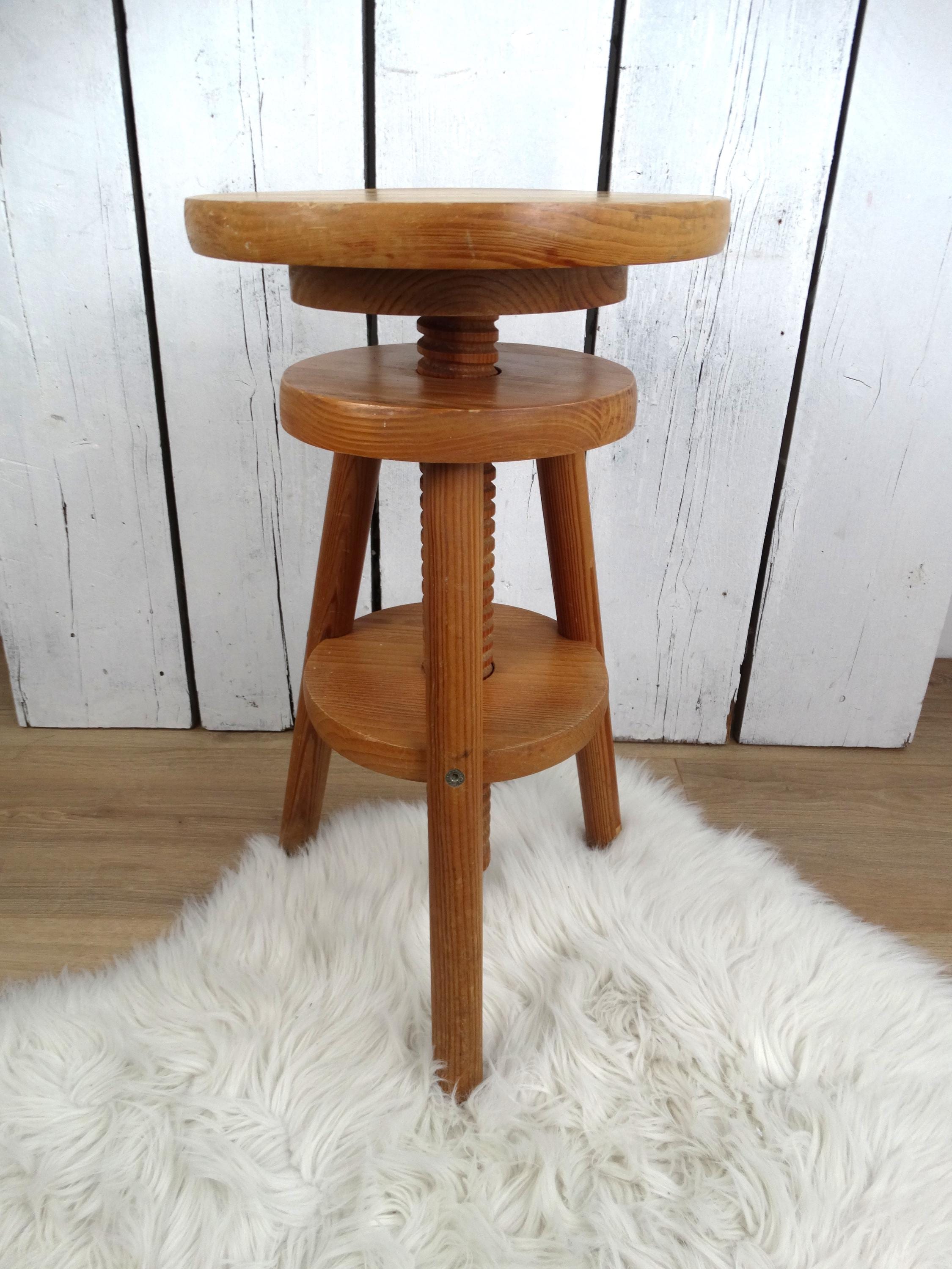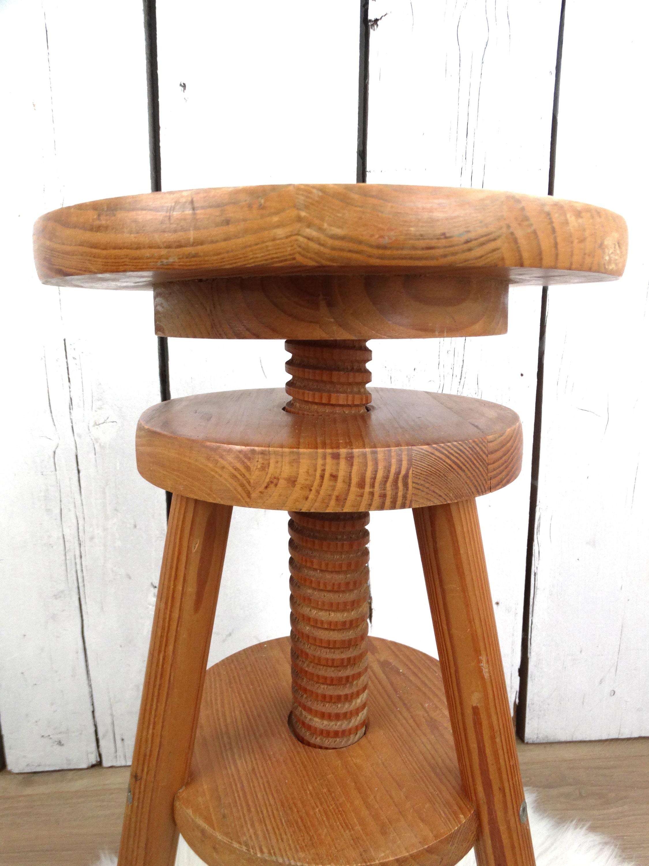 Lebber vintage® - Solid wood adjustable screw stool, craftsman vintage stool 1980s Active