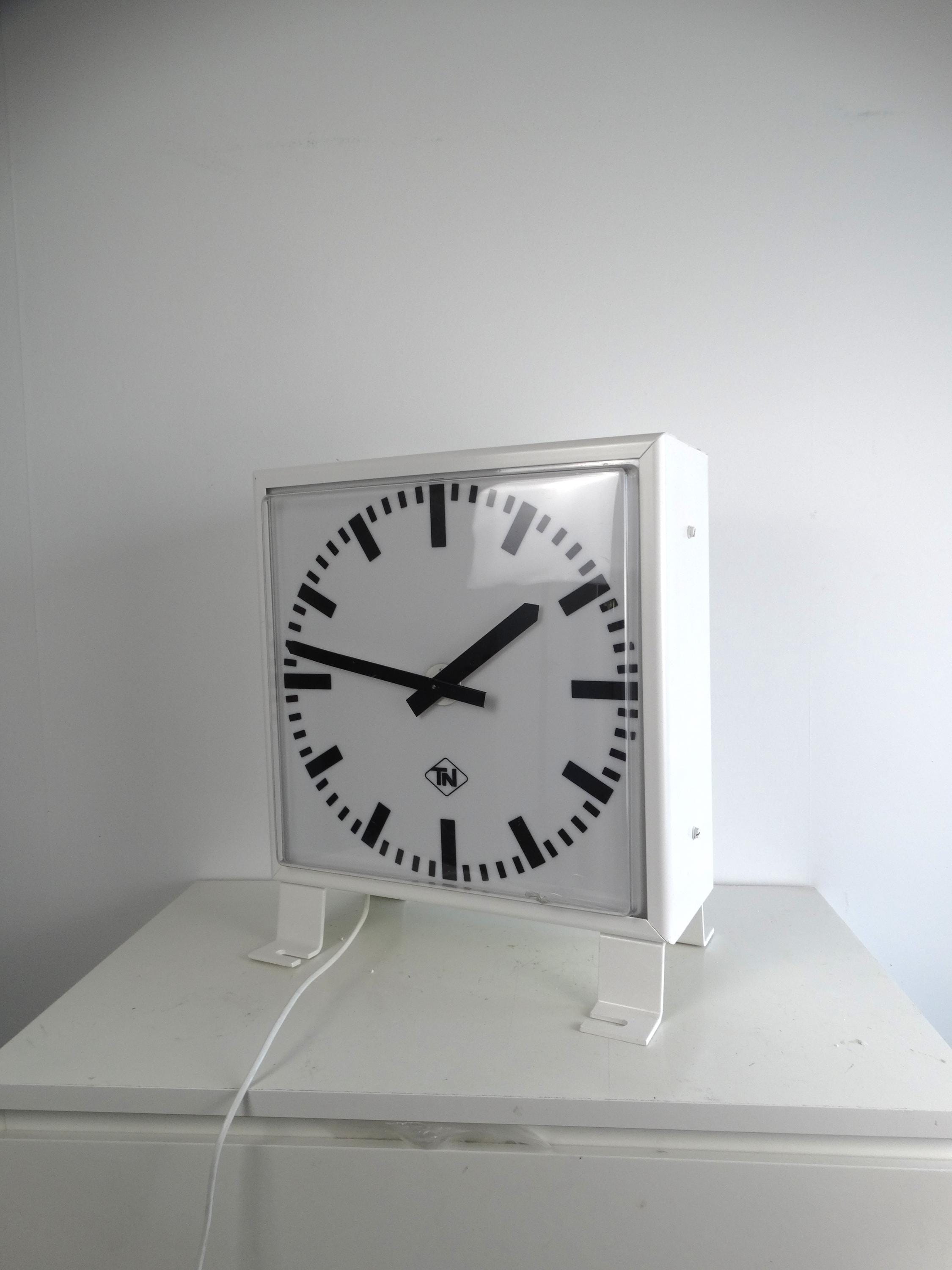 This double-sided station clock from TN is a beautiful example of modern design that is both functional and aesthetically pleasing. With its clean lines and clear dial, this clock offers a timeless look that fits perfectly into any modern space. Crafted from durable metal and plexiglass, the clock is robust and reliable. The white background with black hands and markers ensures excellent readability, even from a distance. This clock is not only a practical timekeeping tool but also a stylish decorative element that adds a touch of elegance to your interior. Contact us today to learn more about this unique station clock.