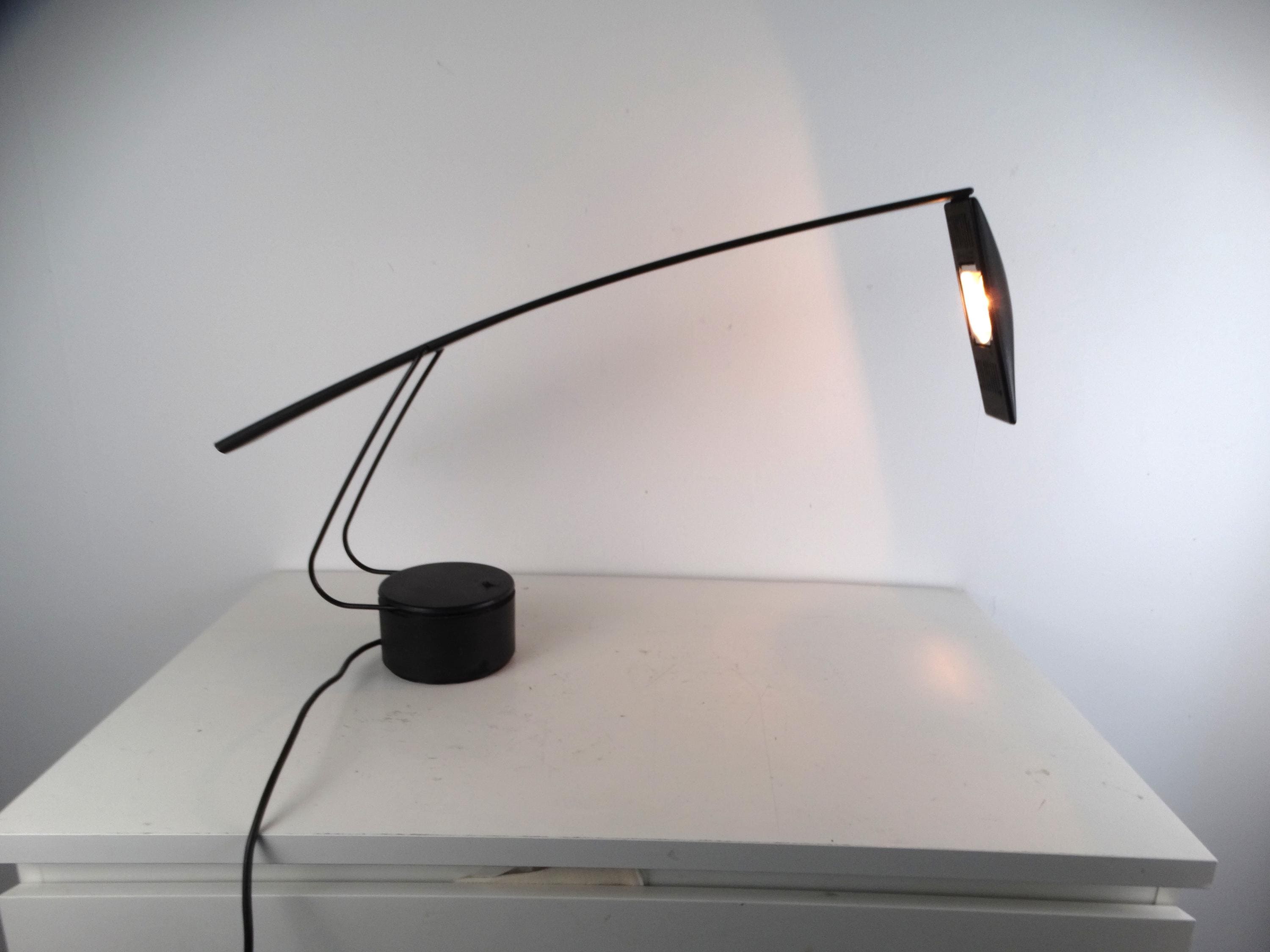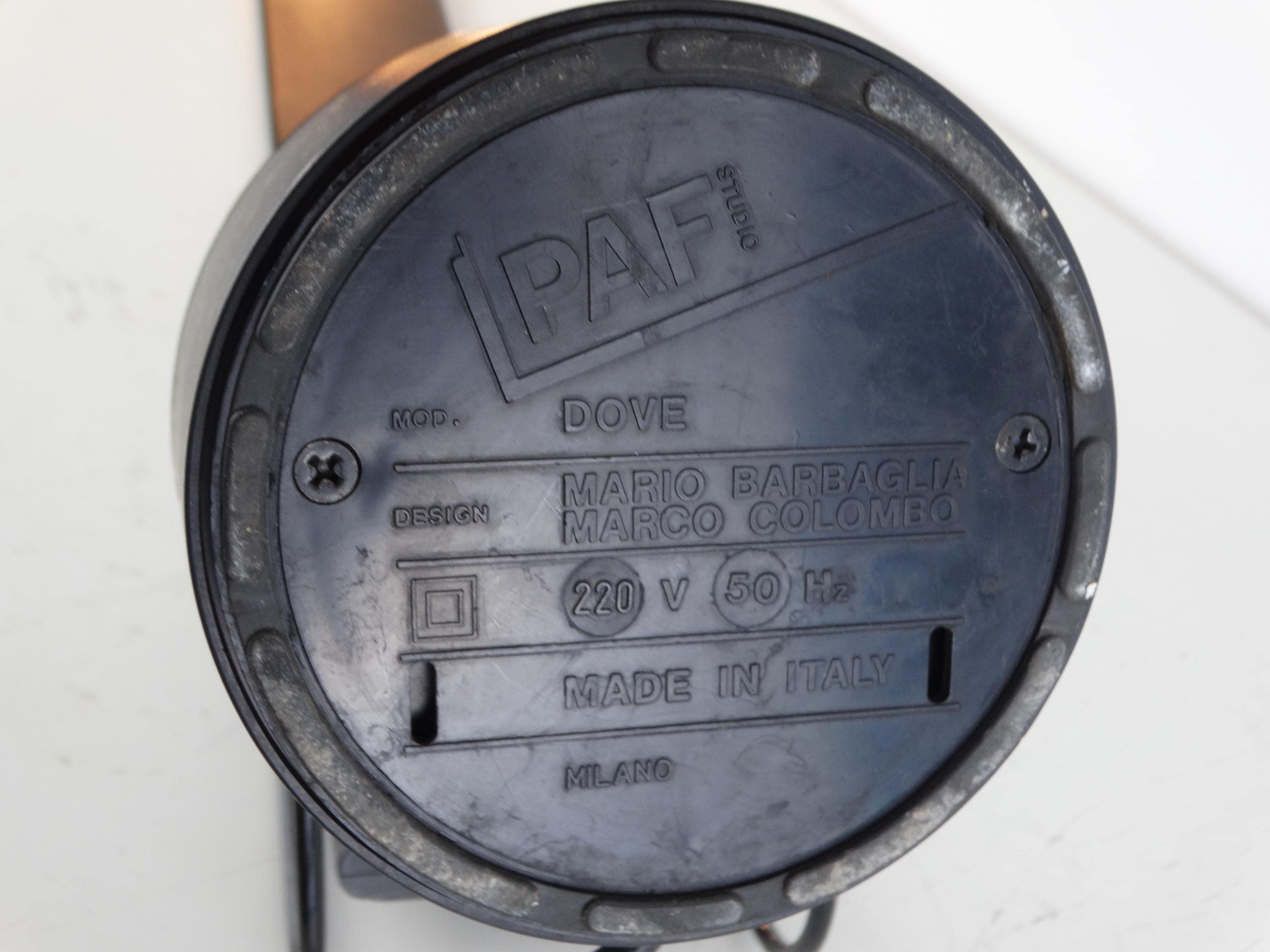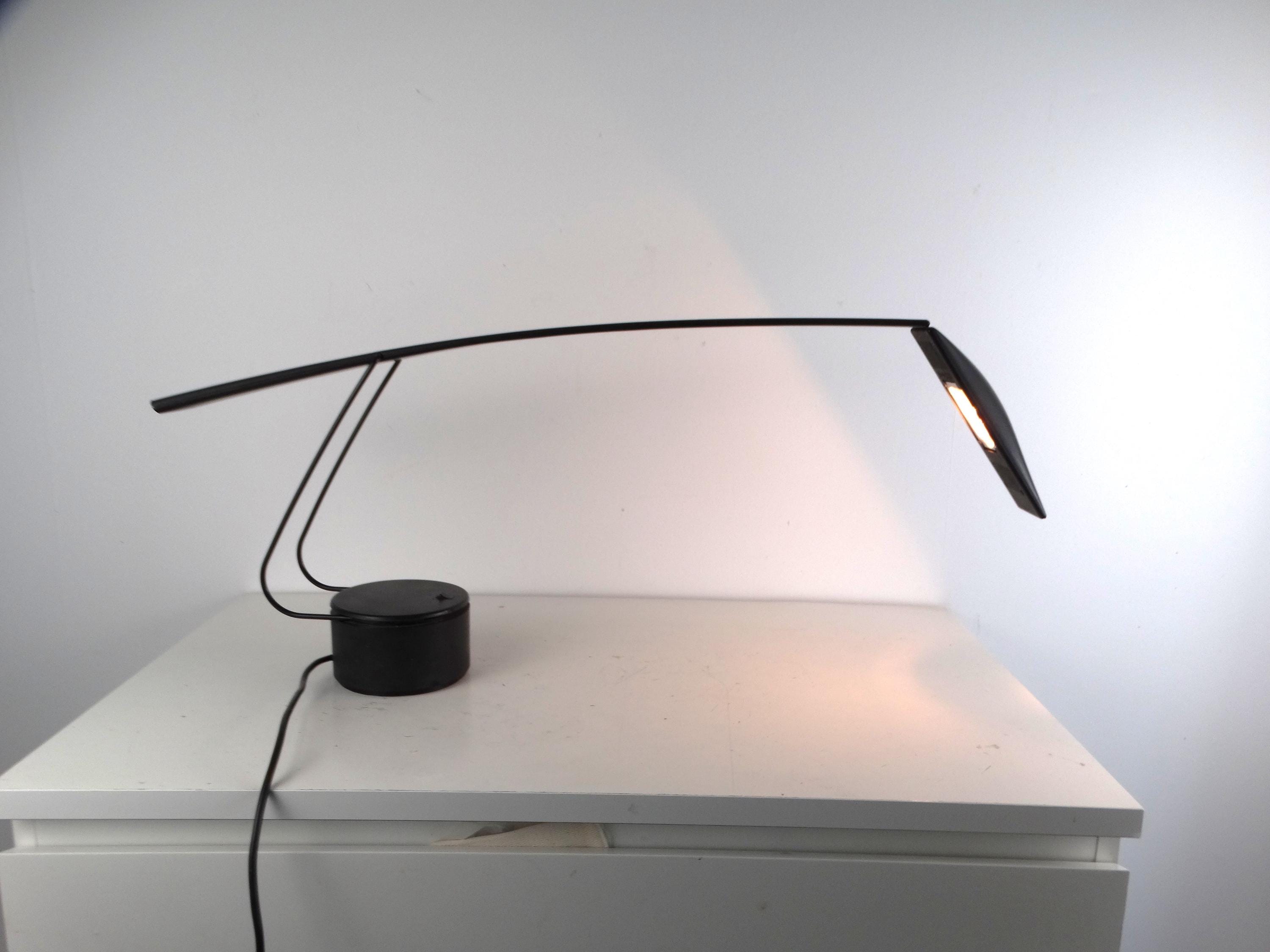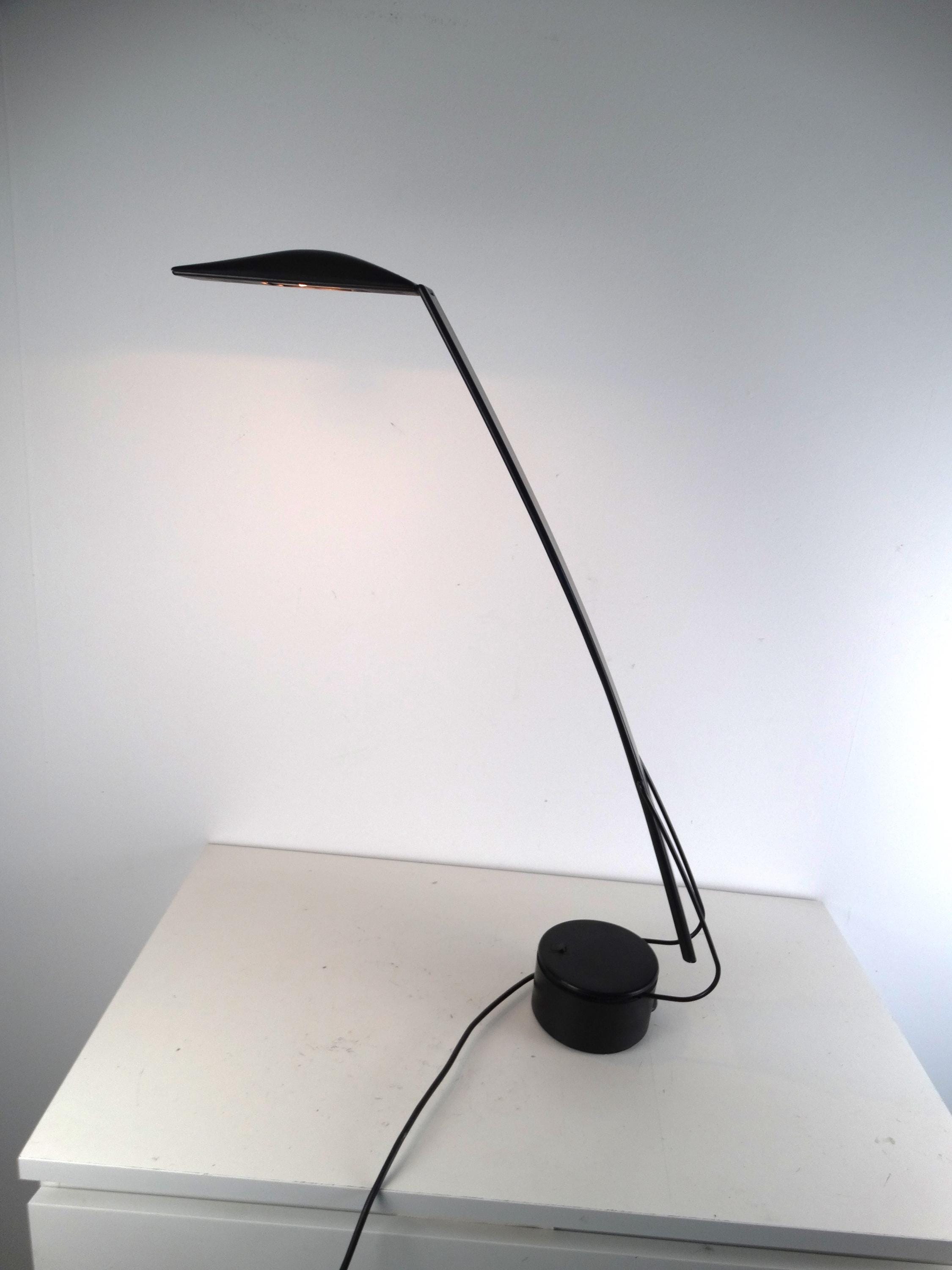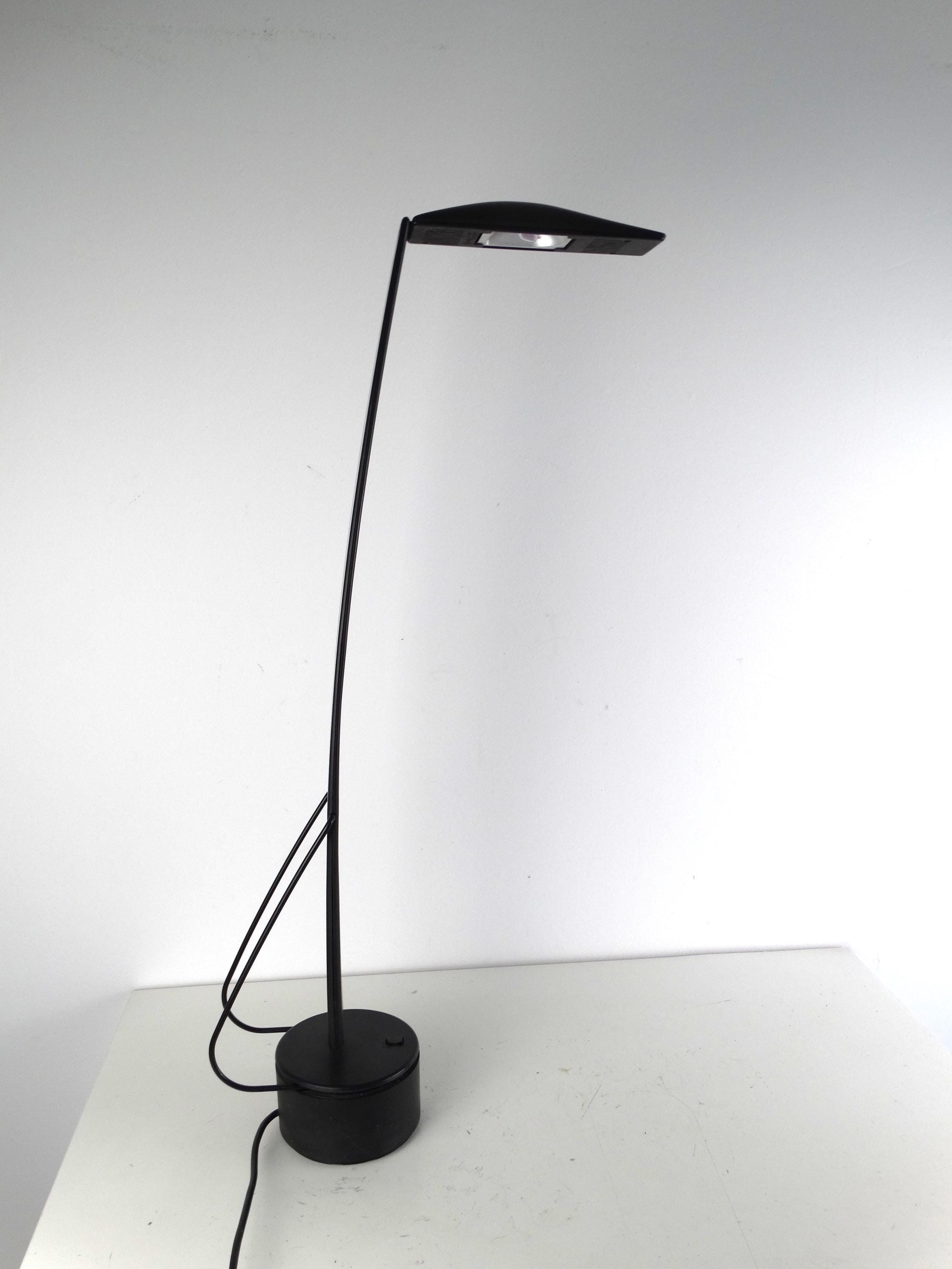 Halogen designer table/desk lamp "Dove" by Mario Barbaglia & Marco Colombo for PAF Studio. Made in Italy. Matte black plastic/metal. Adjustable arm and shade, switch with two light settings. The lamp is in good condition. It naturally shows signs of wear and age, but is generally in good condition.
