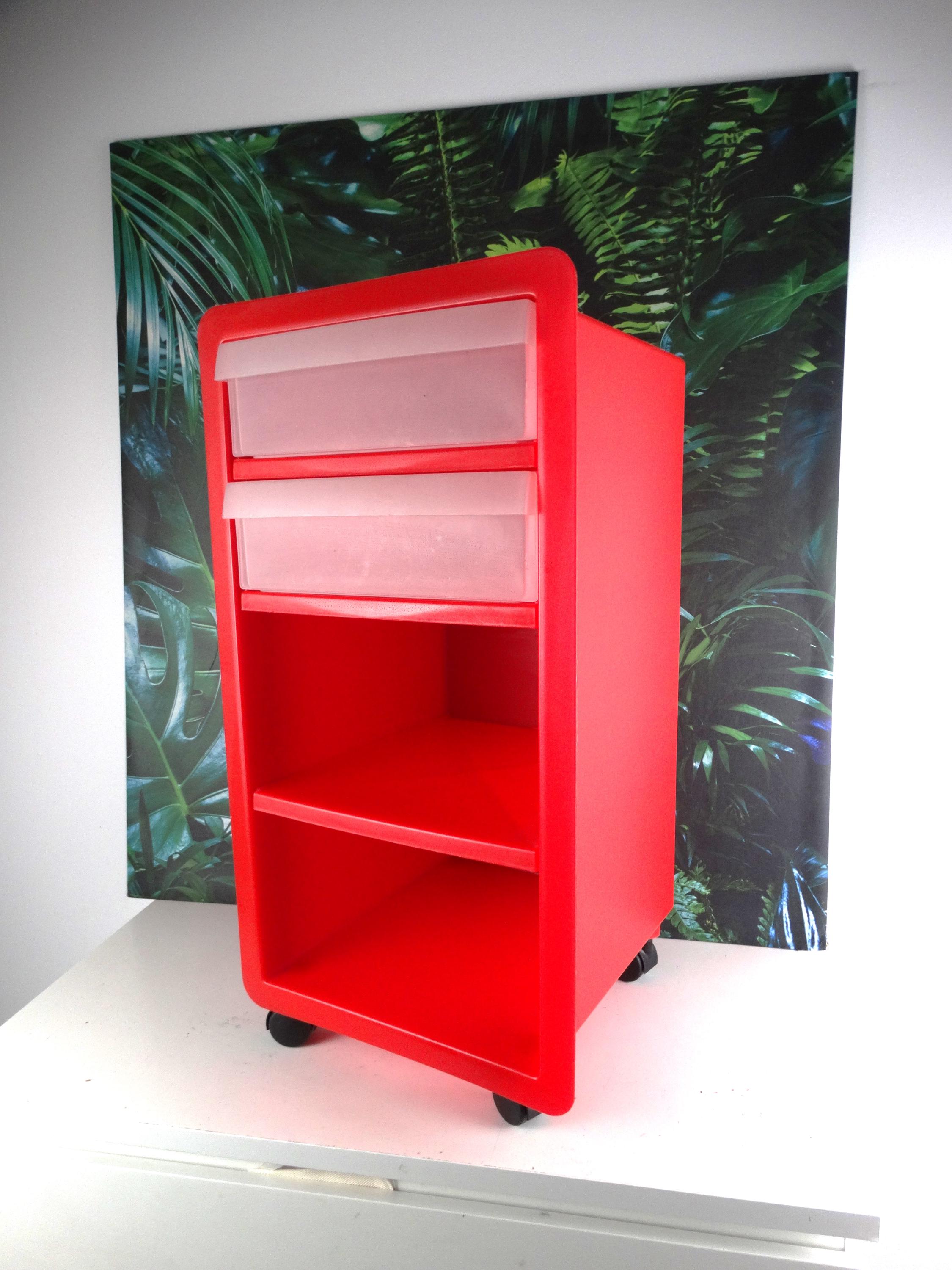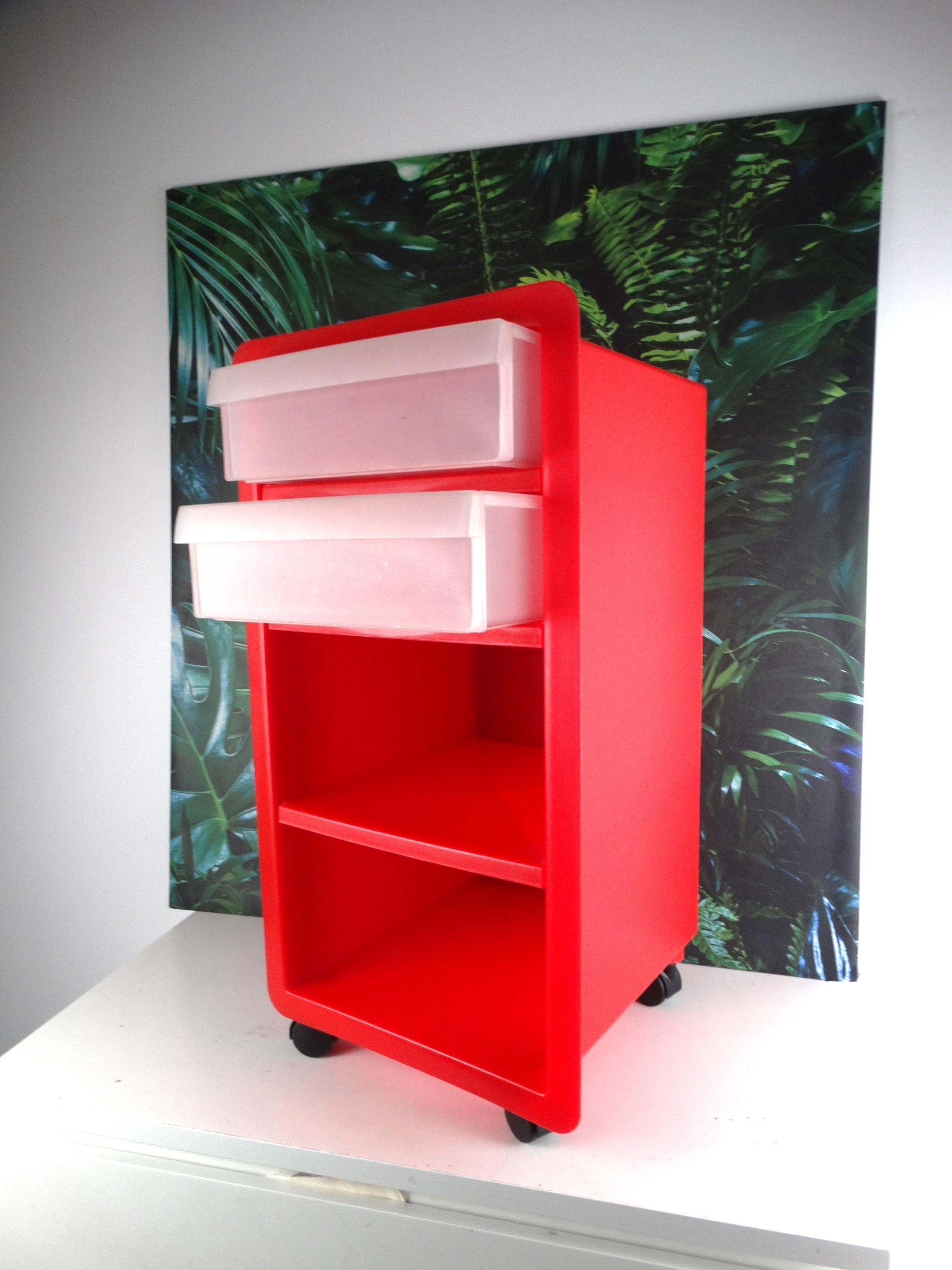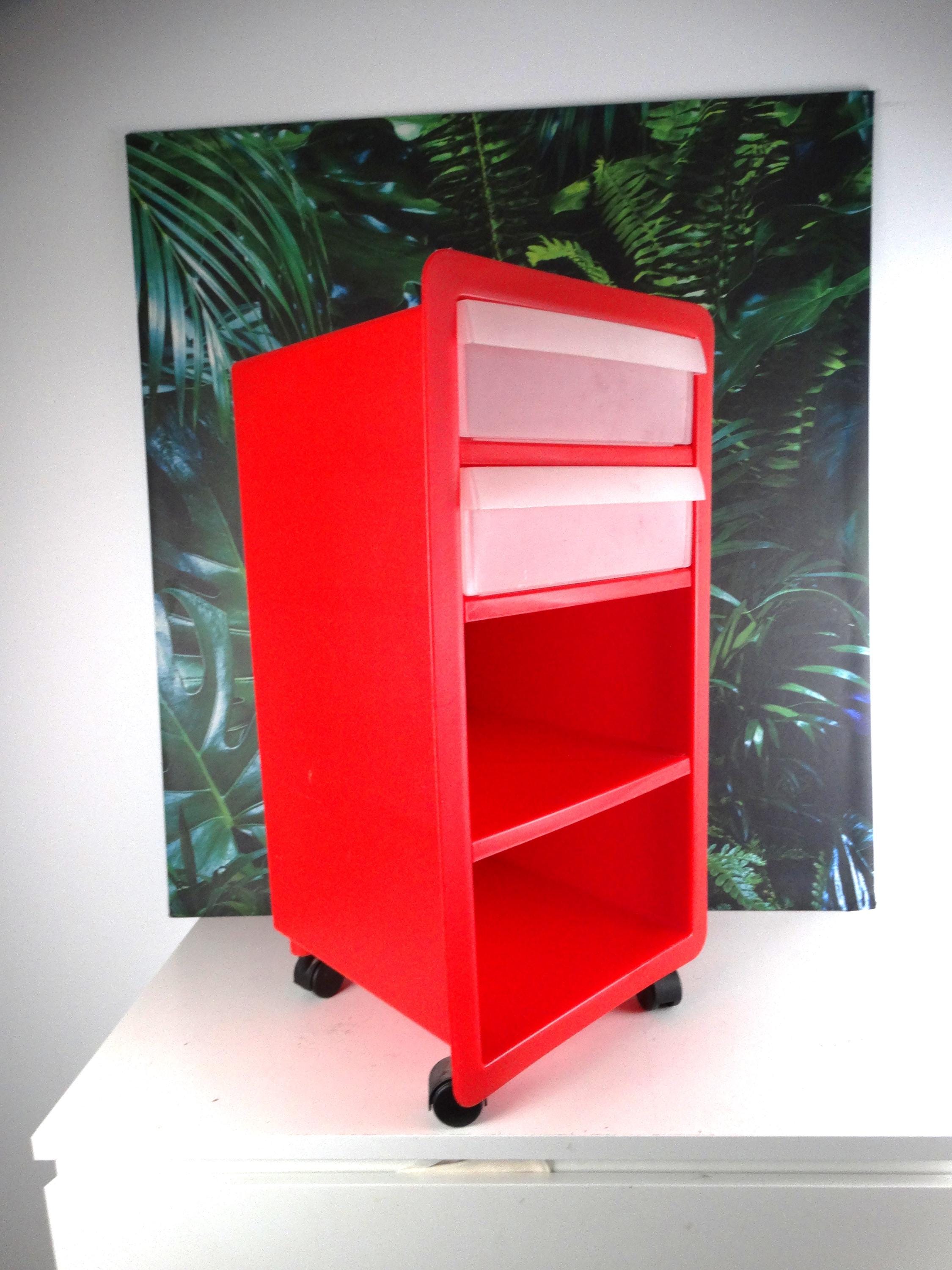 Nero vintage IKEA bedside table/trolley/container on wheels. Can be used for multiple purposes, such as books, hobby supplies, as a bedside table, for displaying items, or as a movable side table.