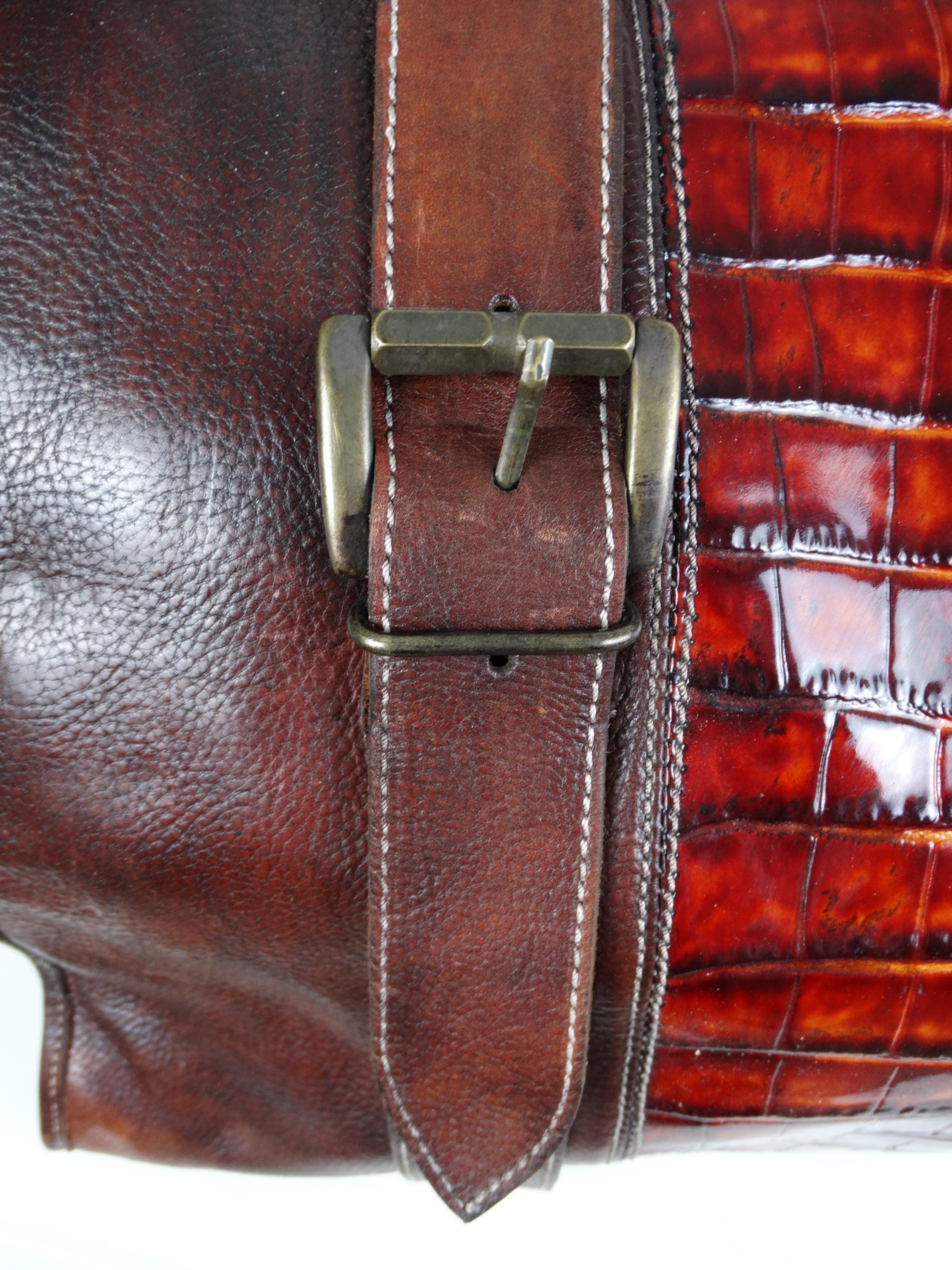 Large compartment in the middle with another zippered pocket and there are also pockets on the sides.