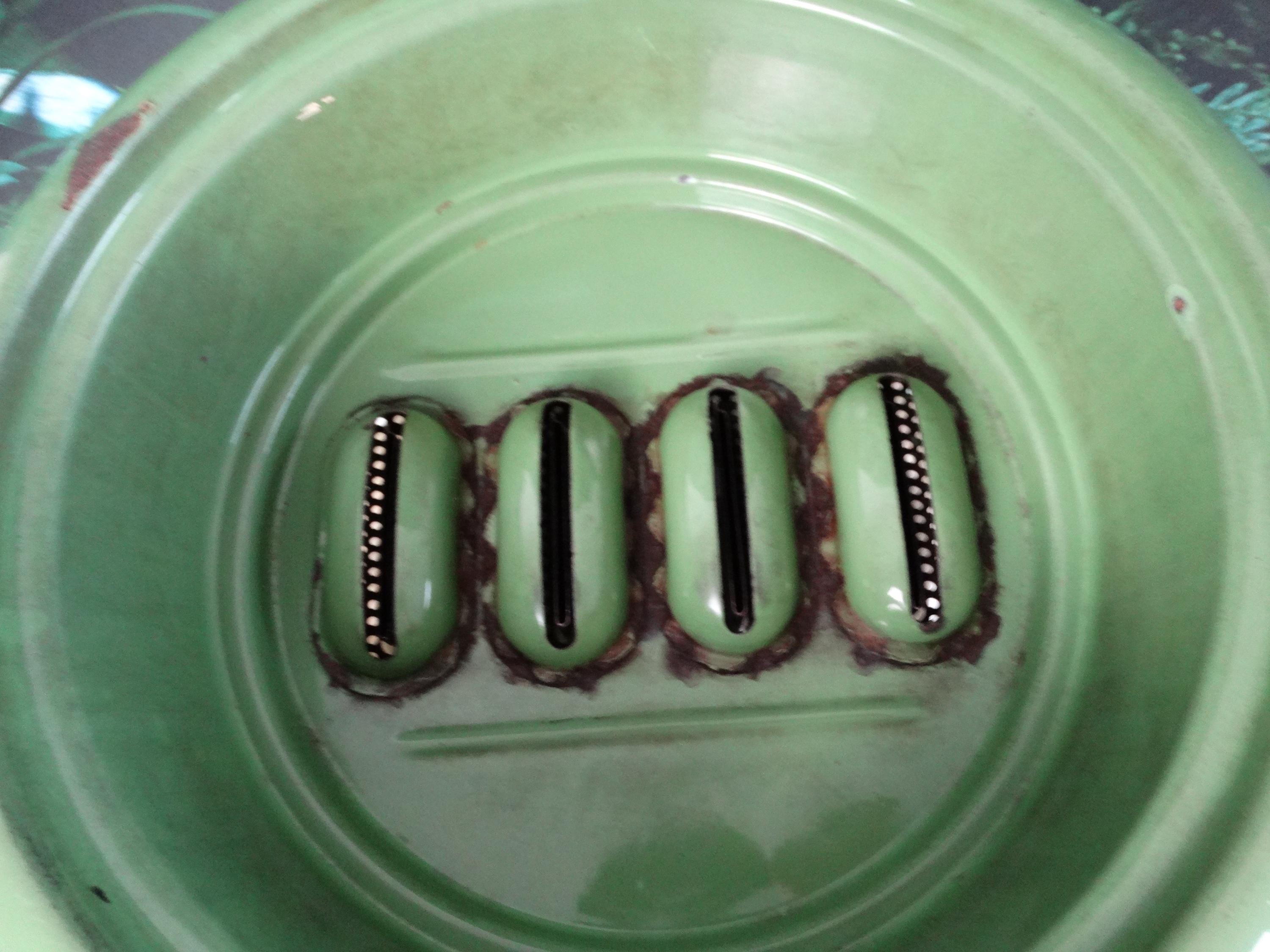 The device consists of an enameled reservoir for the kerosene, within which hangs a wick (cotton wick). A wick is a cotton band, approximately 7 cm wide, that draws in the fuel.