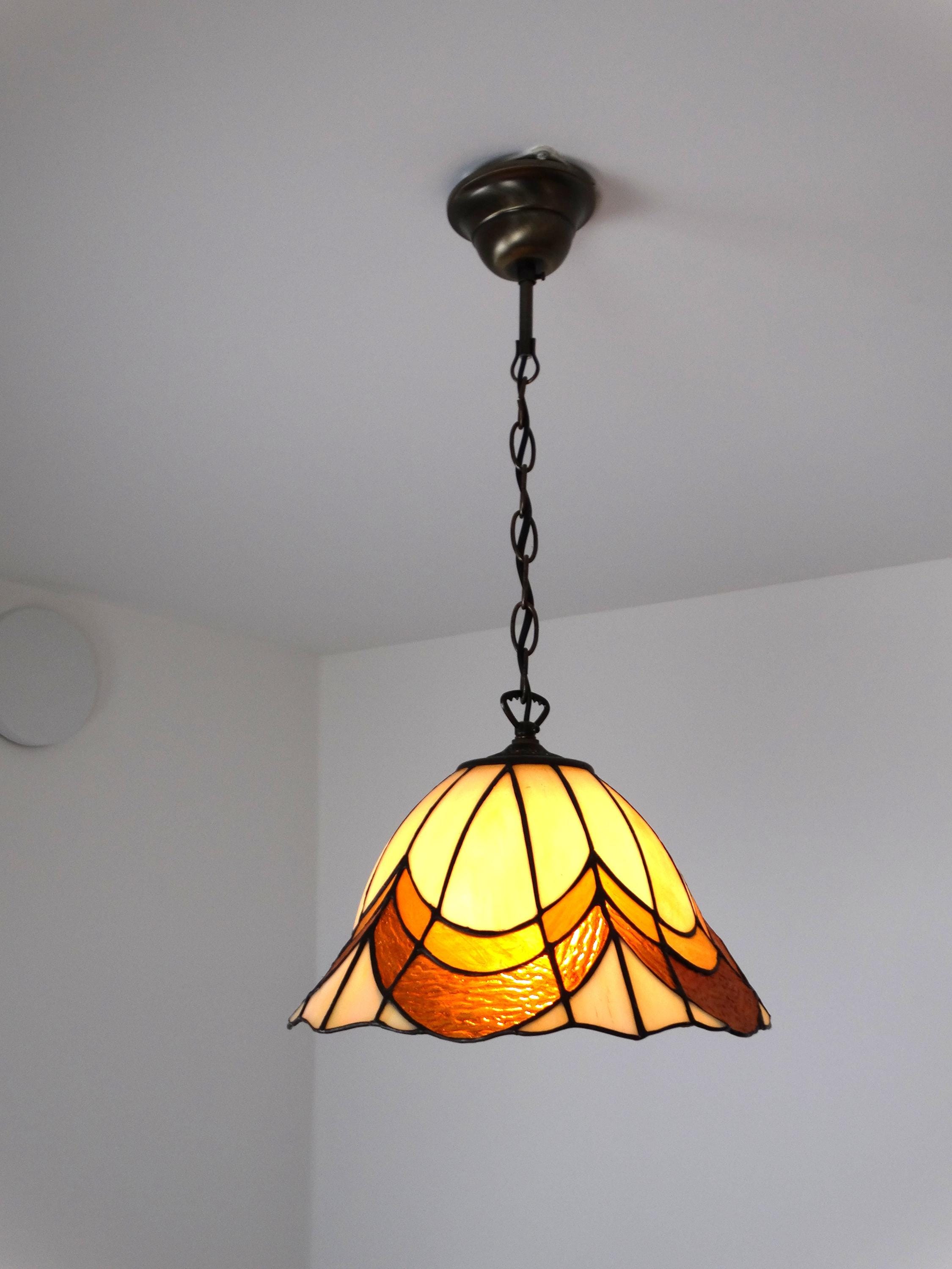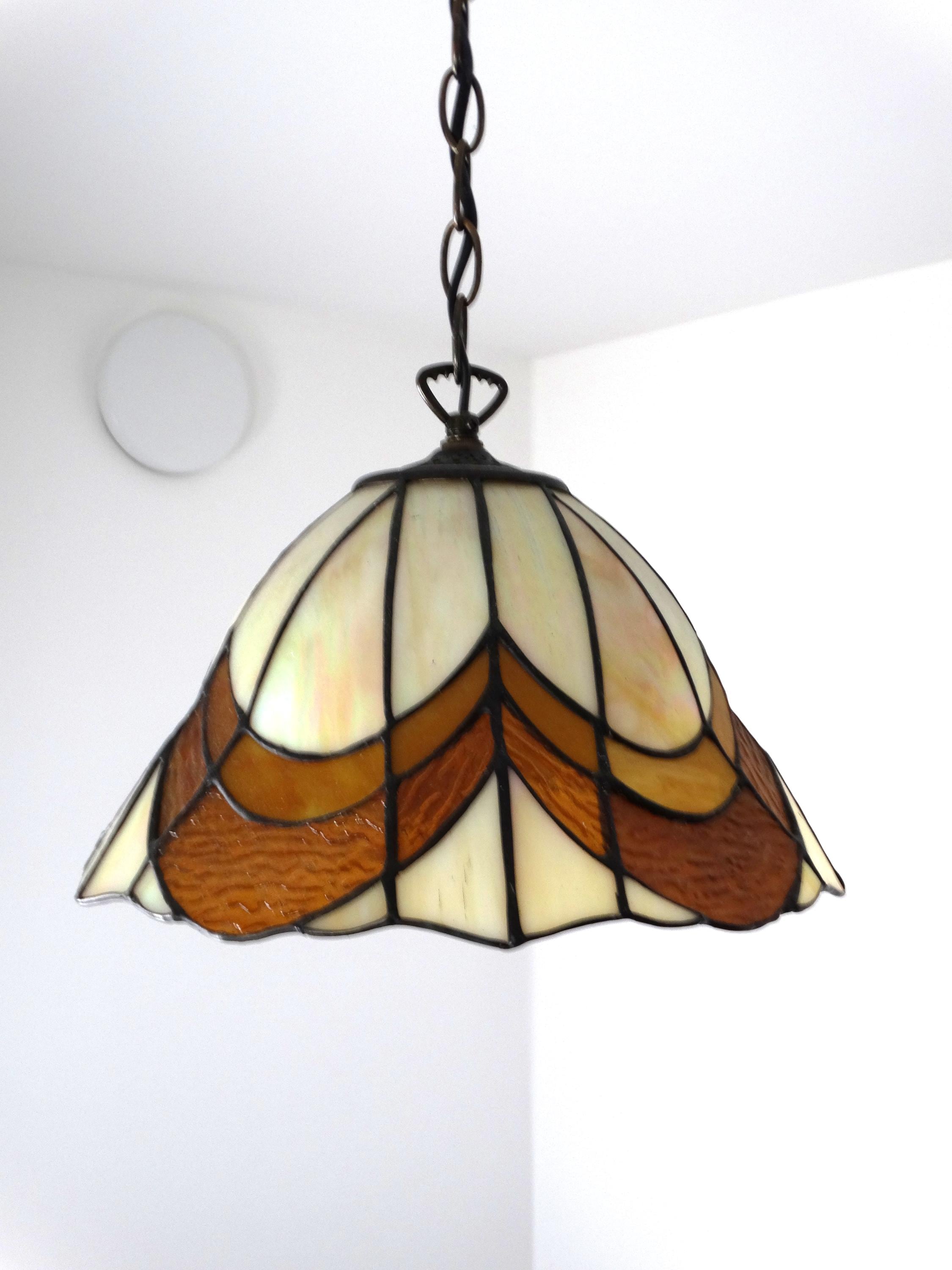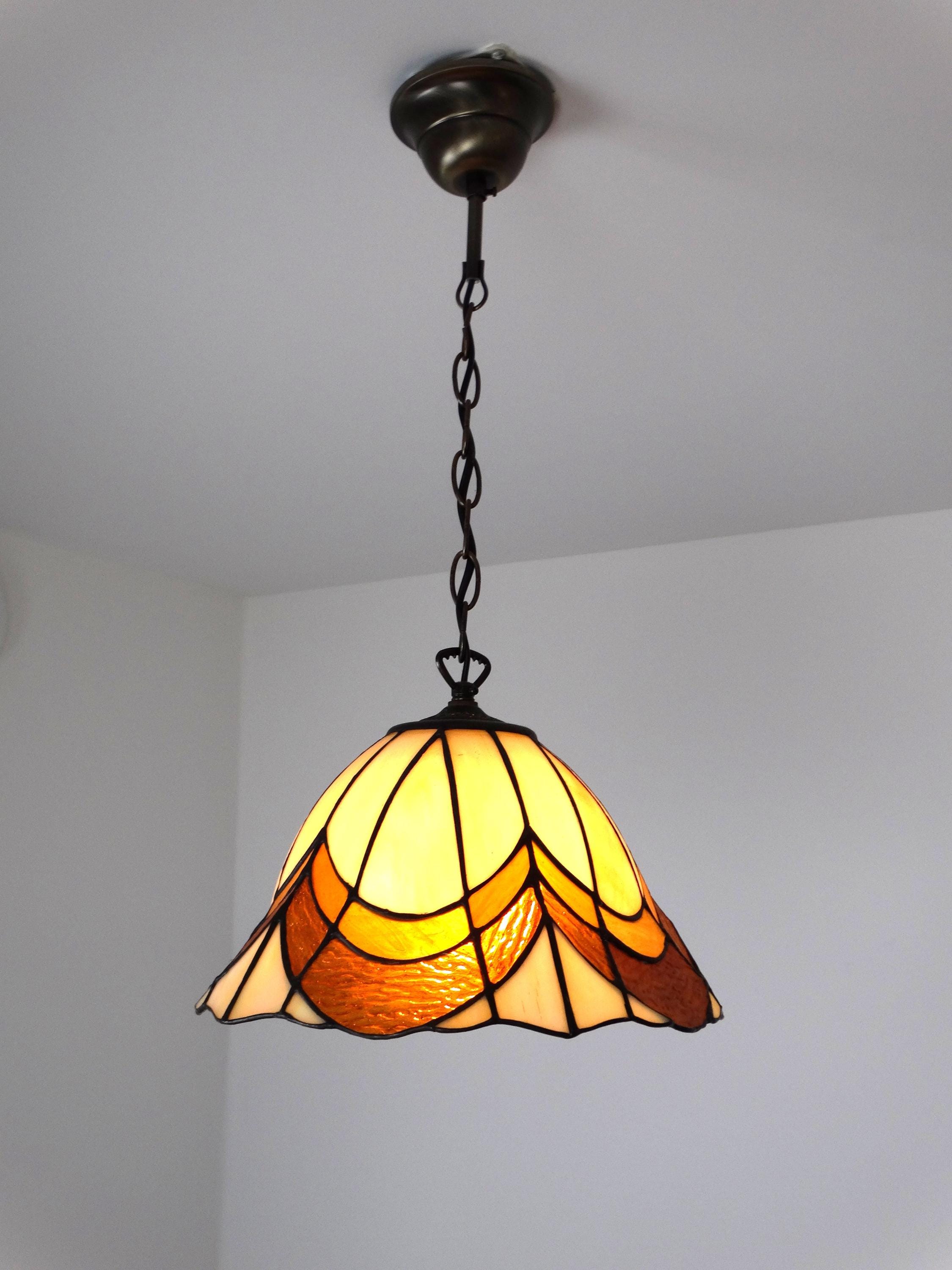 Vintage Tiffany-style lamp. This beautiful pendant lamp has lovely colors on the shade. This pendant lamp is truly fantastic to look at.