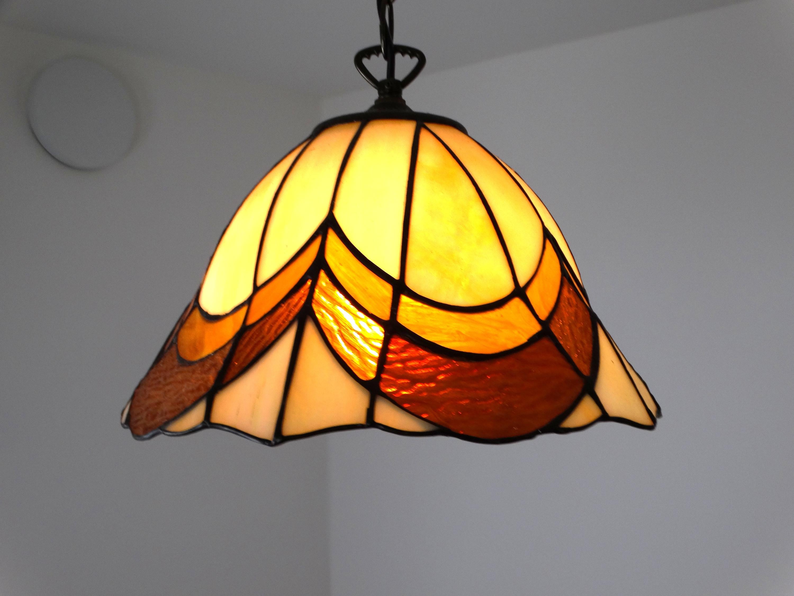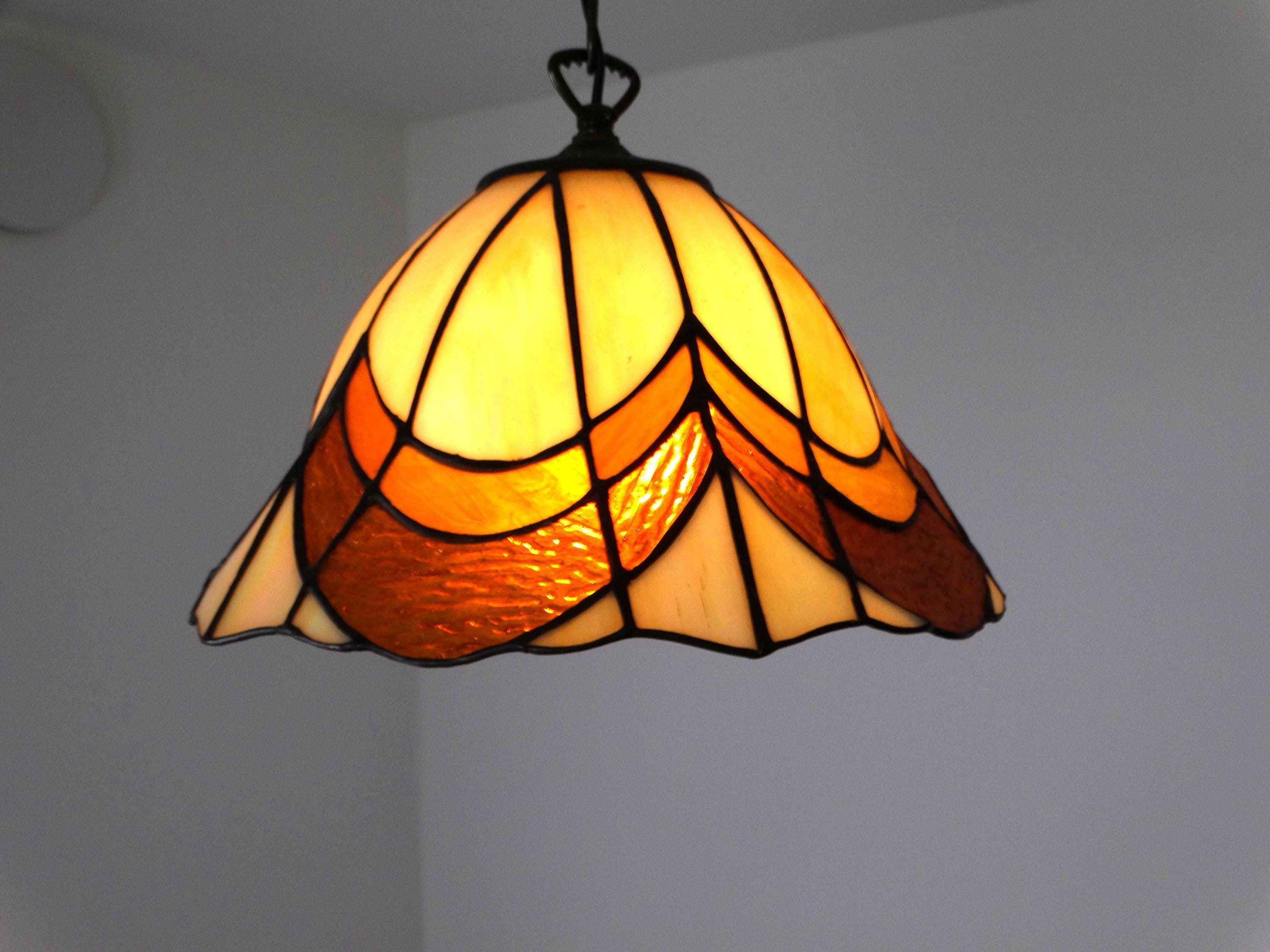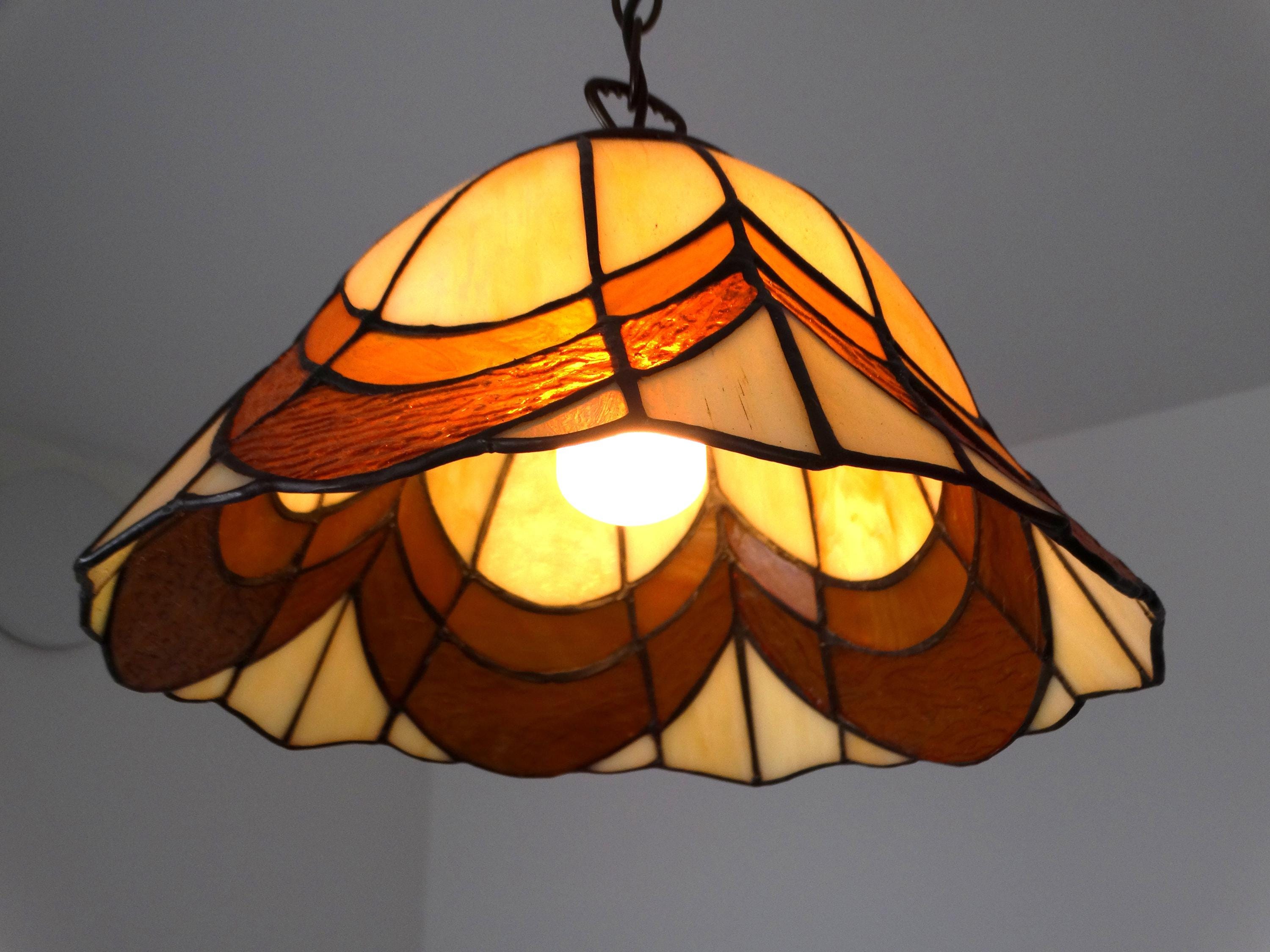 Vintage Tiffany-style lamp. This beautiful pendant lamp has lovely colors on the shade. This pendant lamp is truly fantastic to look at.