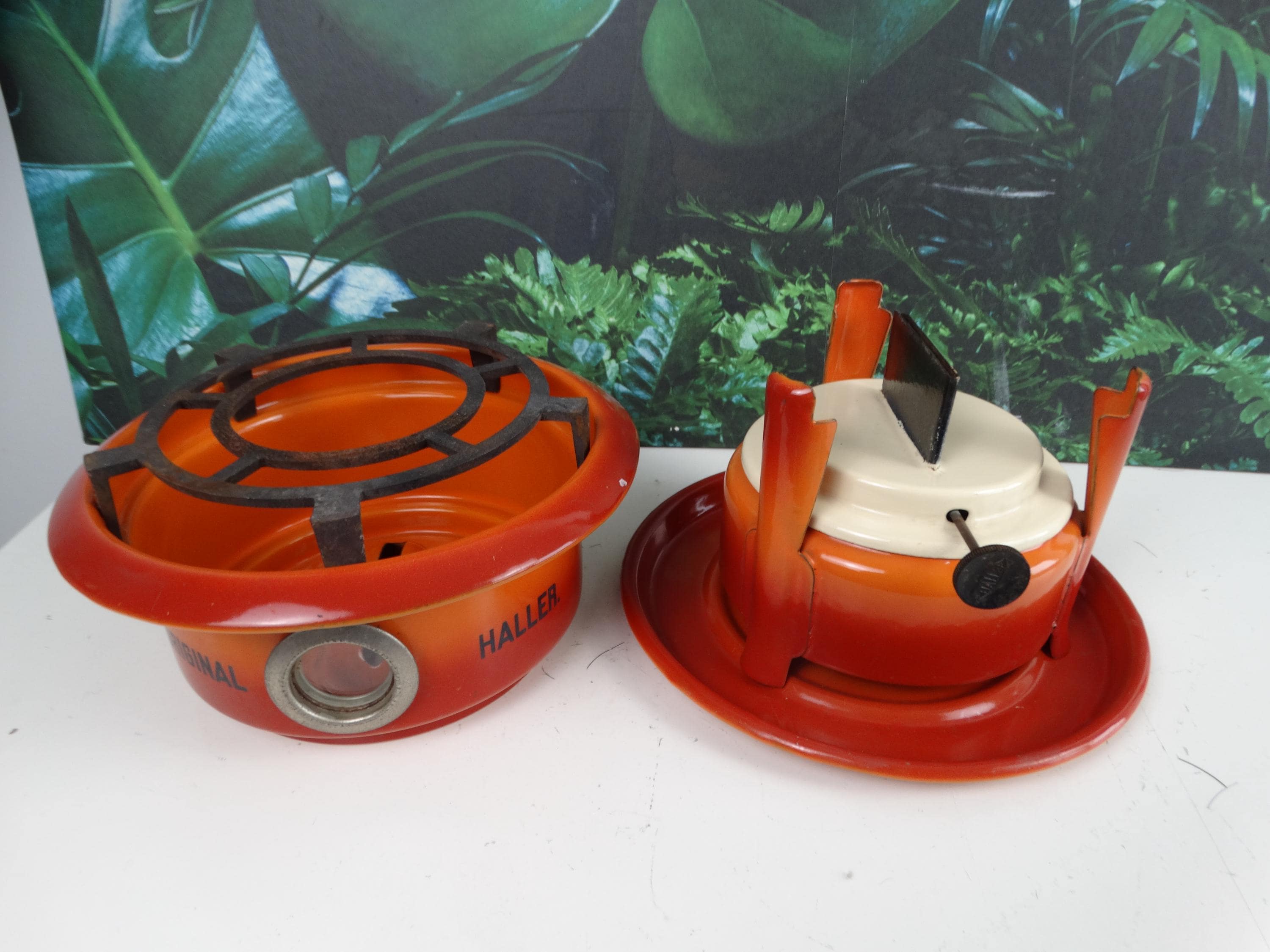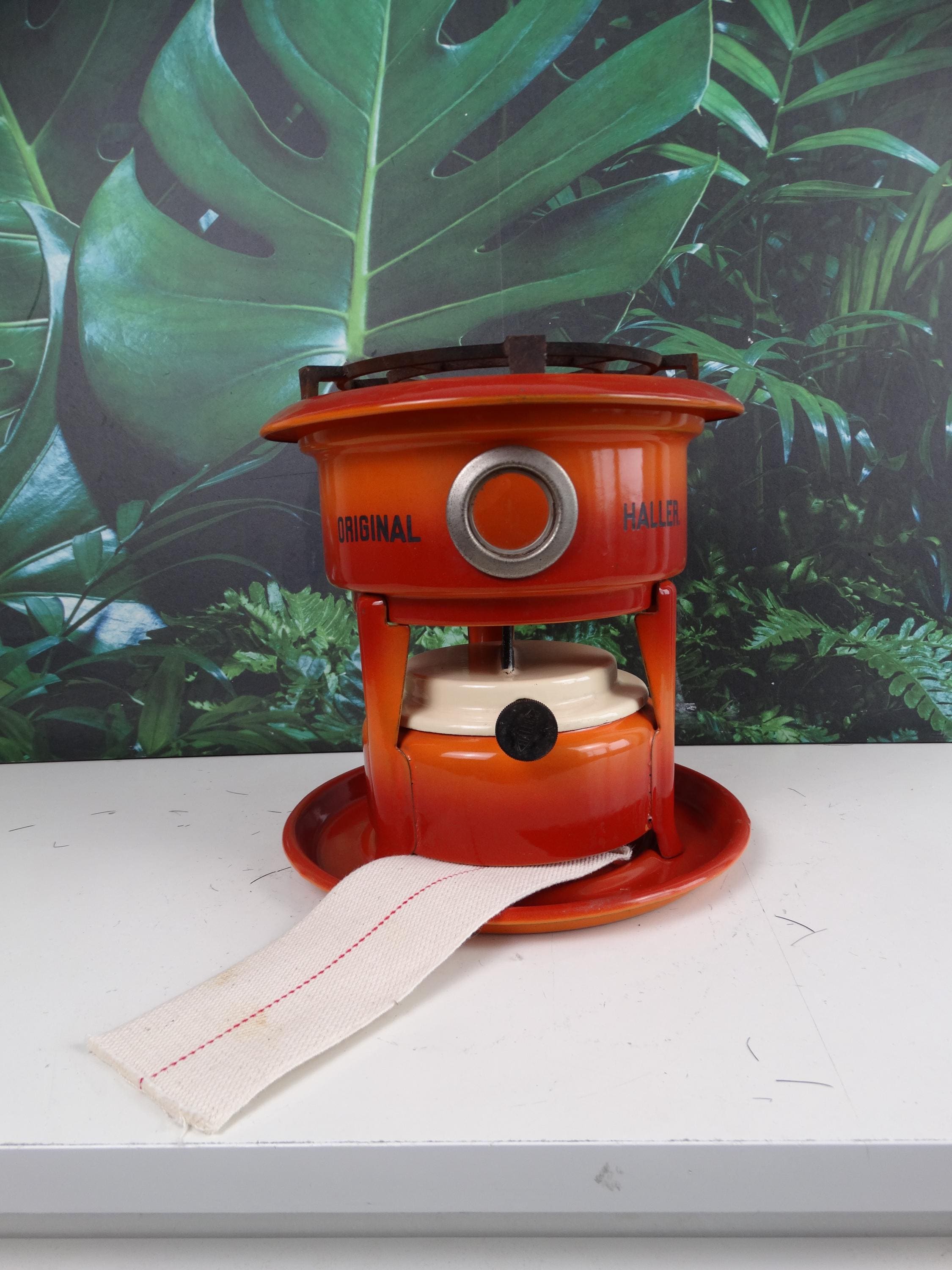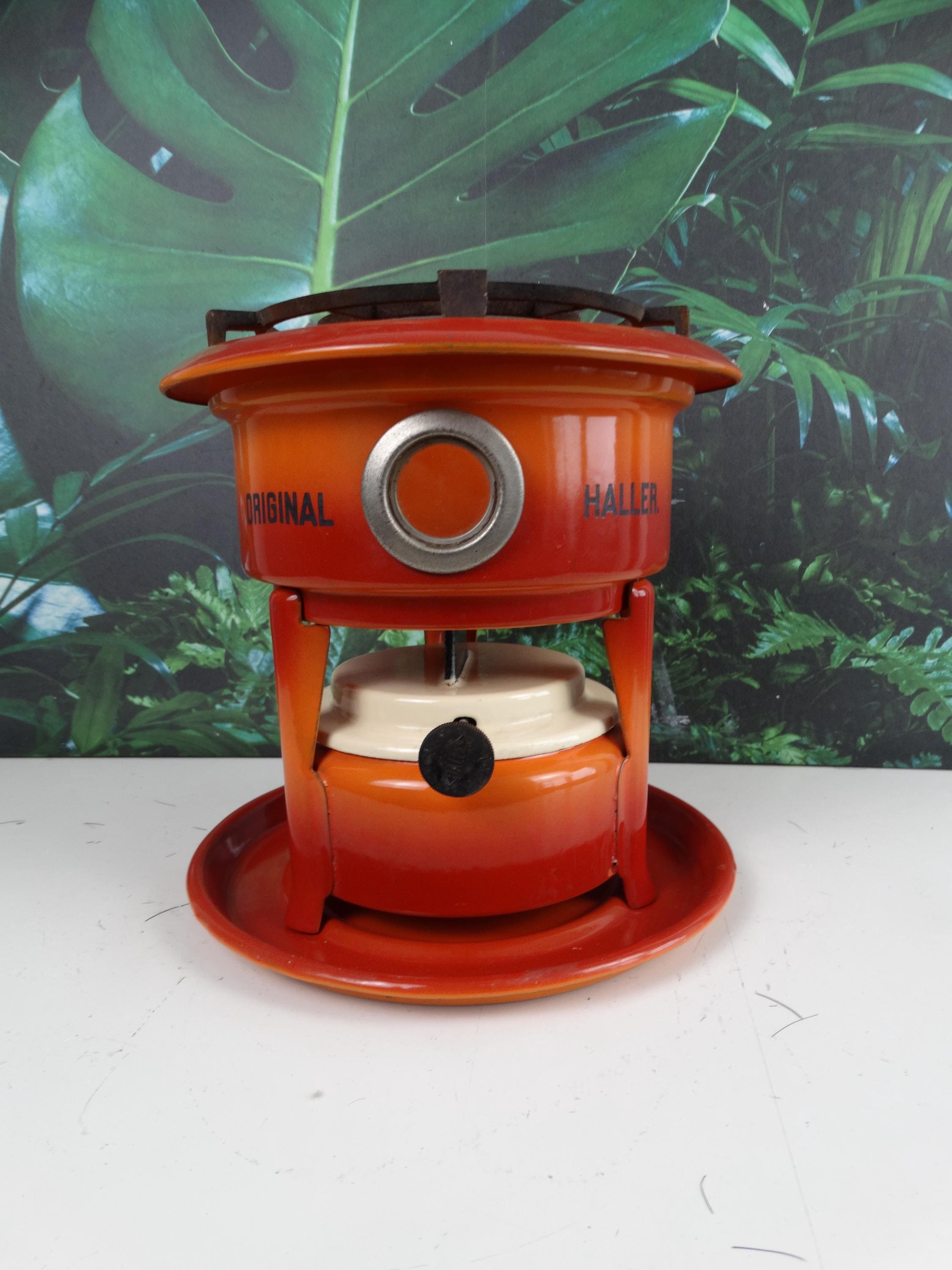 Height: 23 cm, diameter: 23 cm, orange. 1 burner, with "Original Haller" lettering! With base plate.