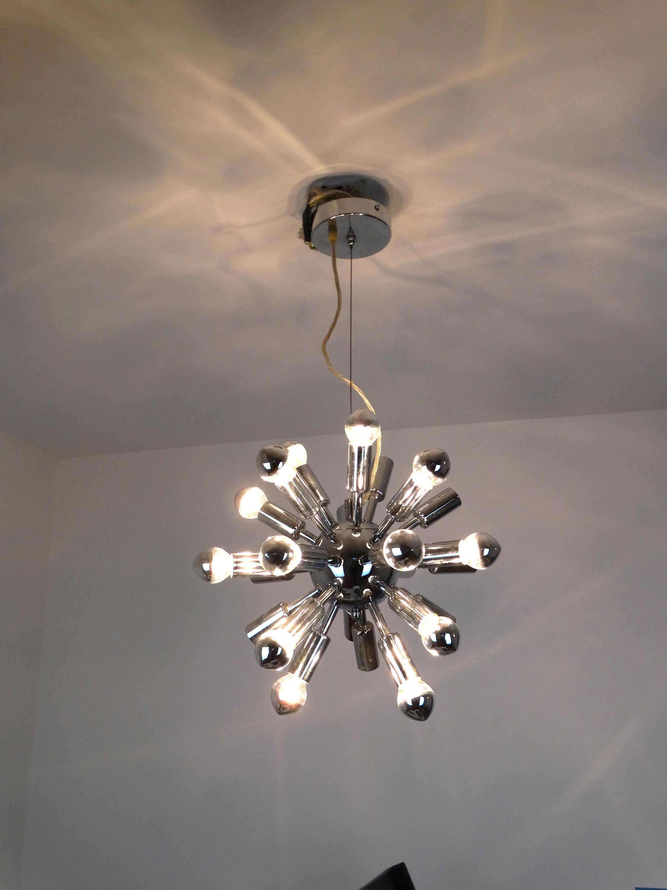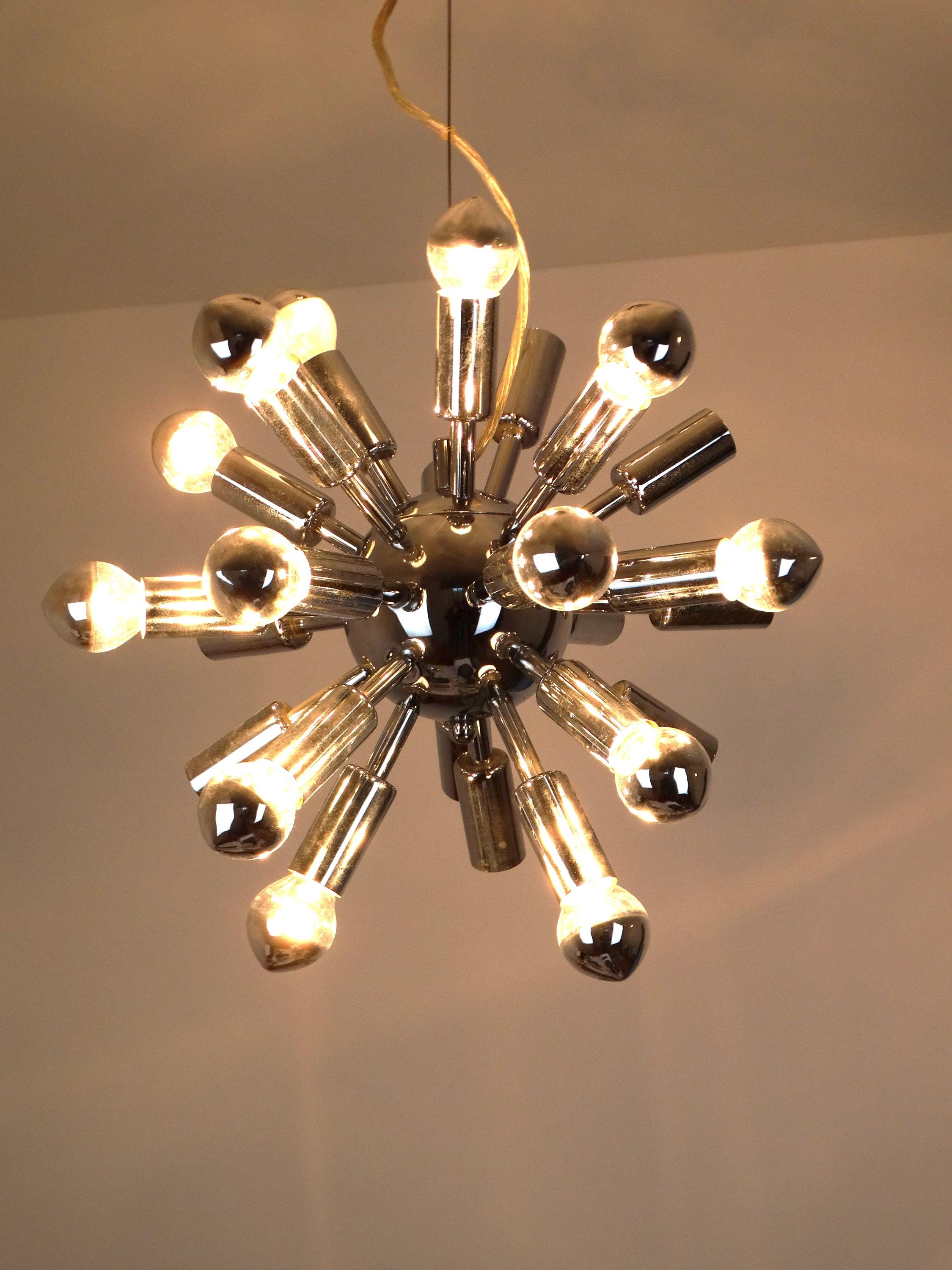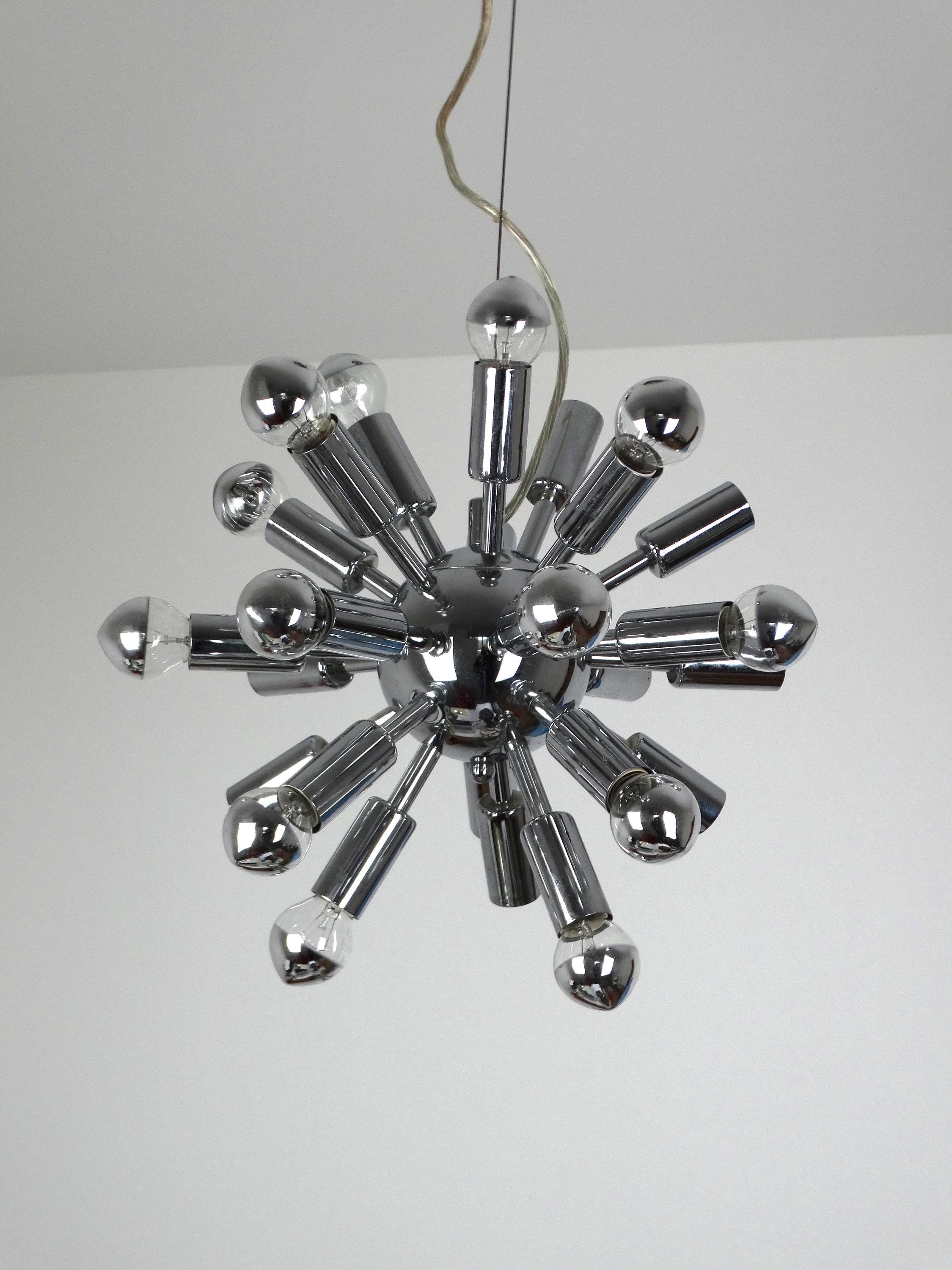 Each of the twenty-four arms has an E14 (small socket) suitable for a mirror-head or standard bulb. Light bulbs are not included.