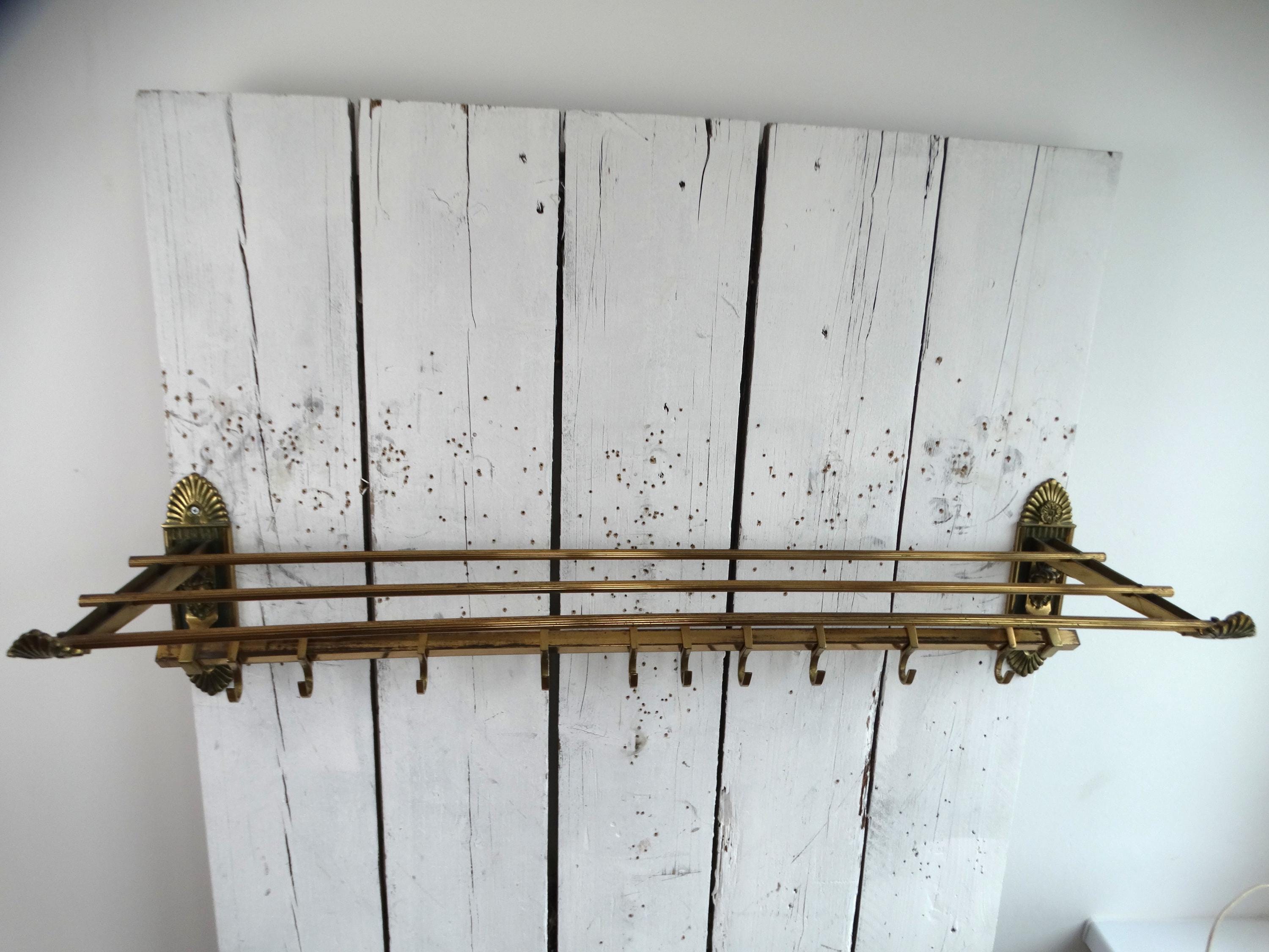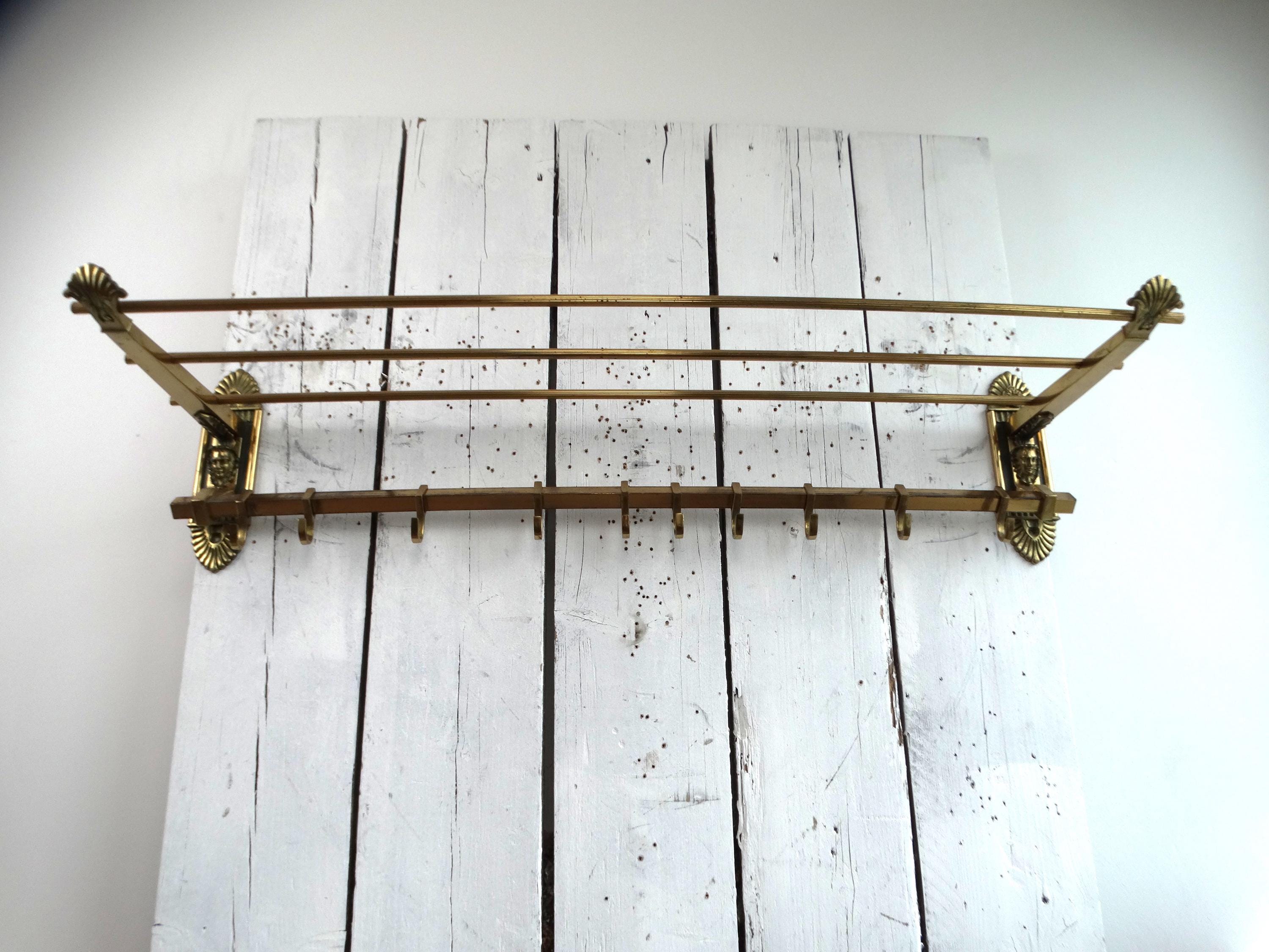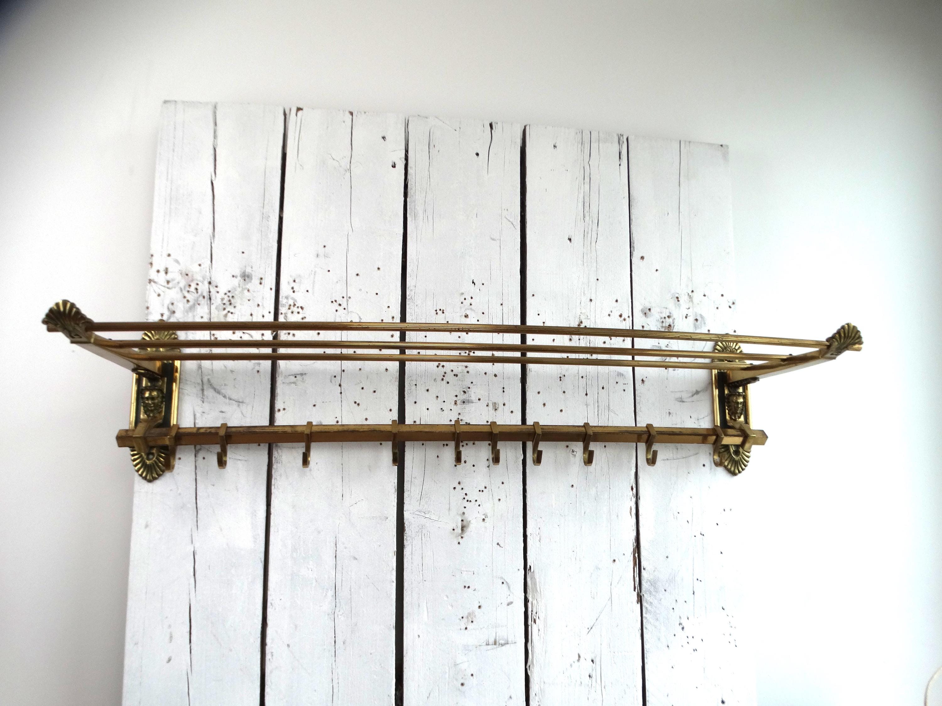 The hat shelf has 3 solid brass rods and the tube on which the 10 coat hooks hang is square in shape.