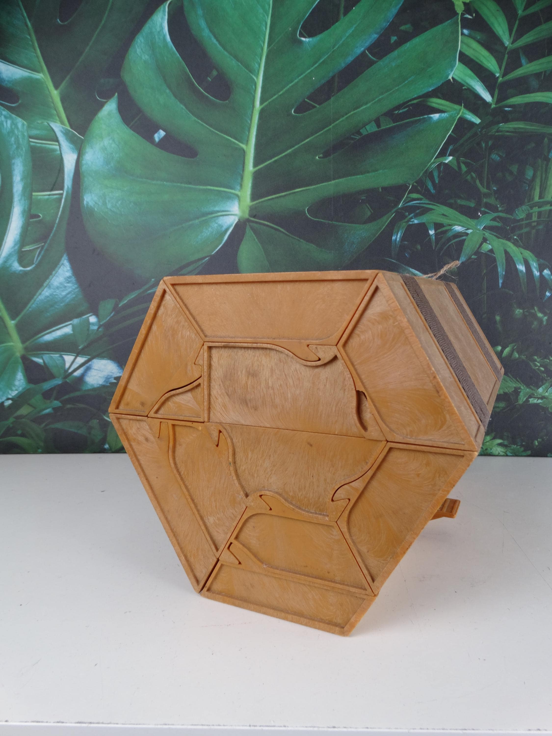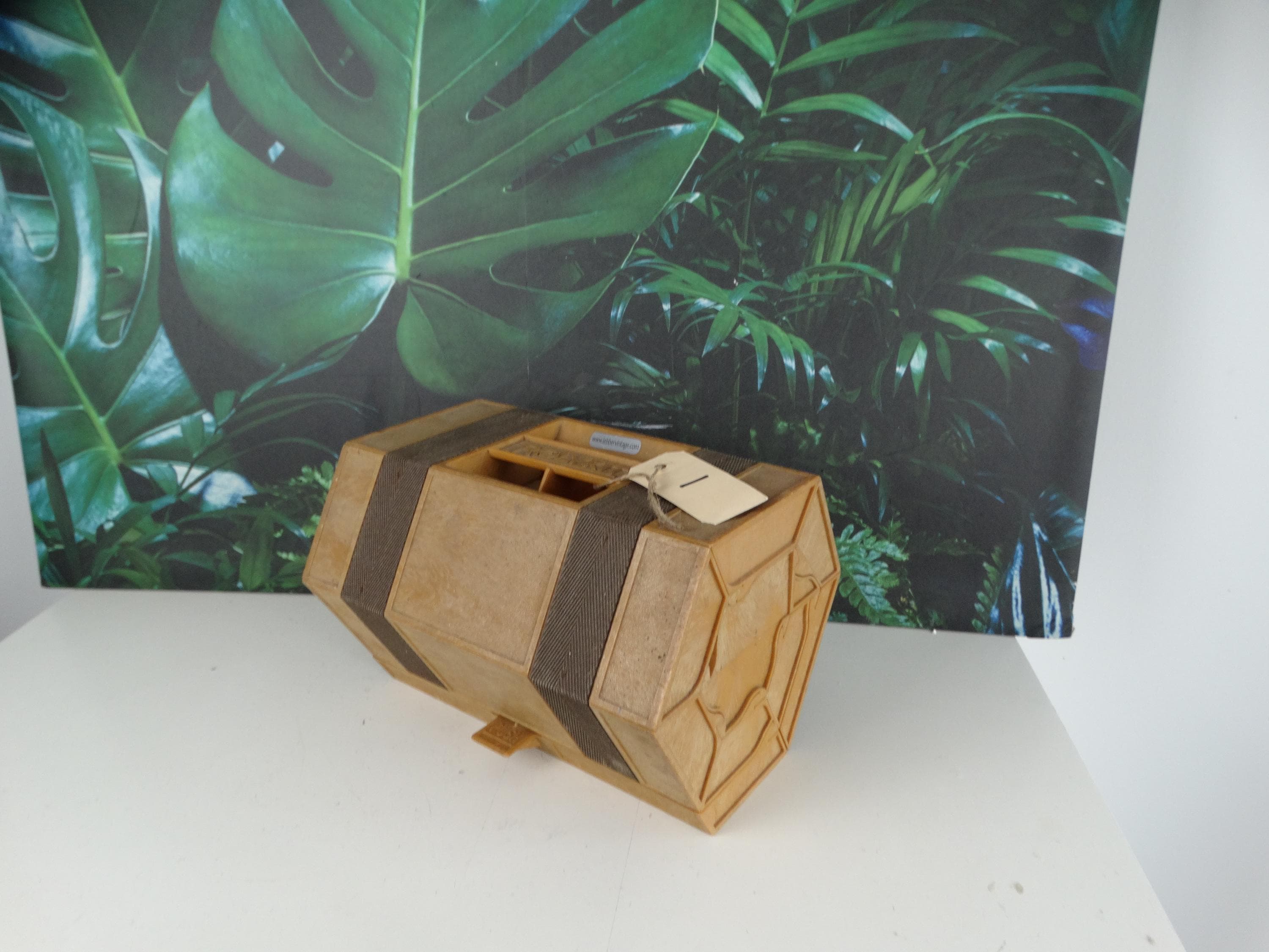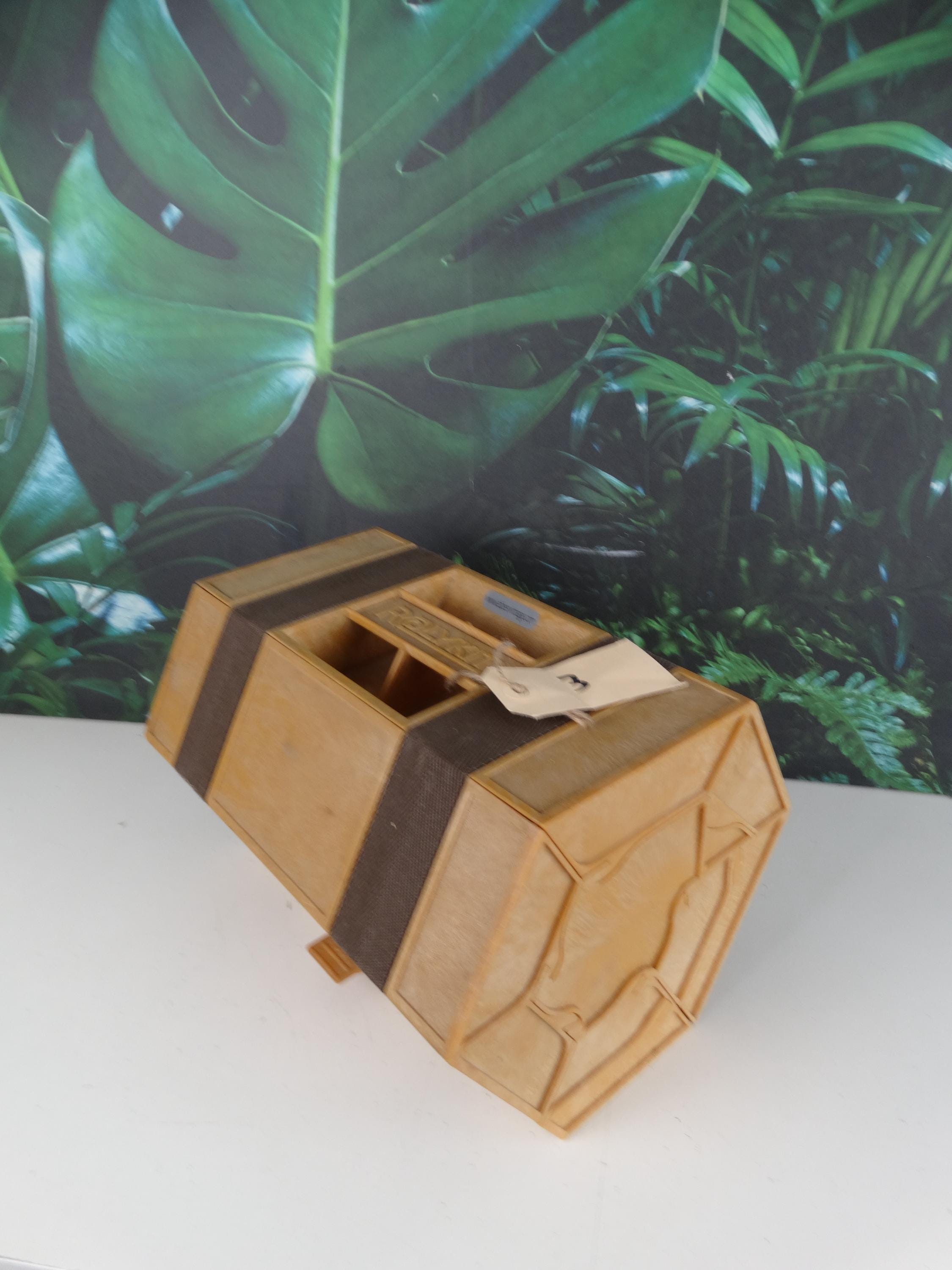Here's a great Rolykit Roll-up Storage Box from the 1980s. It rolls out into this long strip of compartments. It's brown. Other than that, it's in good condition and has a handle for easy carrying. This piece would help keep all your goodies organized! In excellent condition!