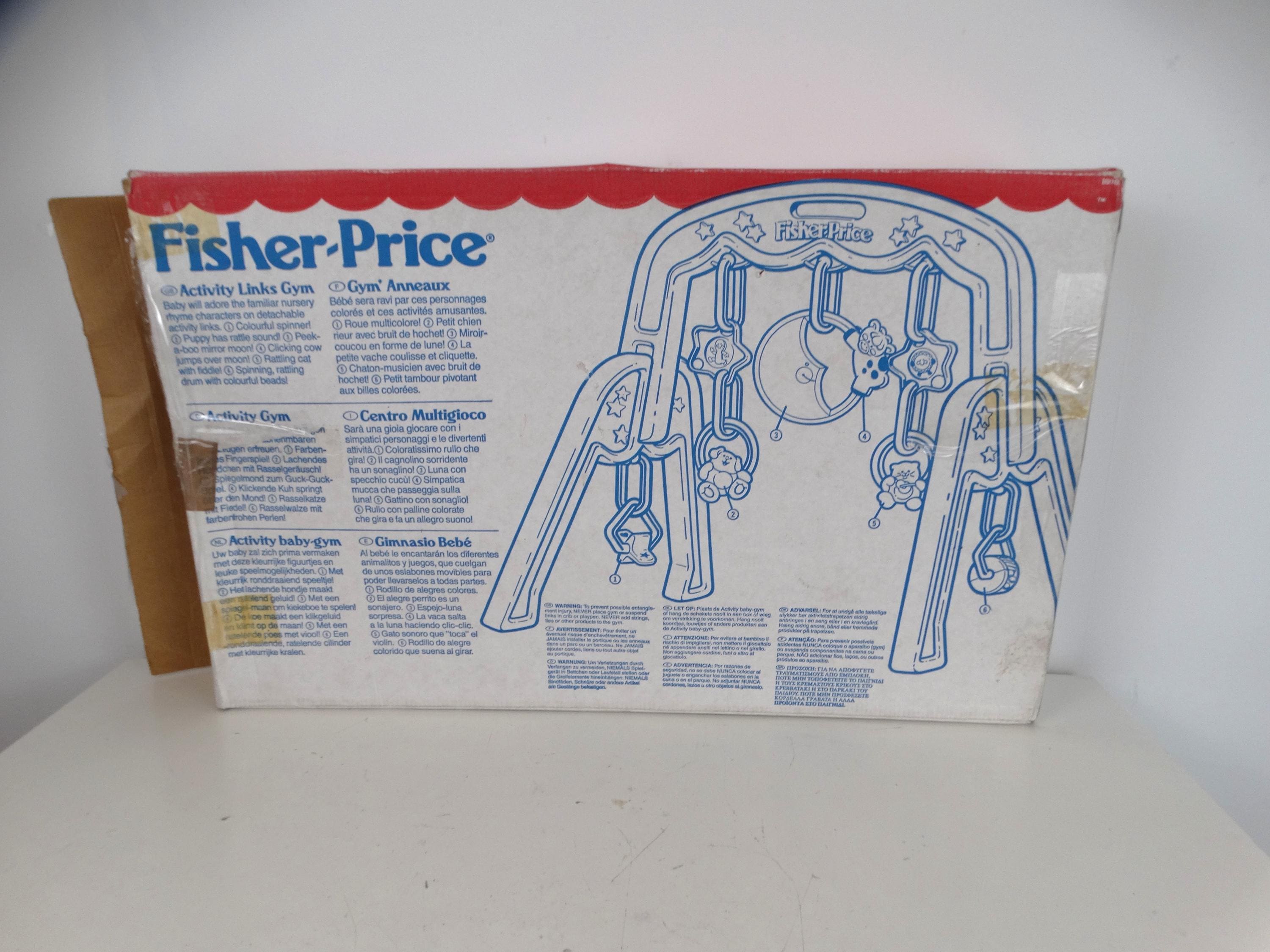 Vintage Fisher-Price Activity Links gym (model #734620 or #1090) in original open box. Used, but generally in excellent condition. Comes as pictured, not as boxed.