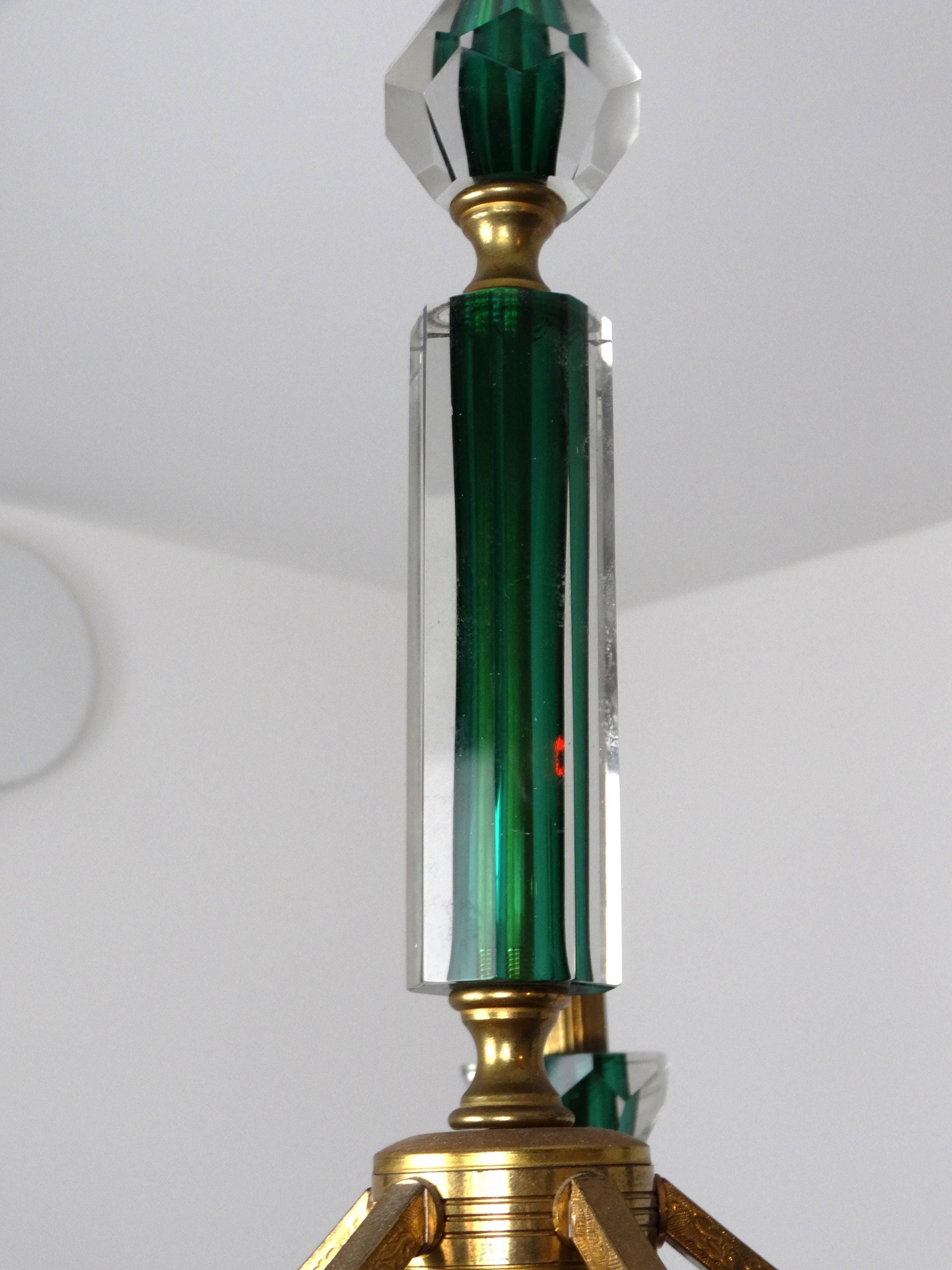 Made in Italy of gilded metal and green stained glass.