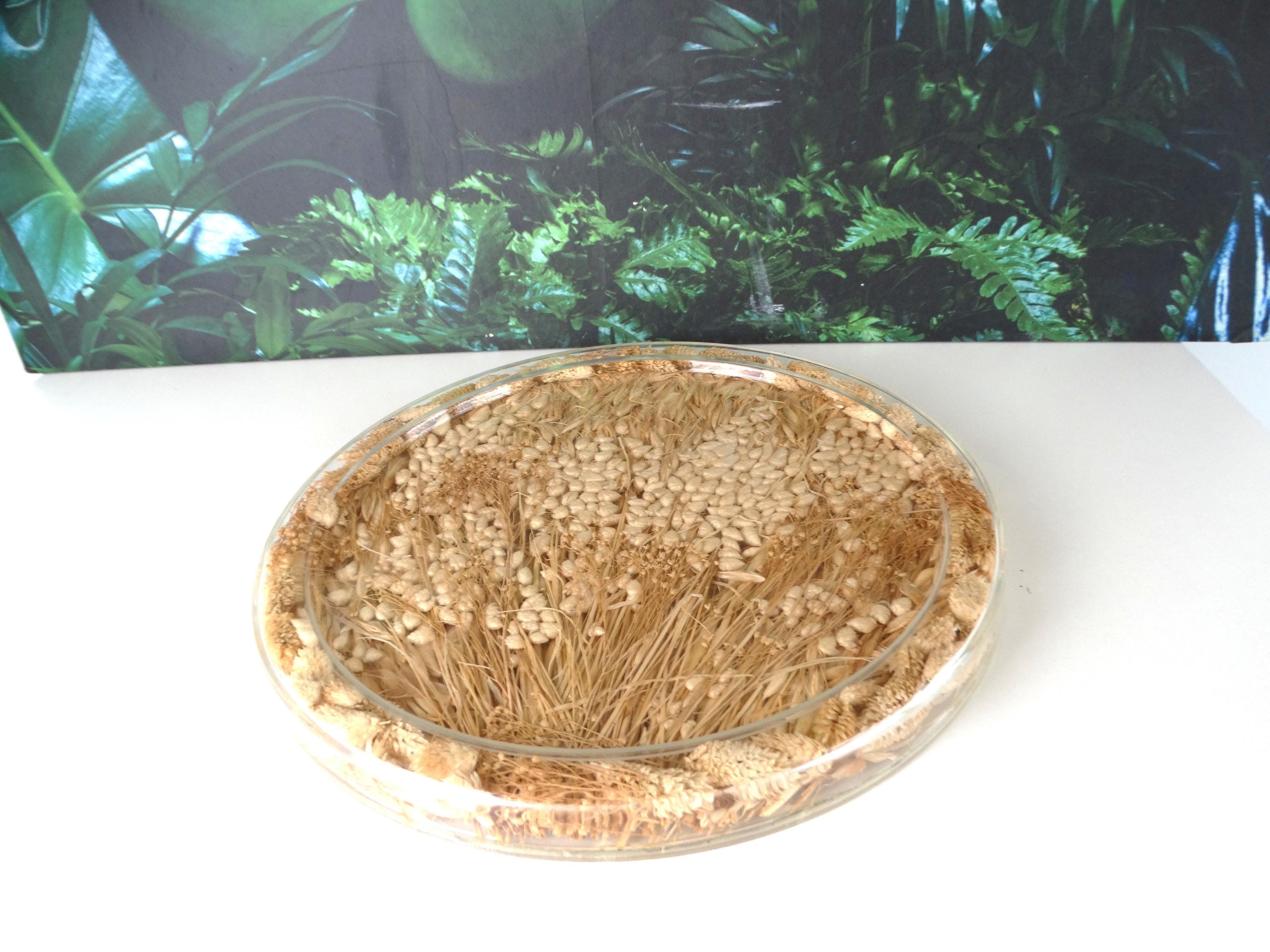 This transparent resin serving tray inlaid with wheat sprigs will transform your brunch table into a Tuscan dream. It's also a great decorative piece. Originally from the mid-1980s and in perfect condition, it features a more generous amount of wheat sprigs than what's produced today.