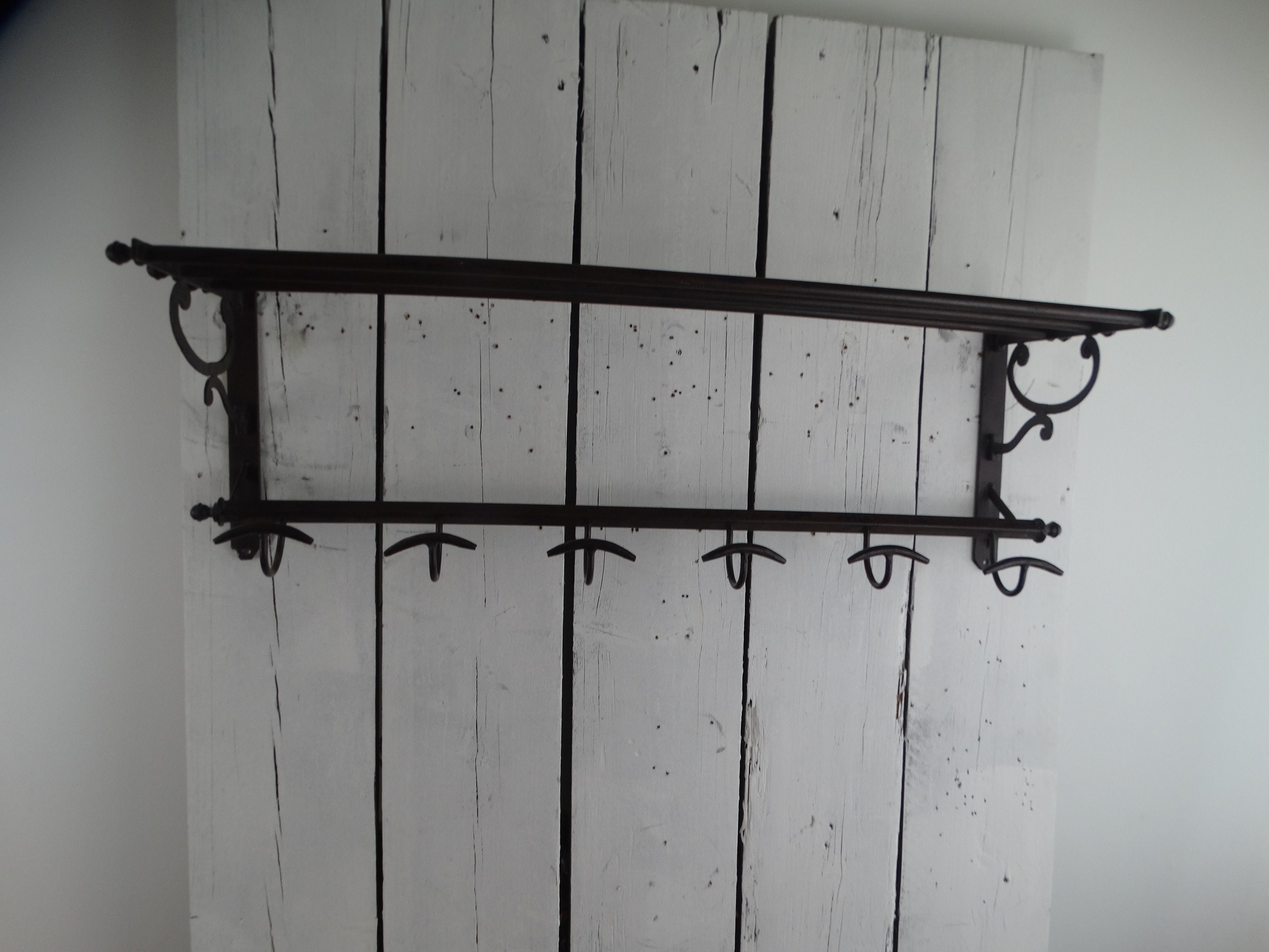 Beautiful and elegant coat rack with hat shelf in solid quality.