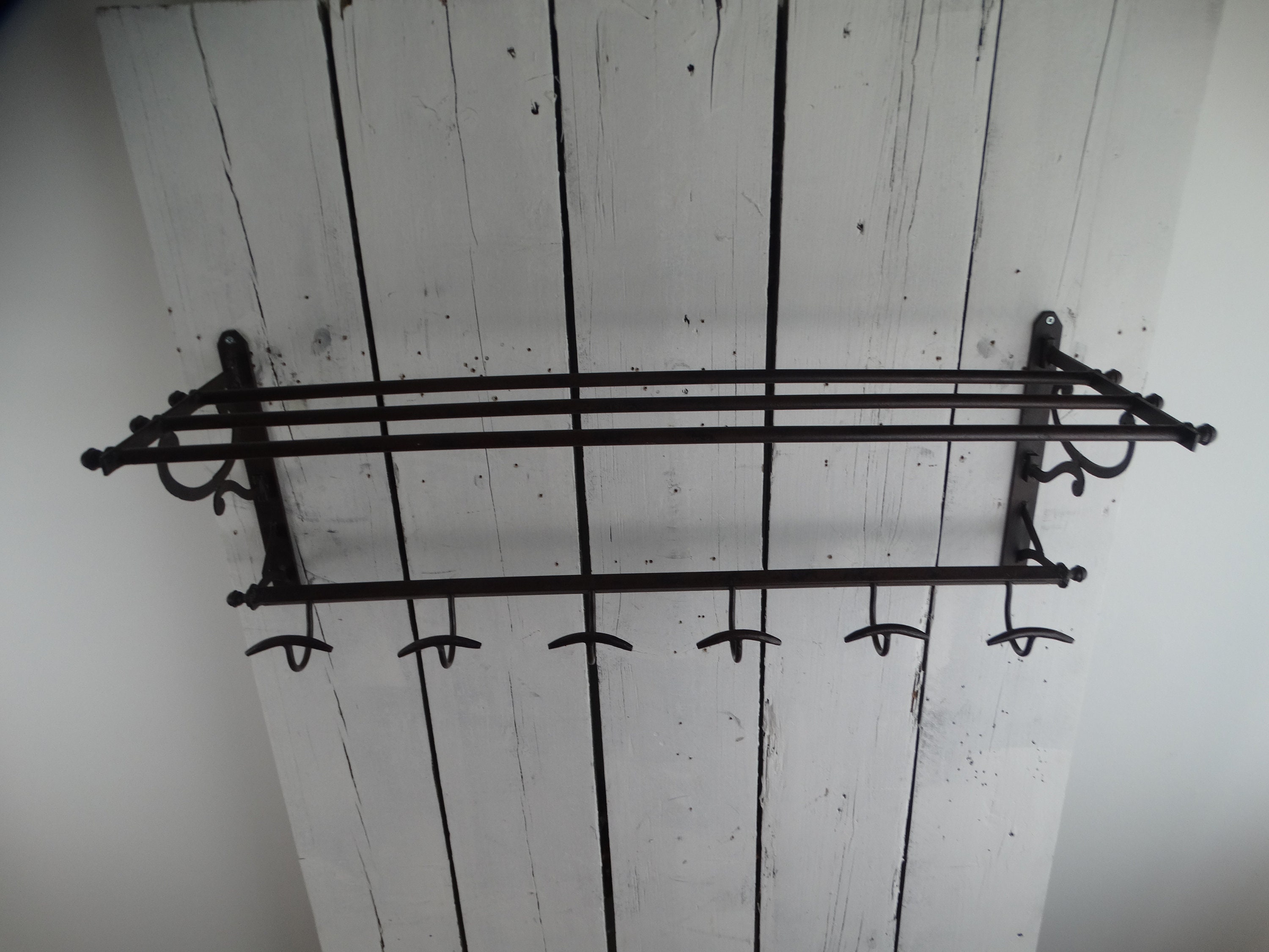 Made of metal with a hat shelf made of 4 metal tubes, round tube with 6 coat hooks.