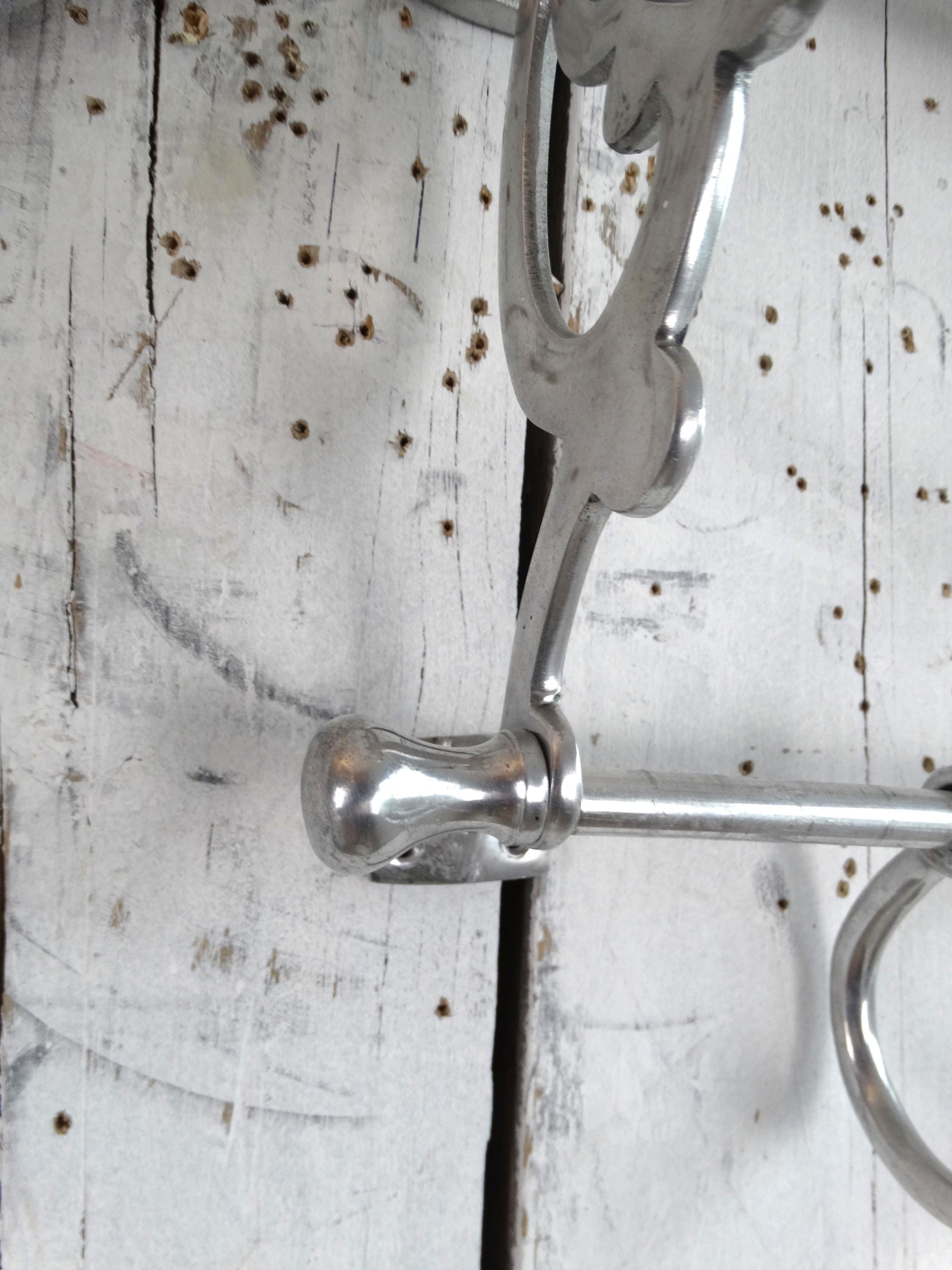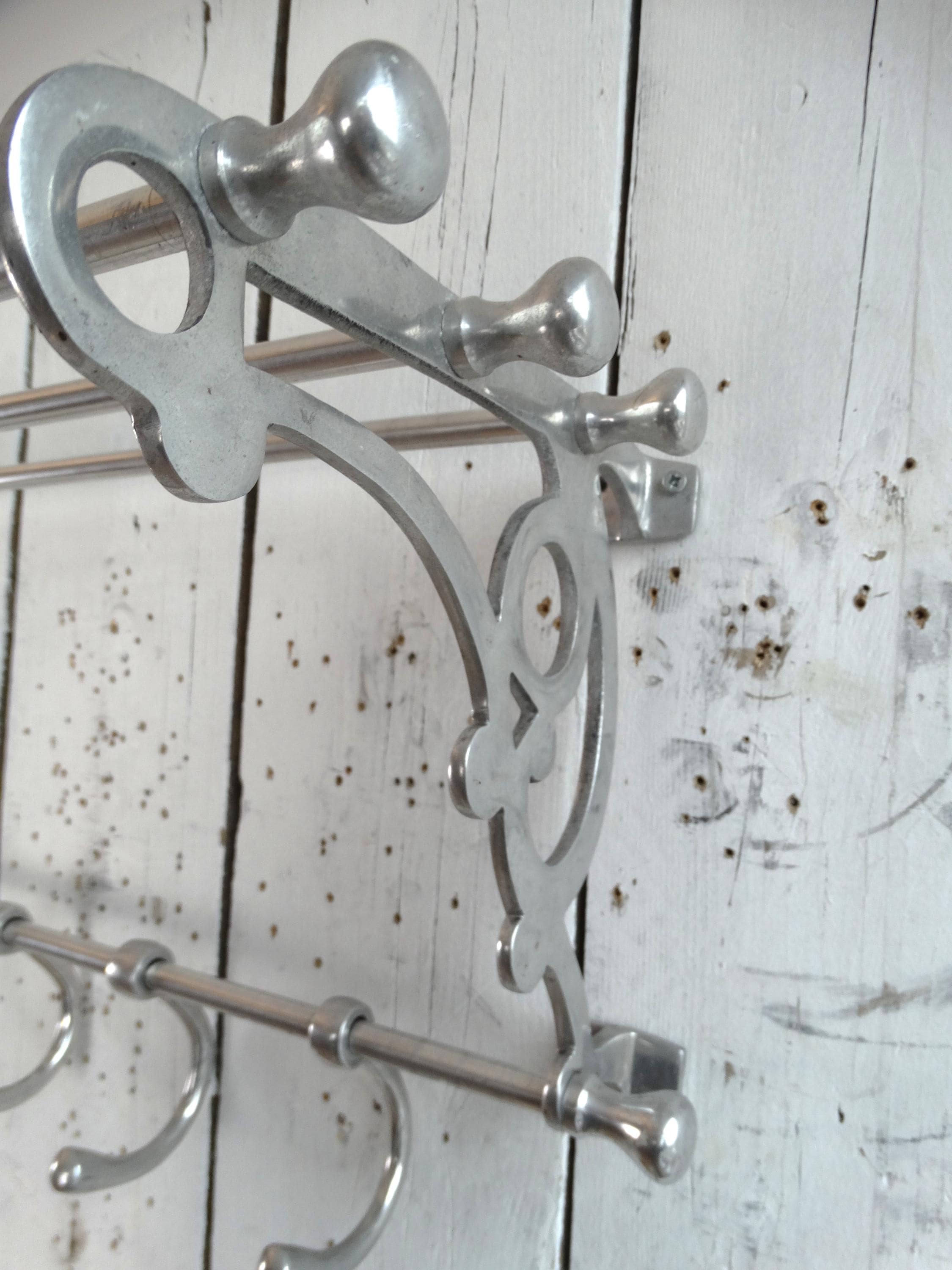 Beautiful wagon coat rack made of chrome and polished aluminum.