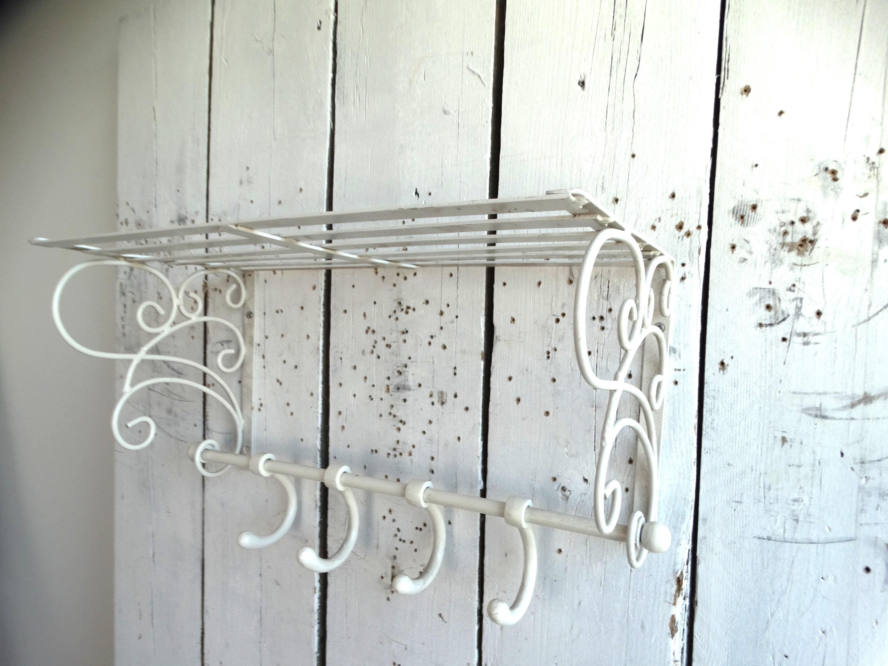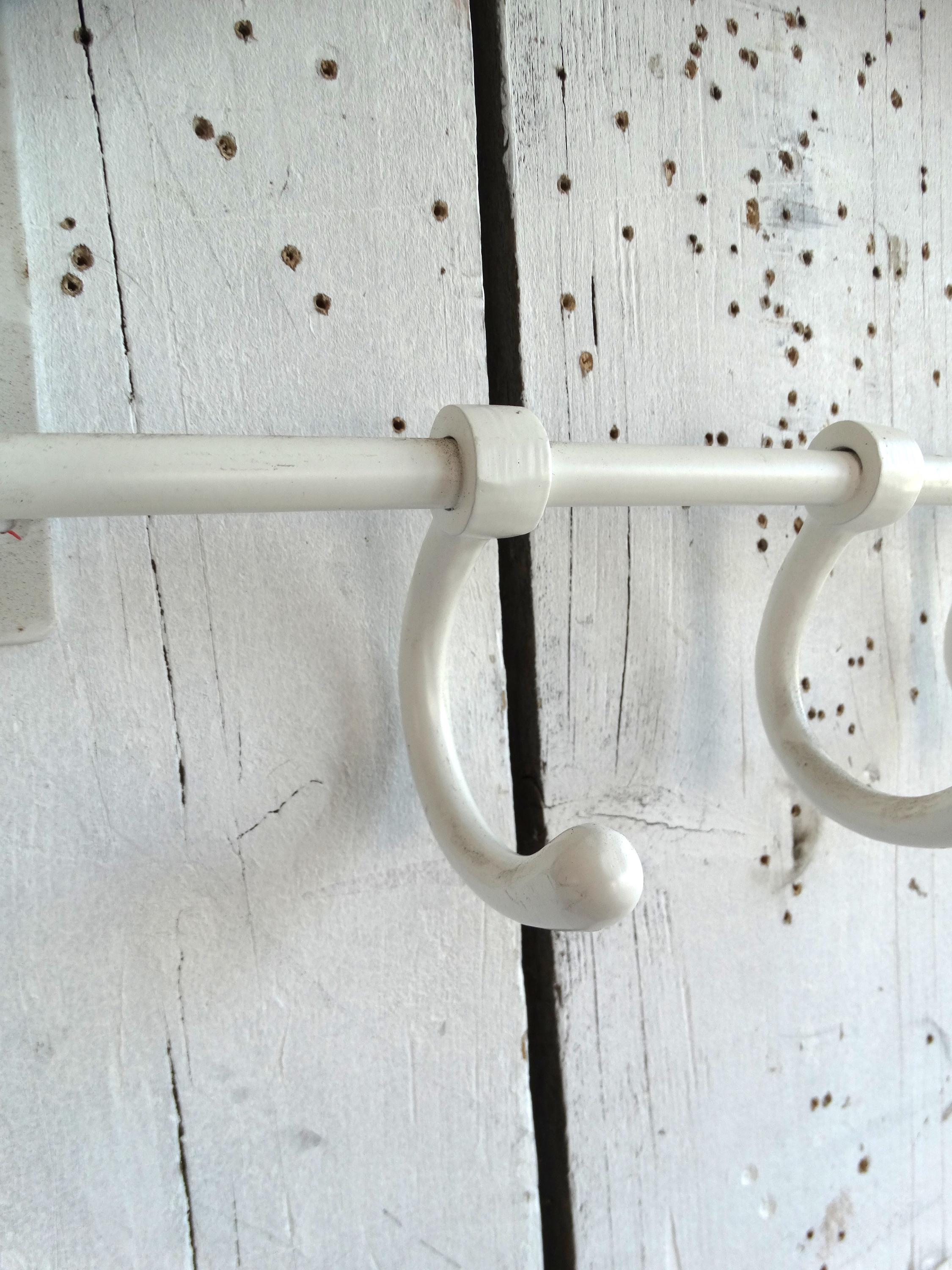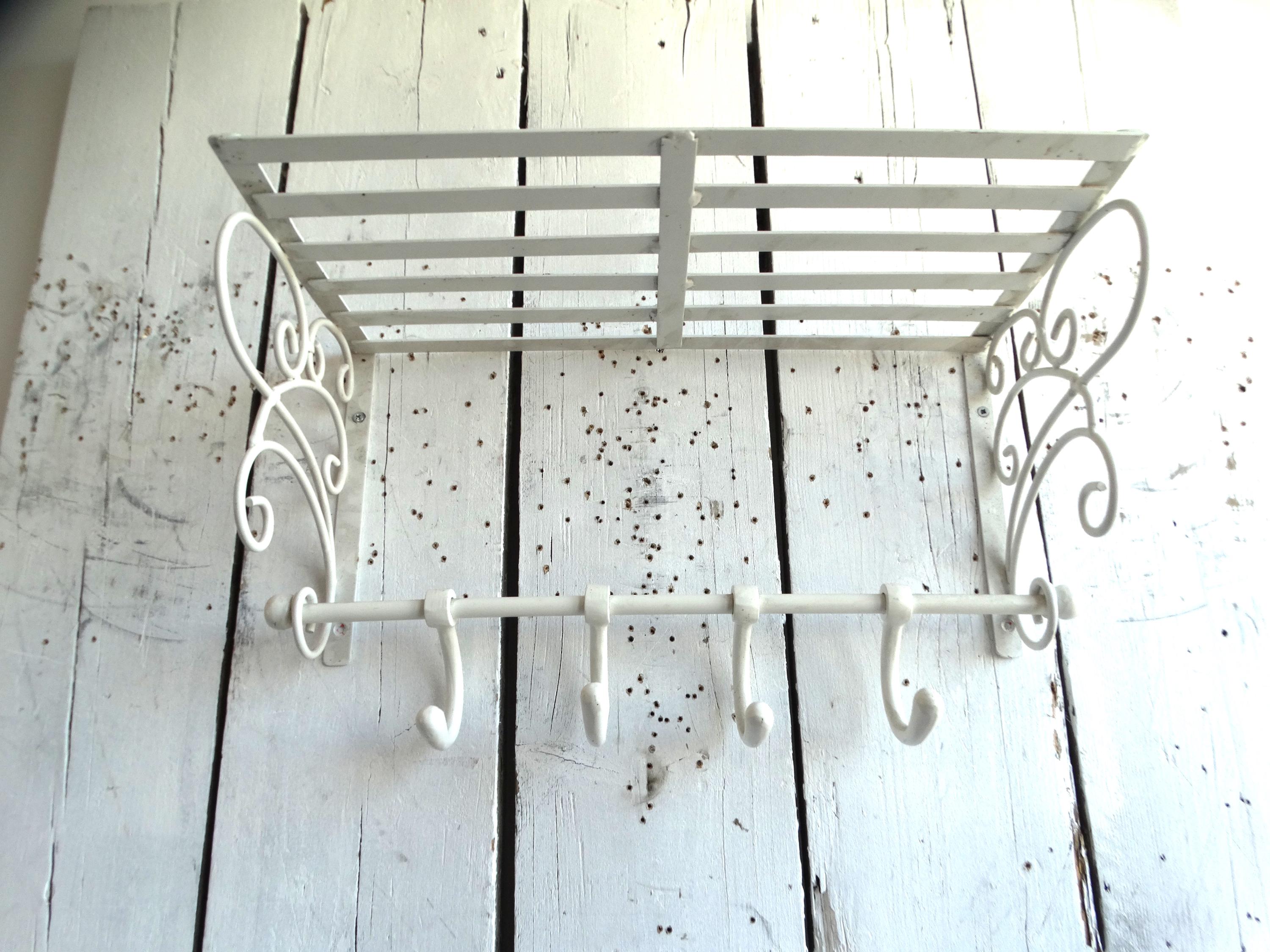 Beautiful wagon coat rack made of white painted metal.