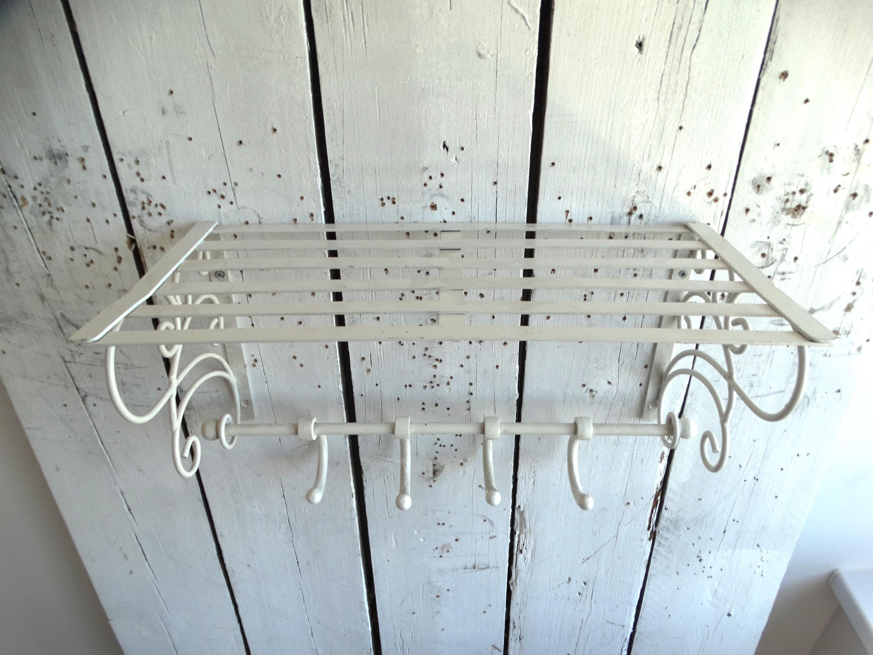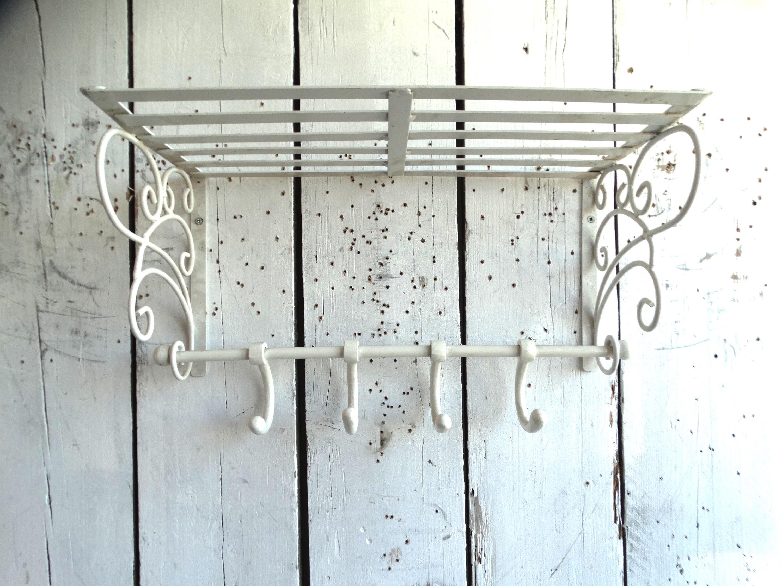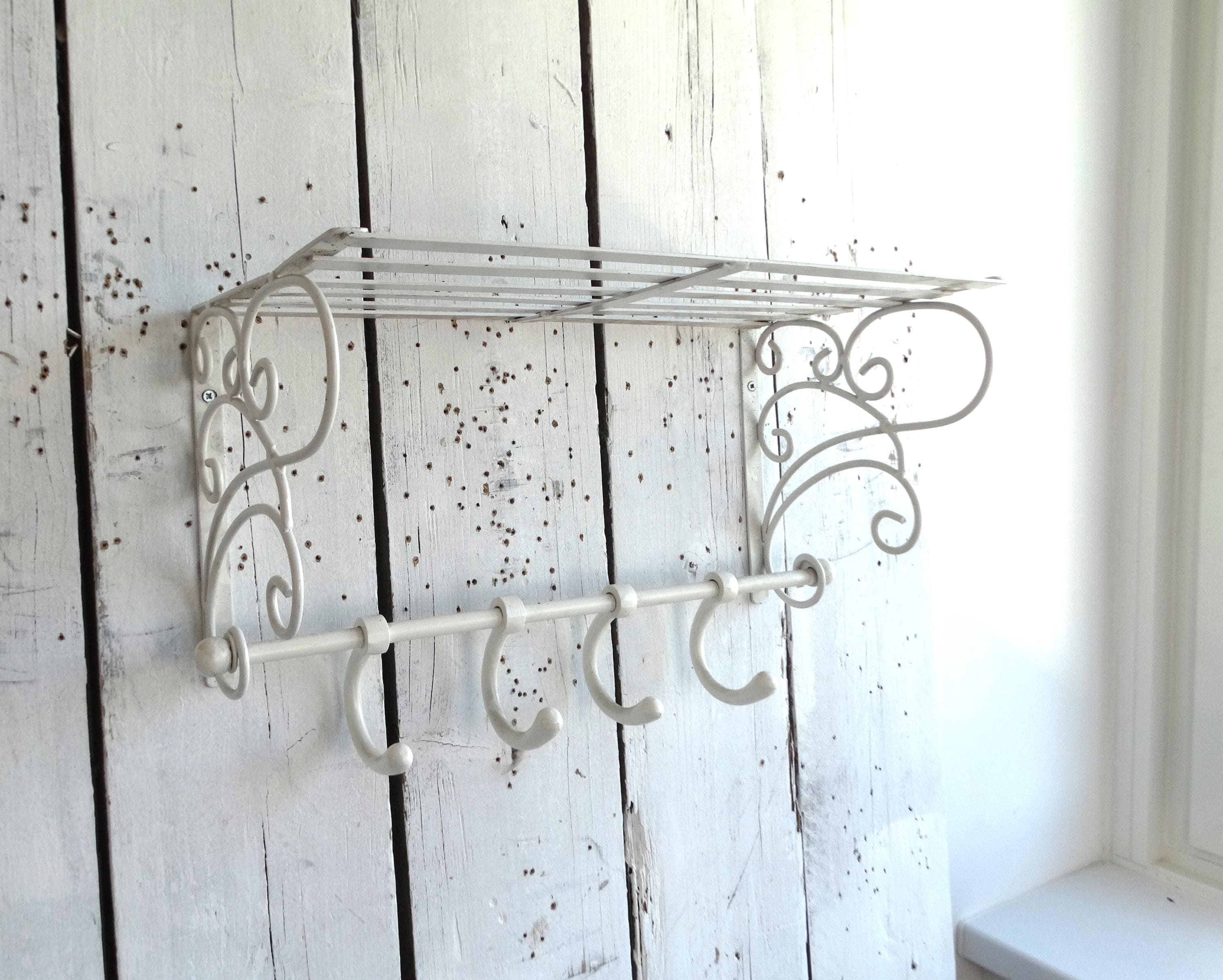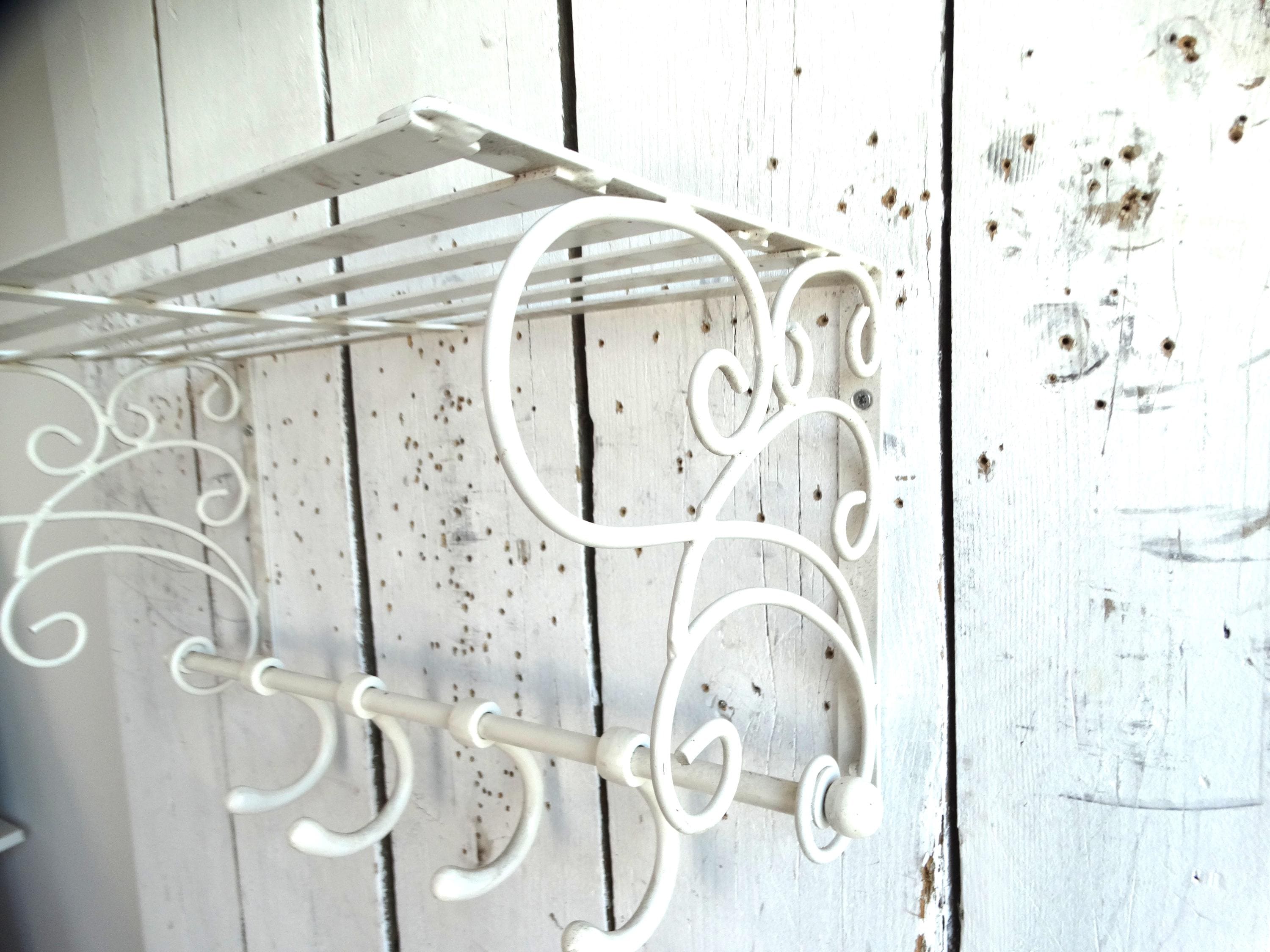 Beautiful wagon coat rack made of white painted metal.