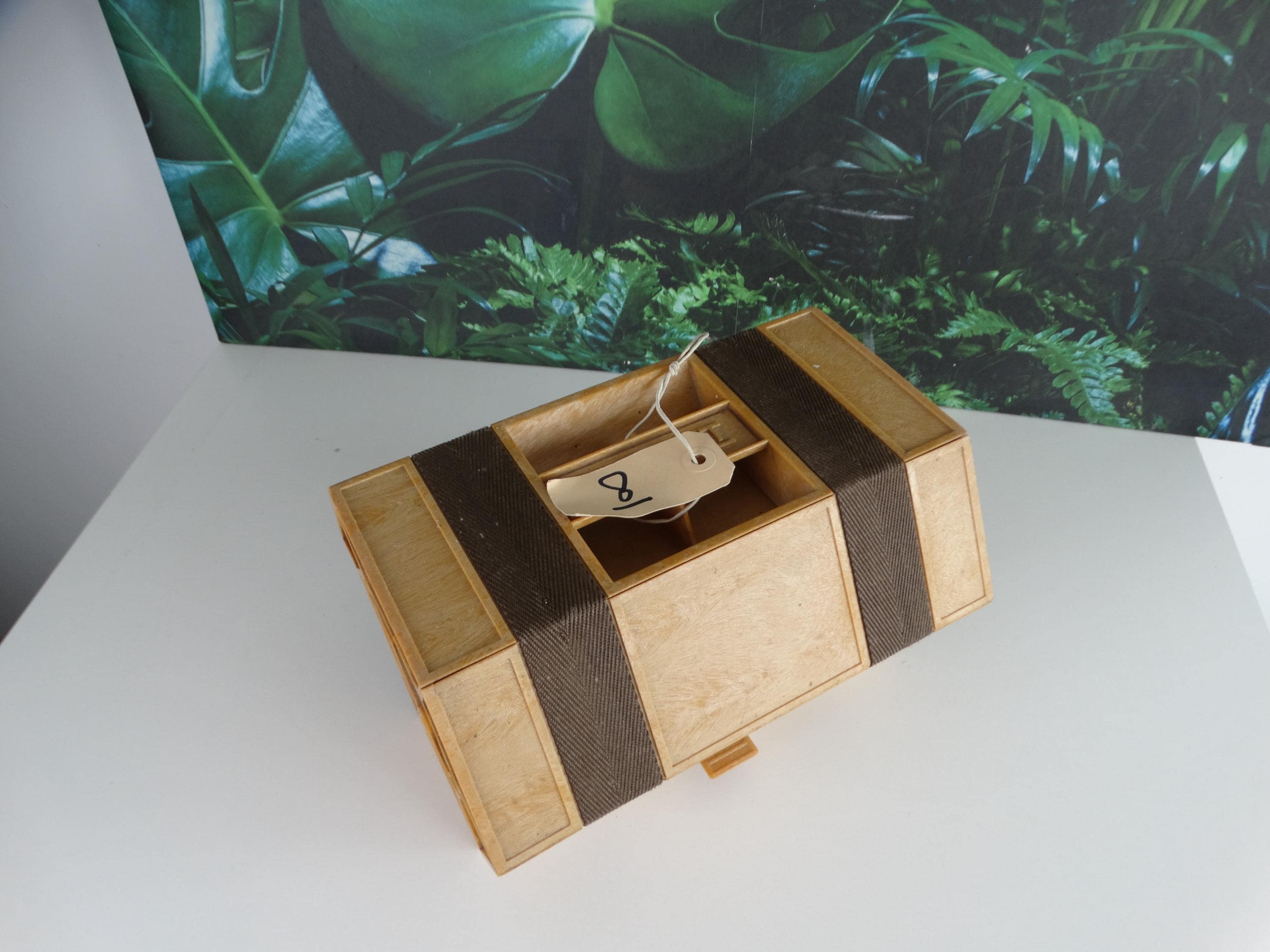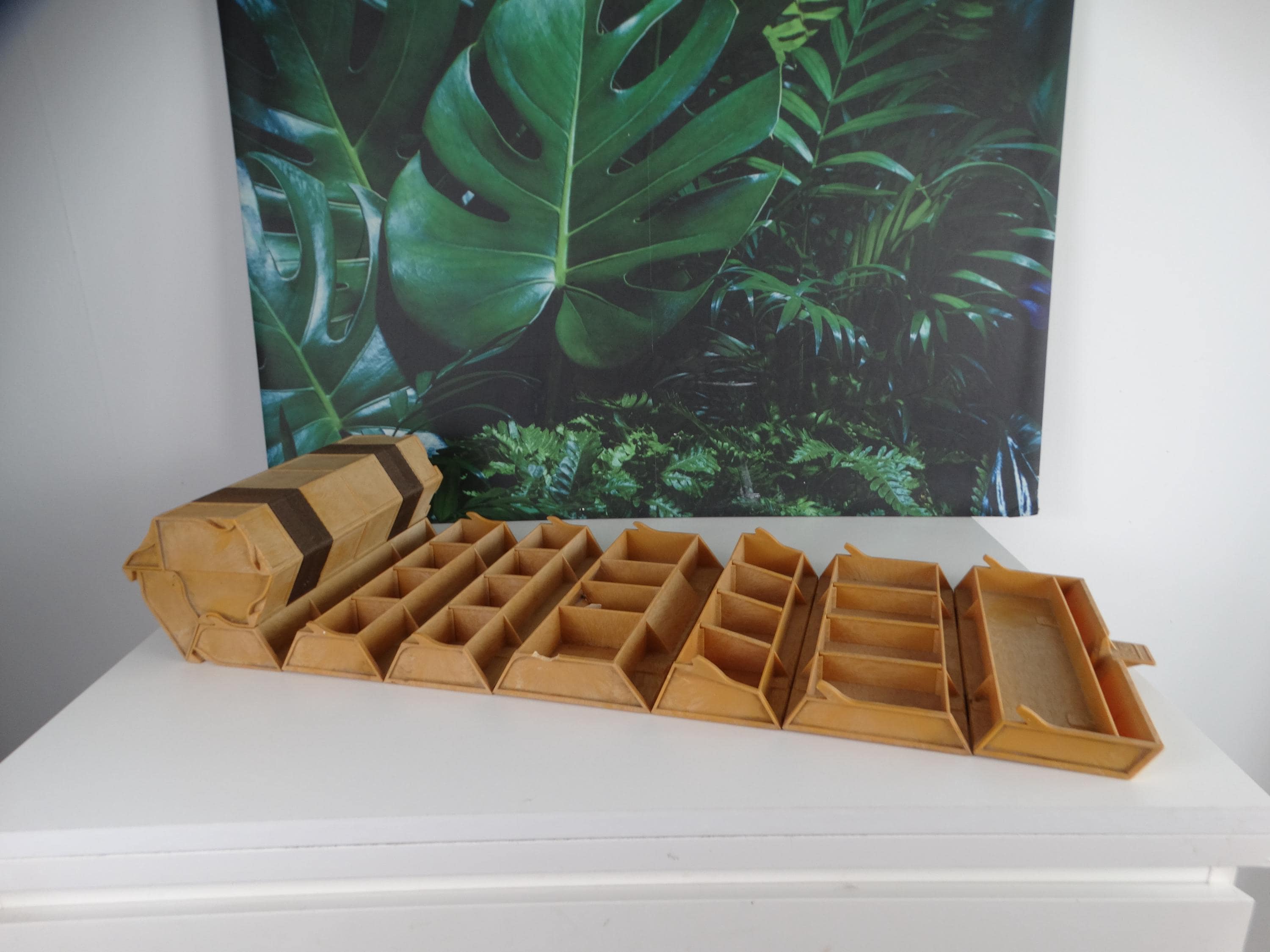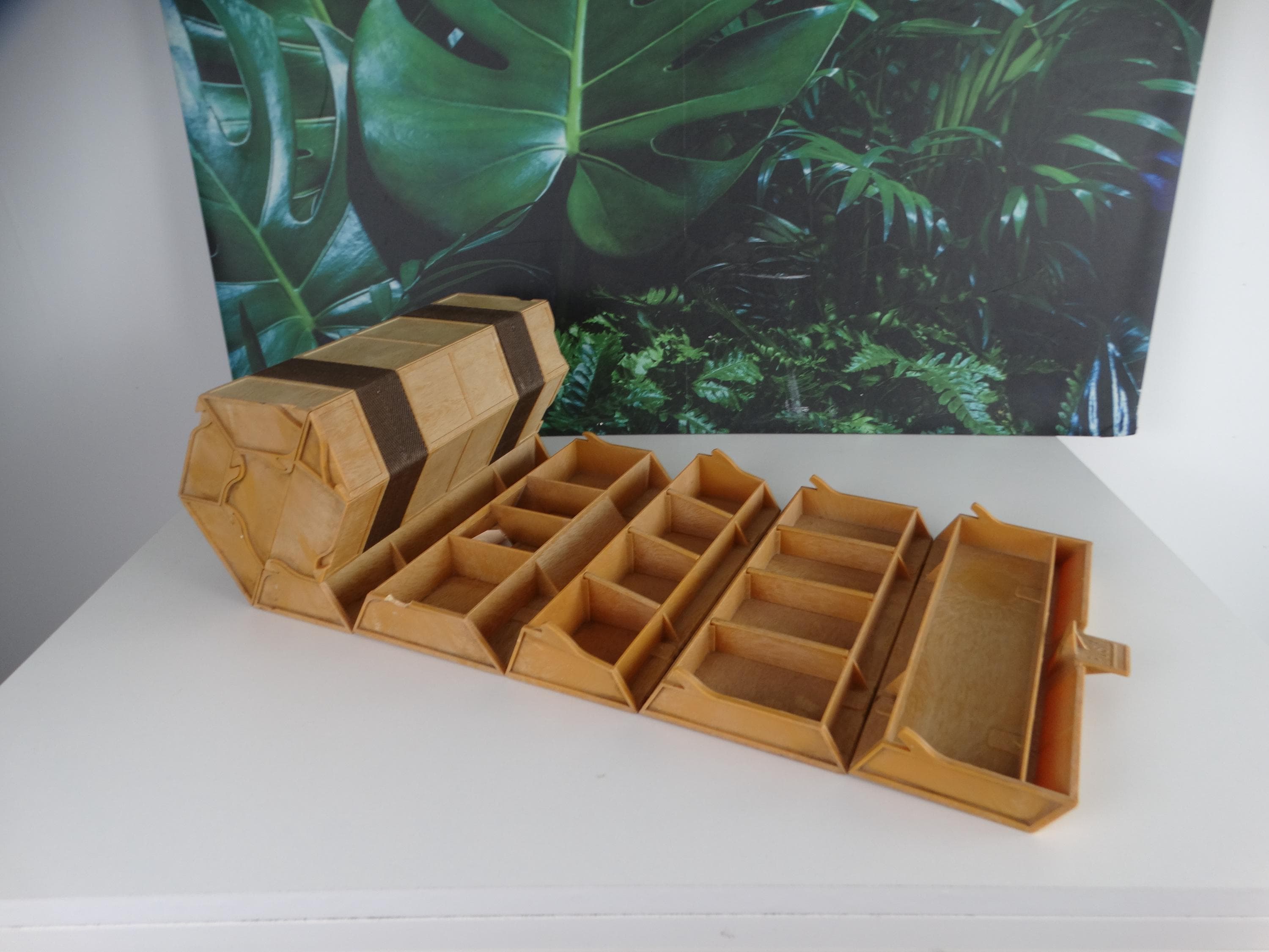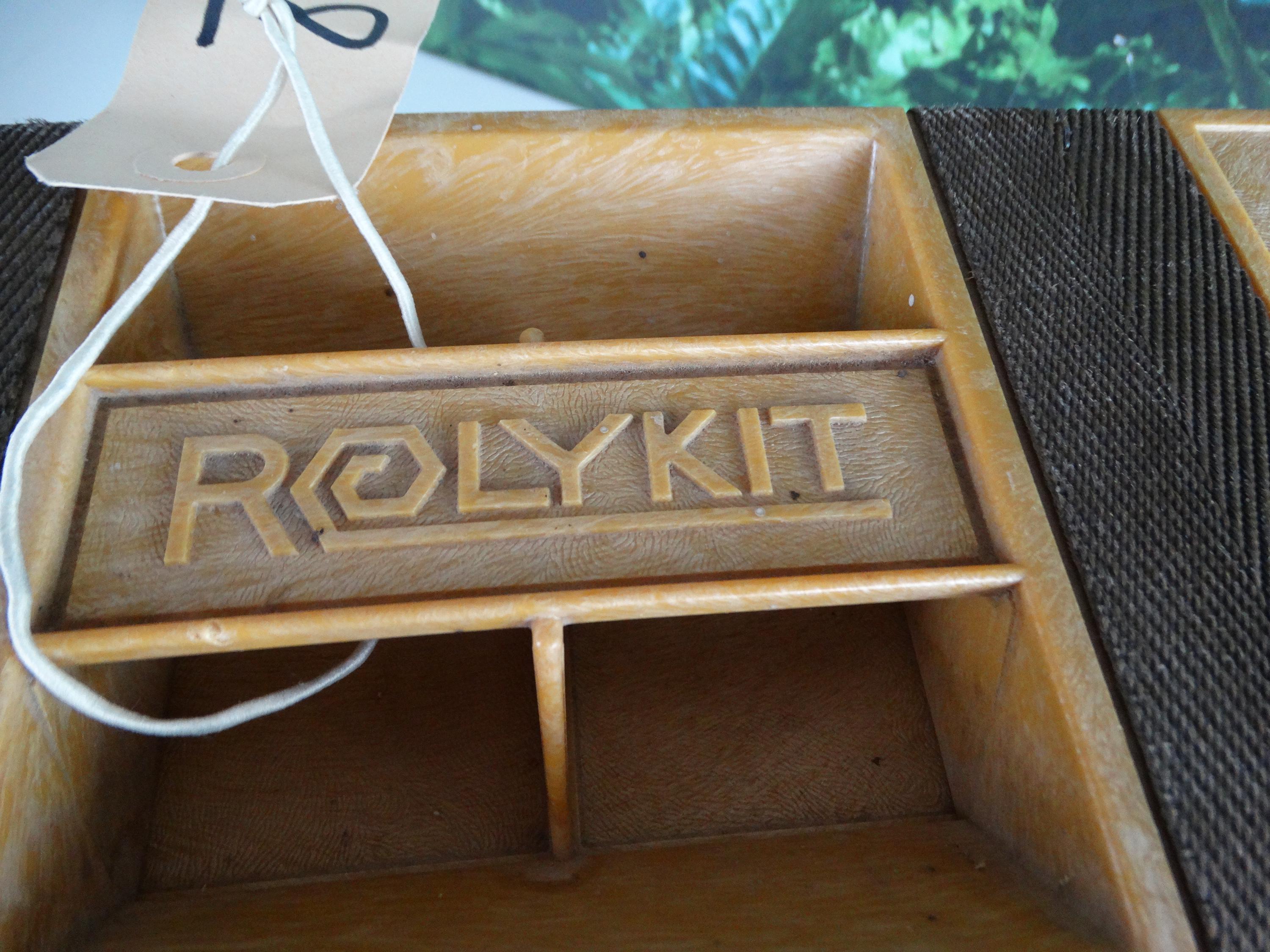 Here's a great Rolykit Roll-up Storage Box from the 1980s. It rolls out into this long strip of compartments. It's brown. Other than that, it's in good condition and has a handle for easy carrying. This piece would help keep all your goodies organized! In excellent condition!