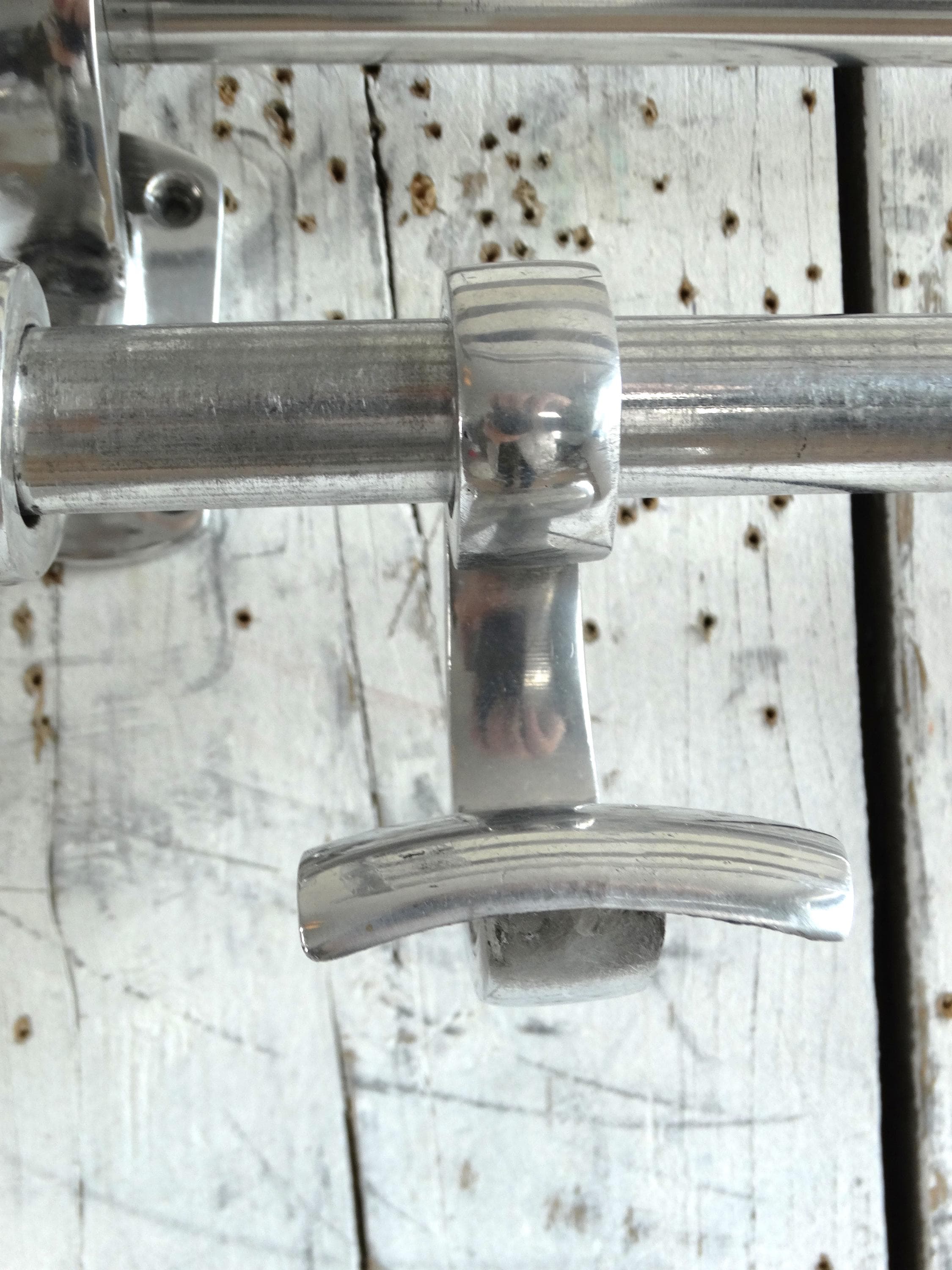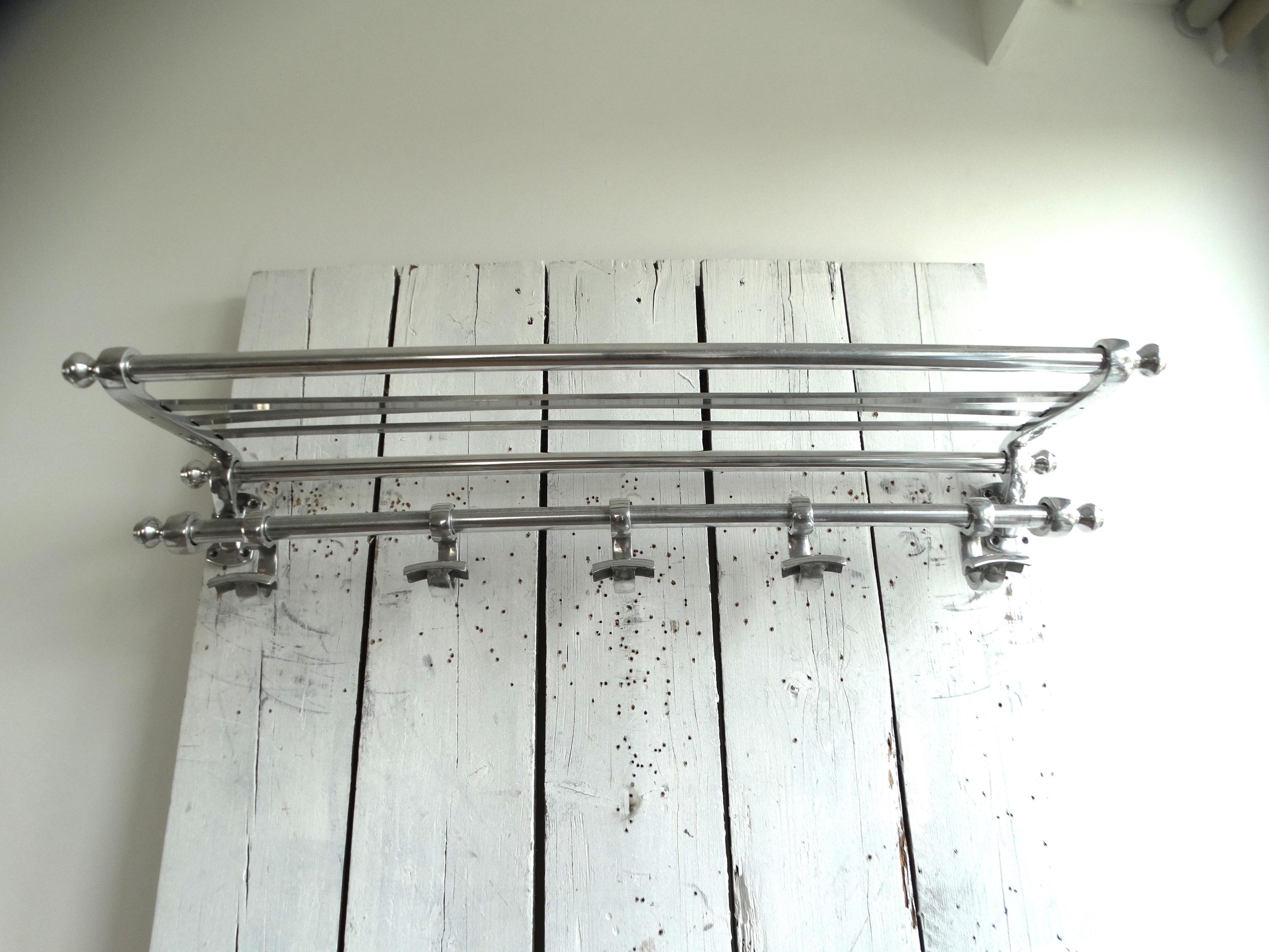 Beautiful wagon coat rack made of chrome and aluminum.