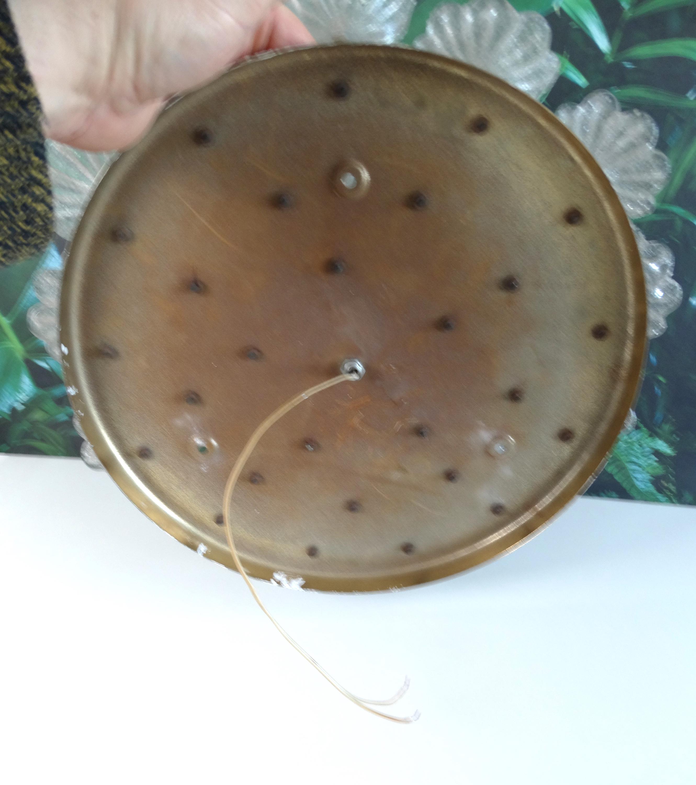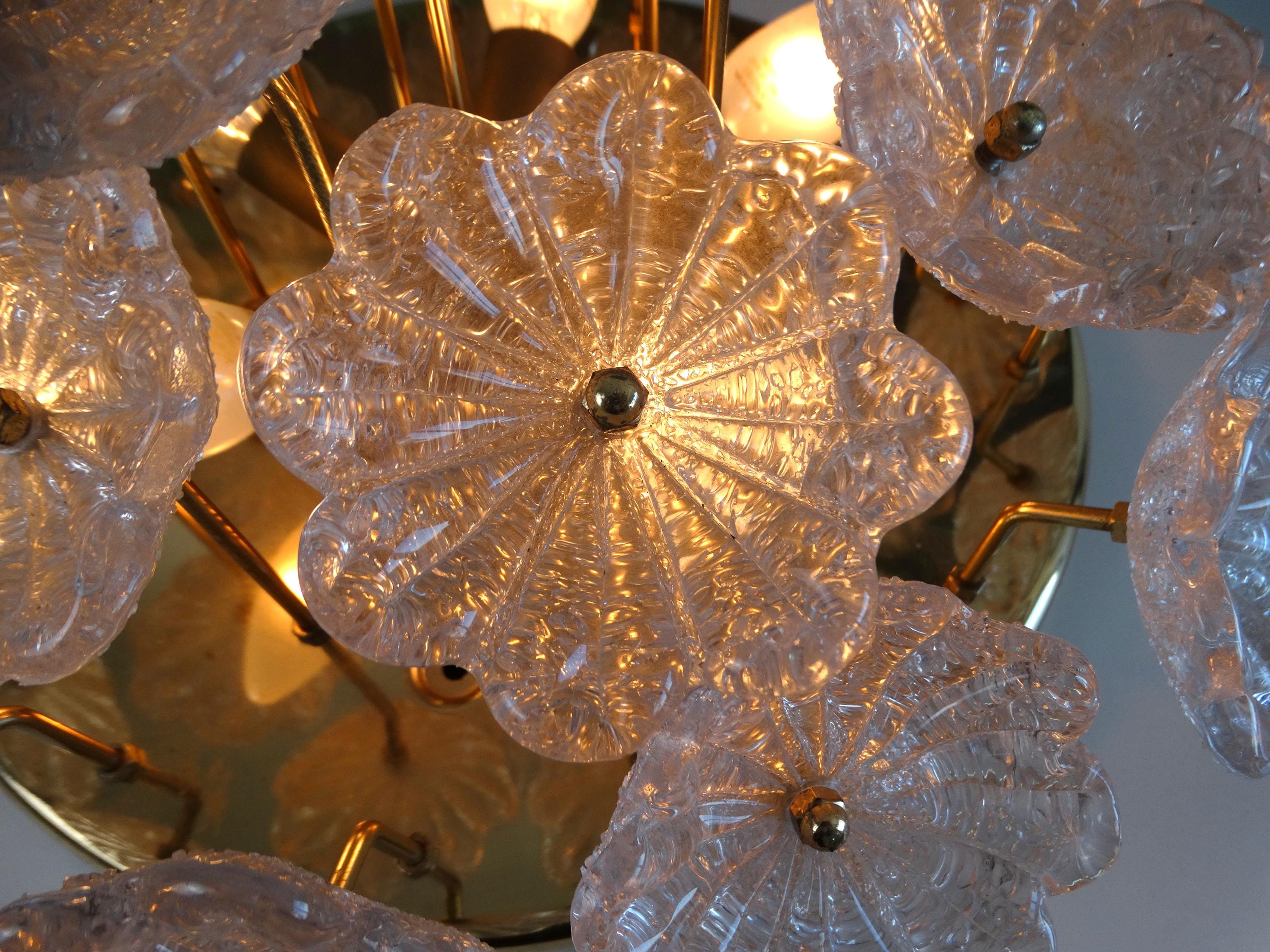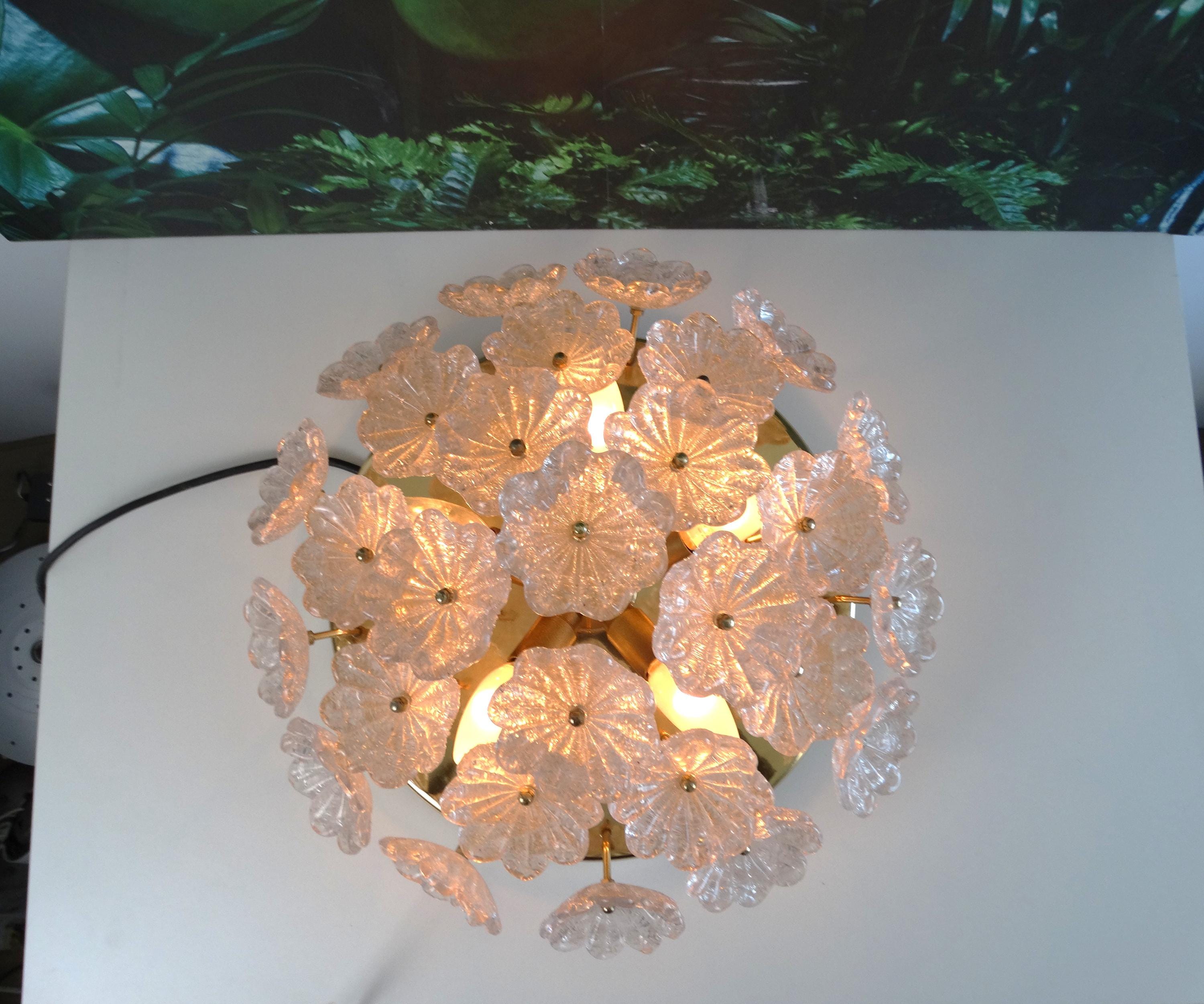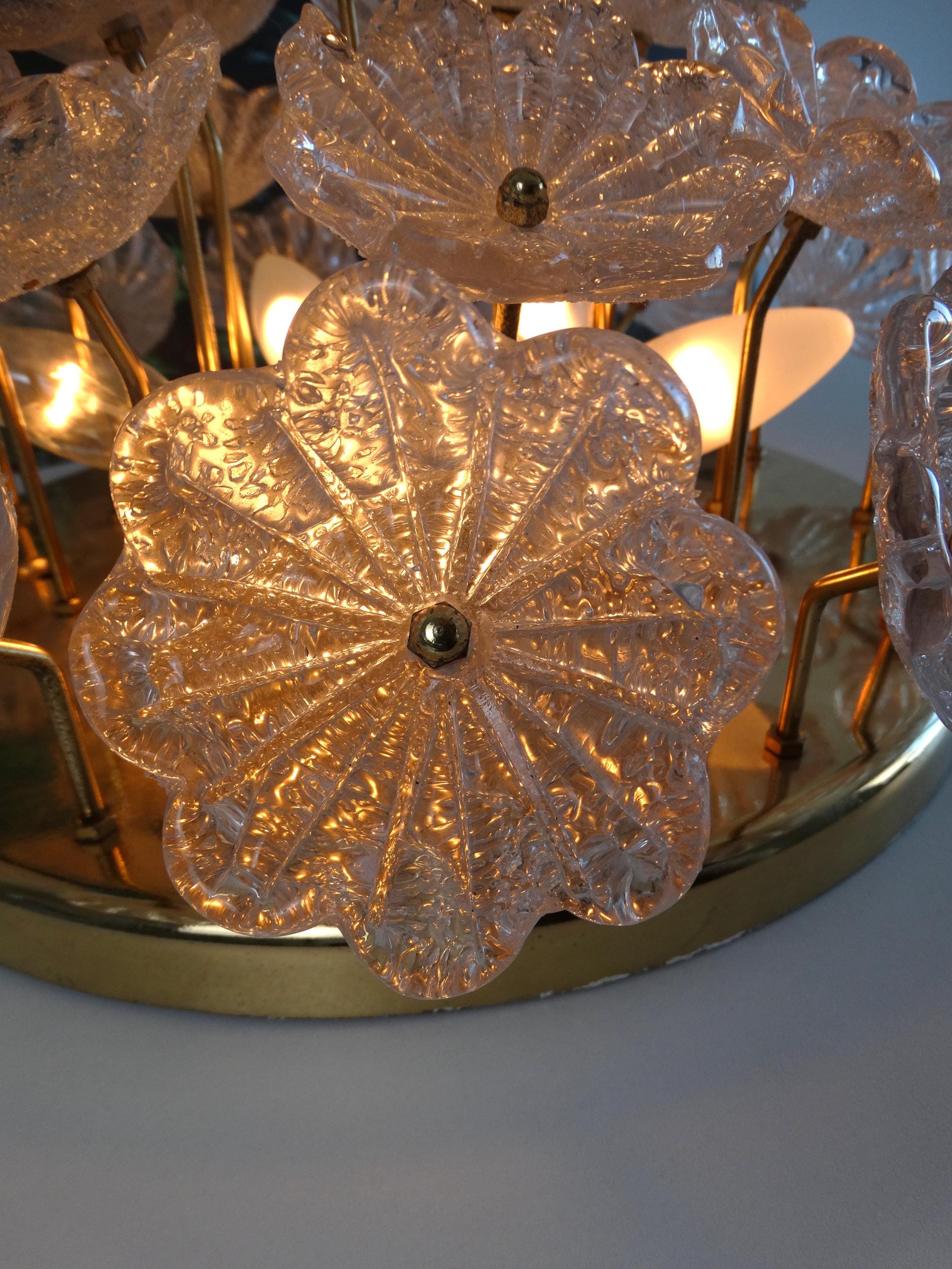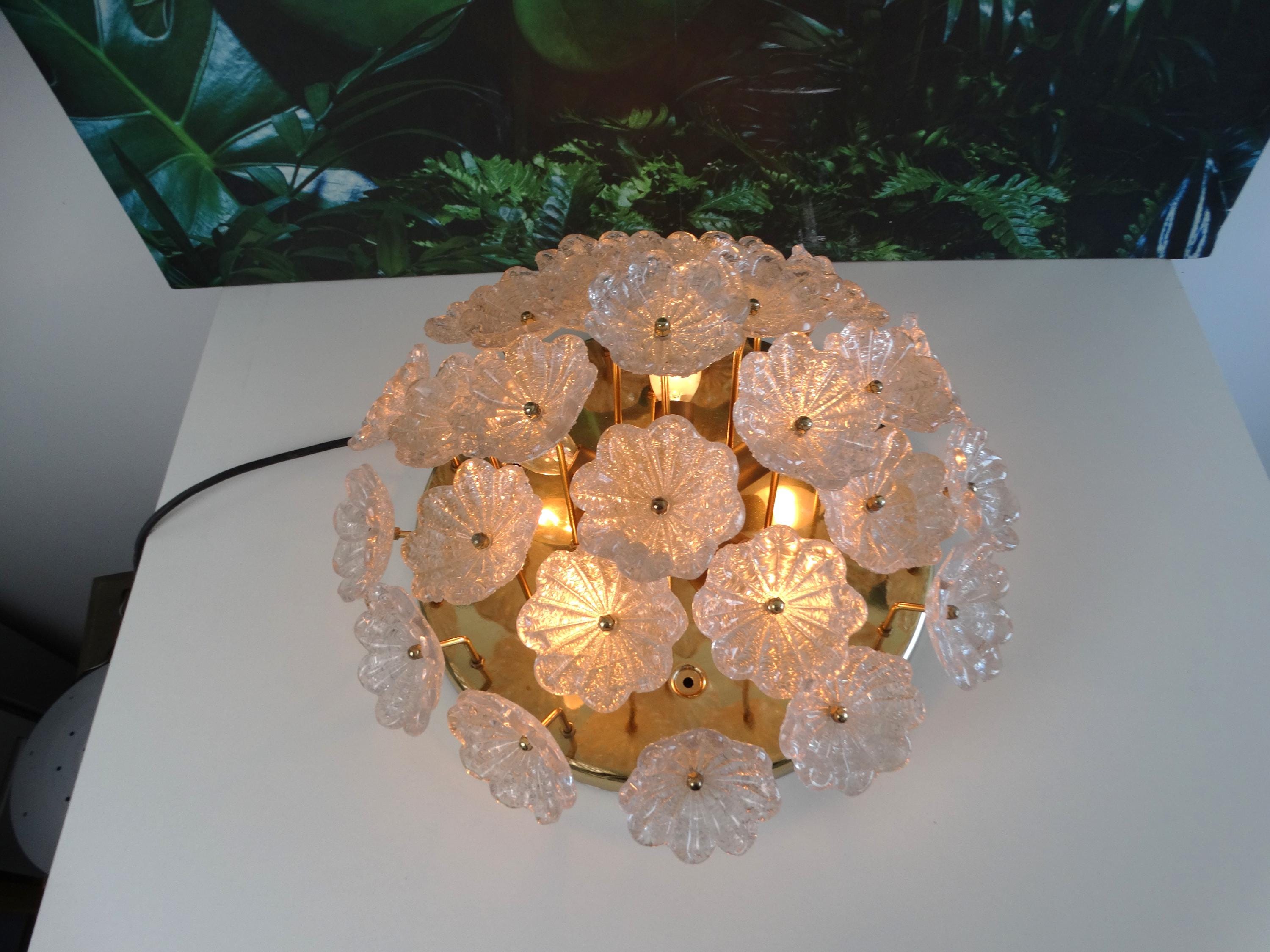 The base is made of brass, upon which 5 lamps with E14 fittings are situated and finished with 28 frosted glass flowers. Truly fantastic to behold.
