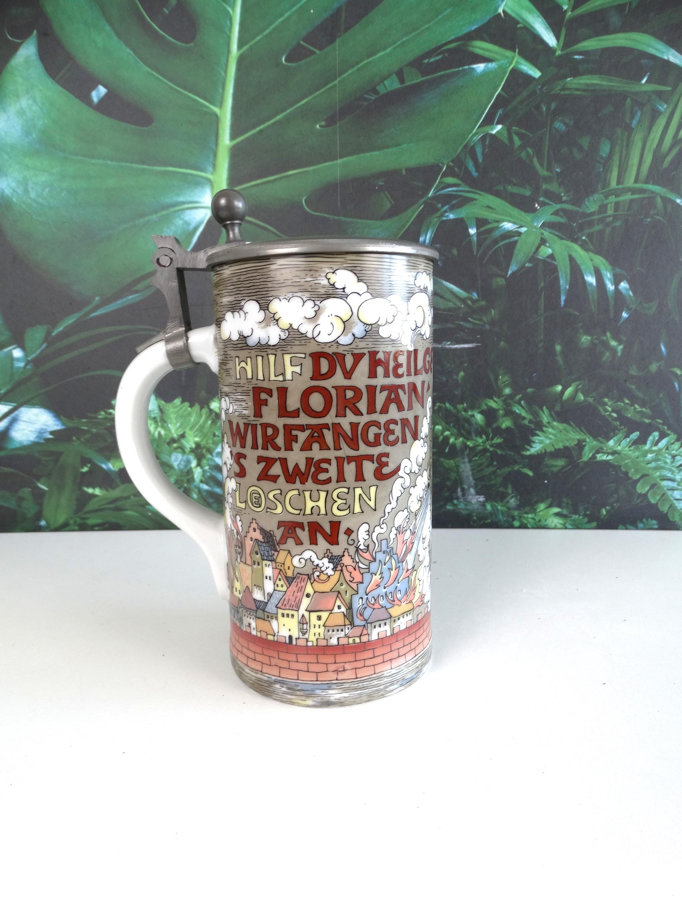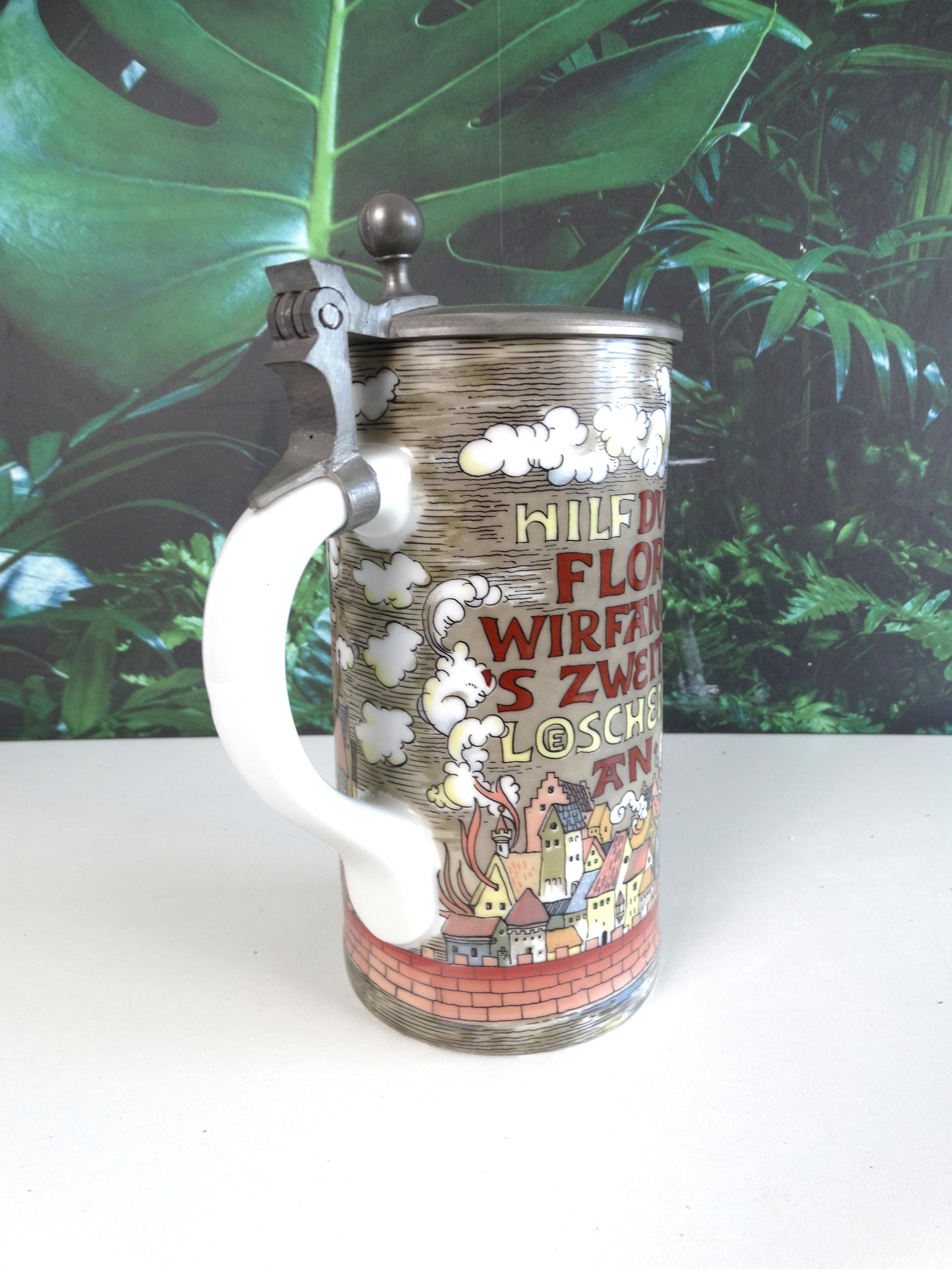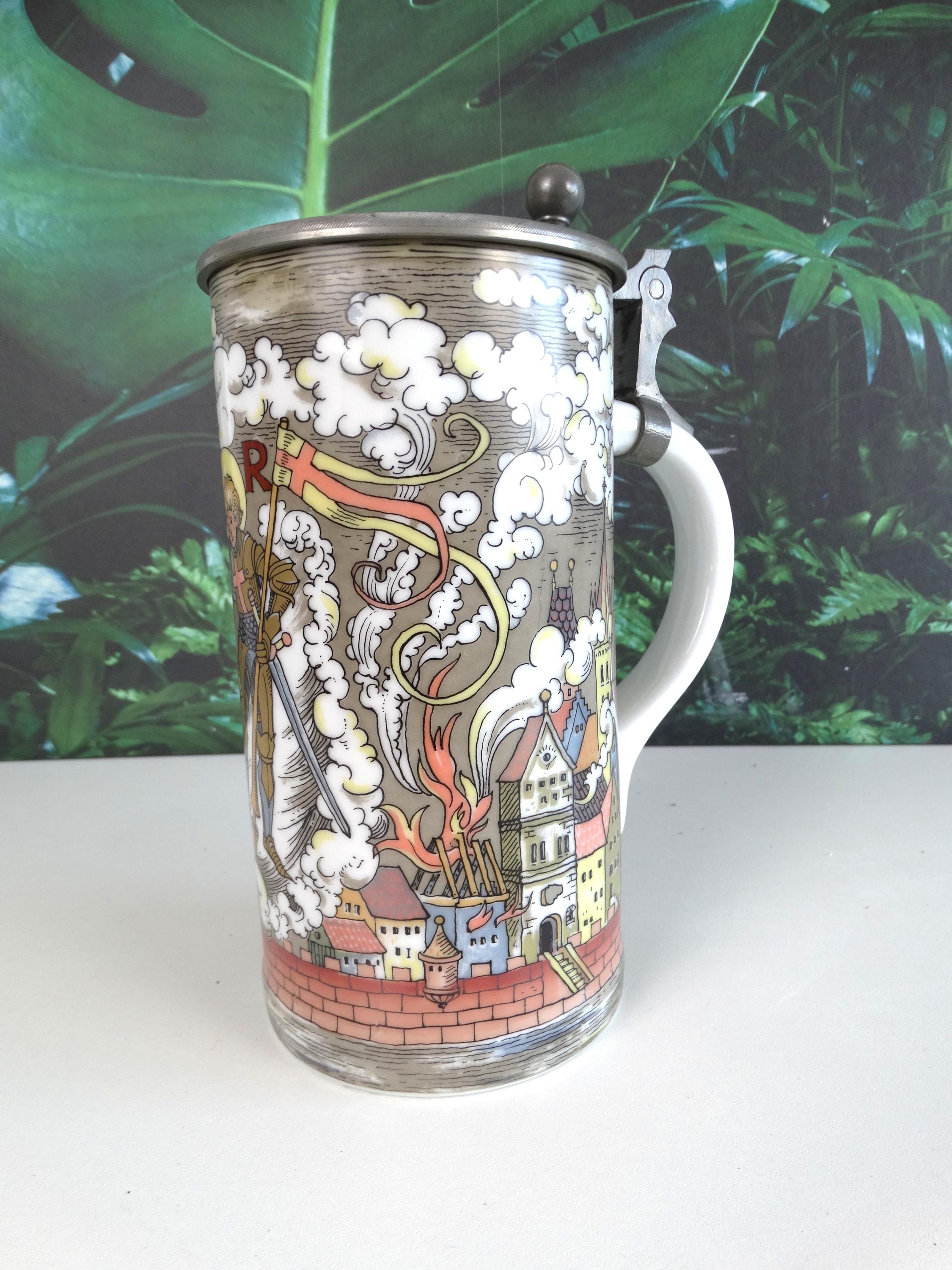 A rare antique beer mug of Joan of Arc, Hilf DuHeilge Floritan Wirfangen's Zweite Loeshen - made in Germany. Visit this shop for a wide range of vintage items.