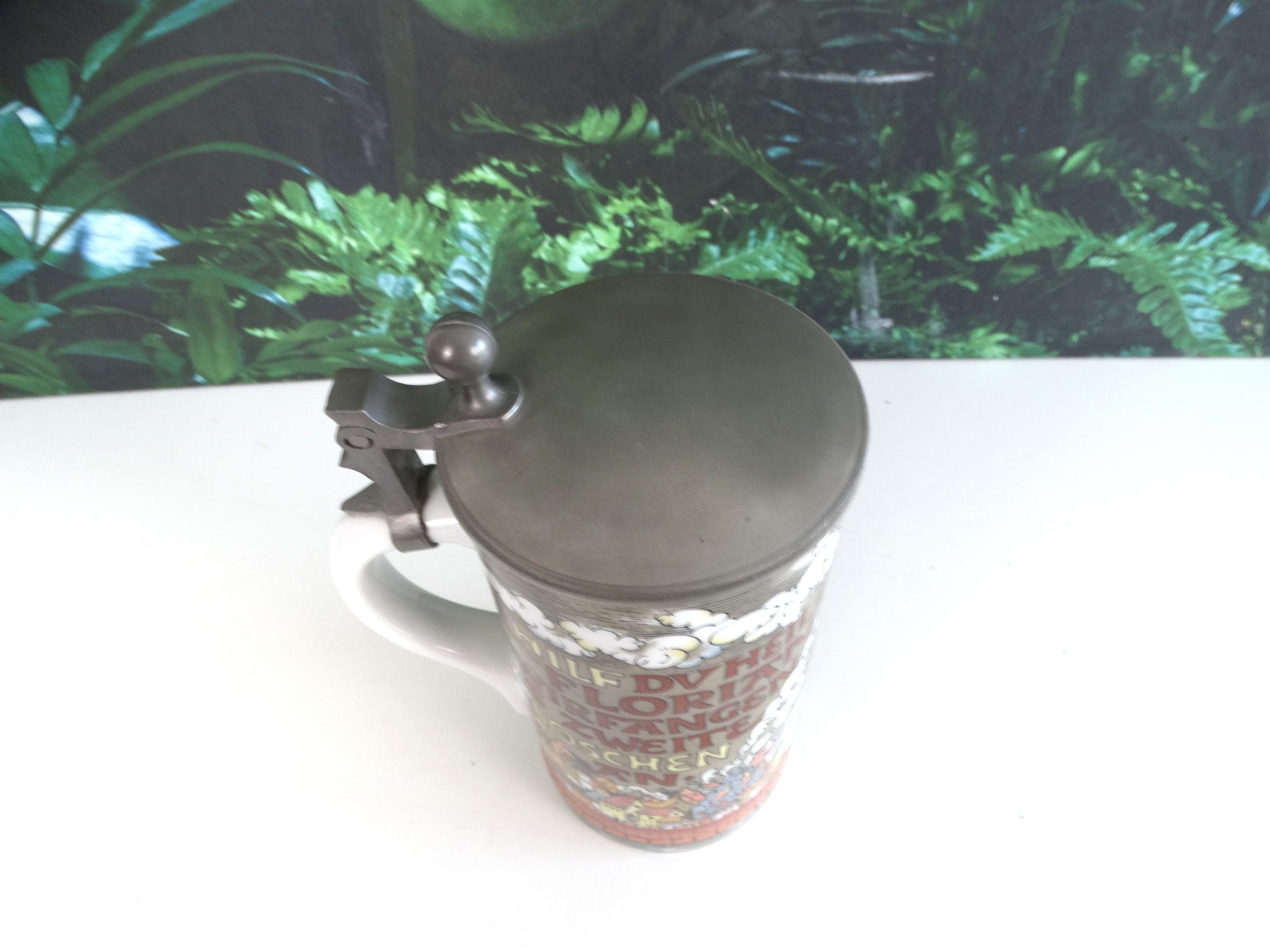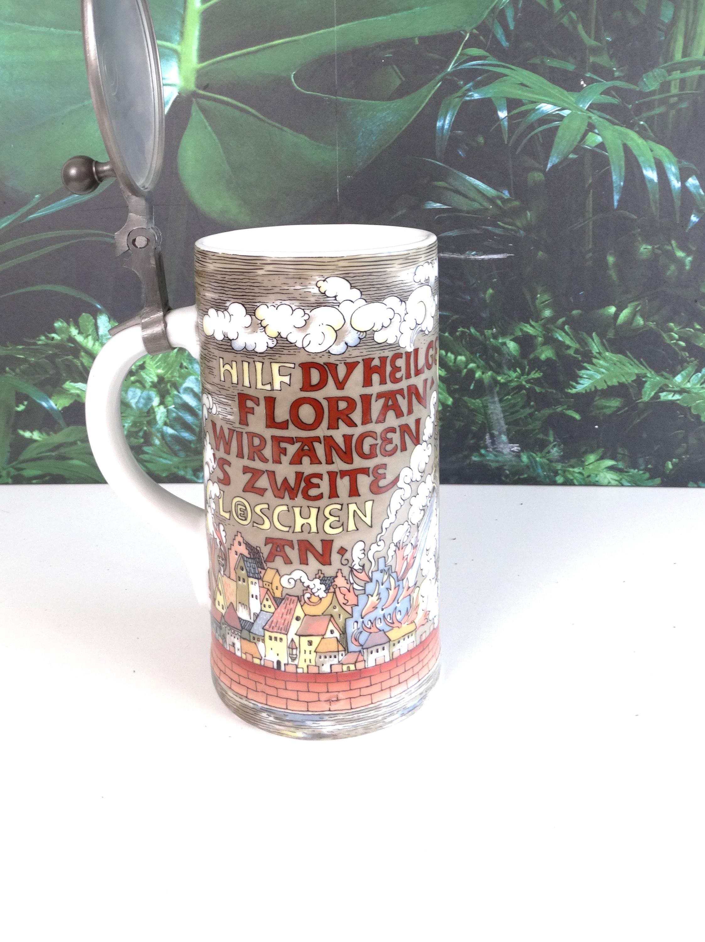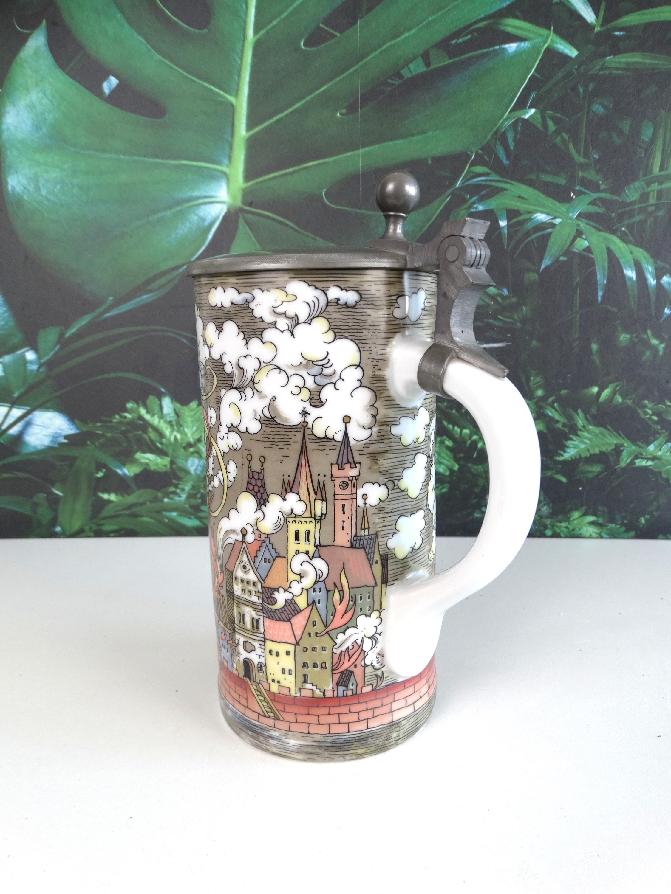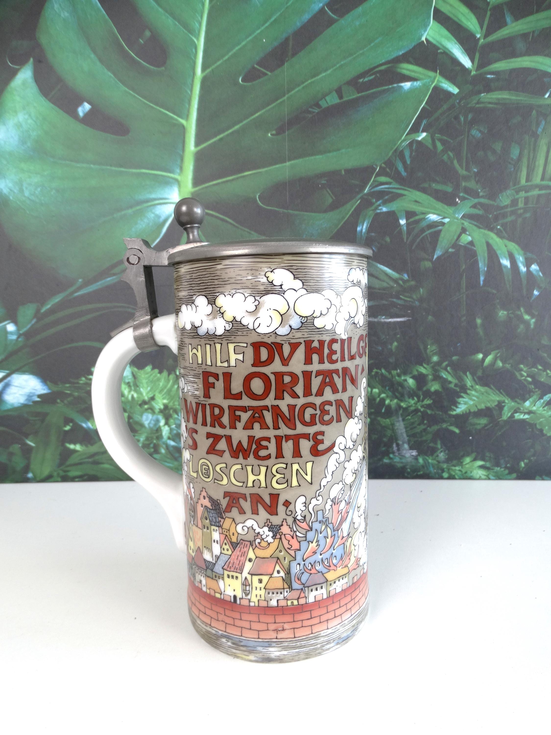 A rare antique beer mug of Joan of Arc, Hilf DuHeilge Floritan Wirfangen's Zweite Loeshen - made in Germany. Visit this shop for a wide range of vintage items.