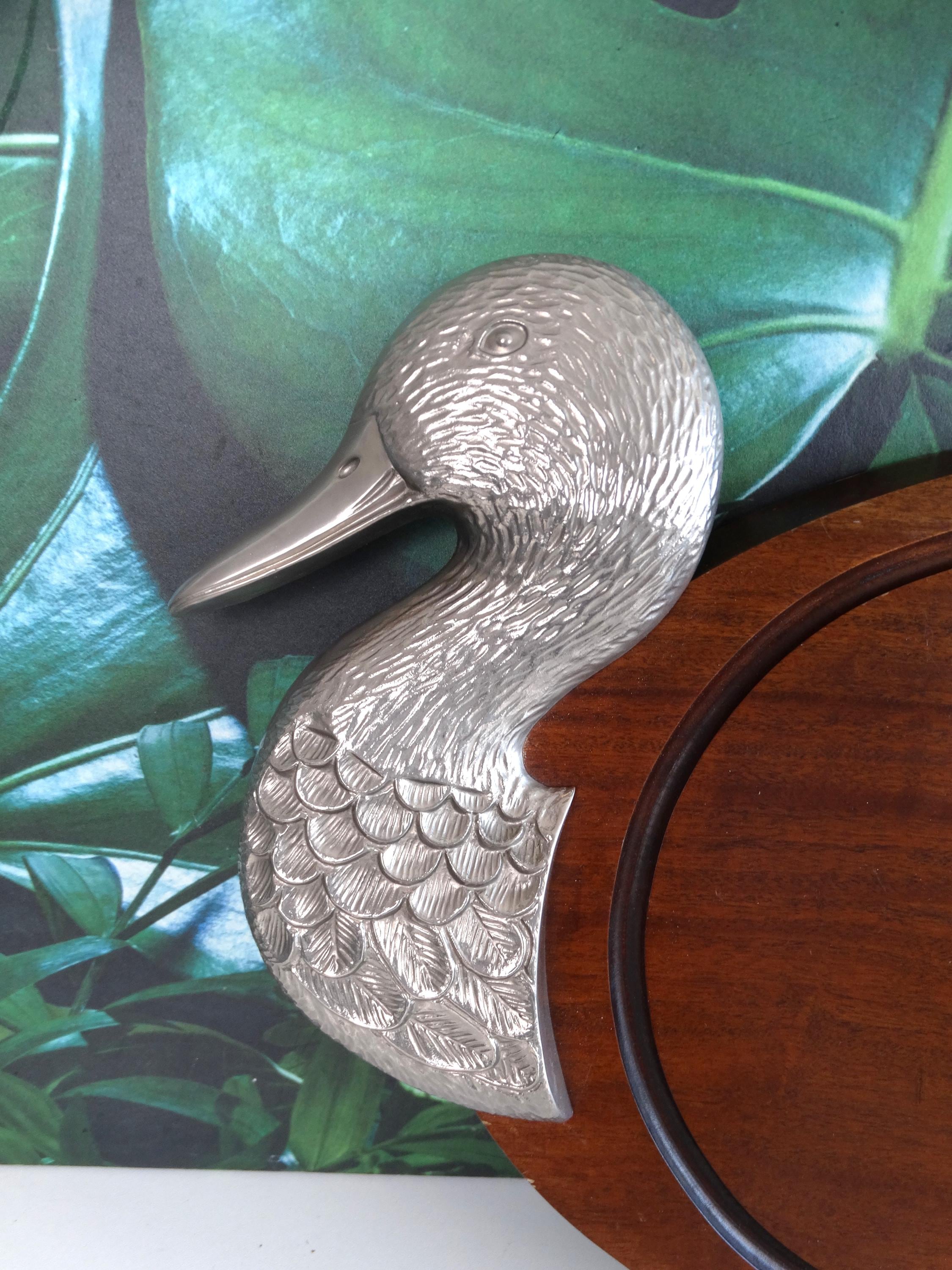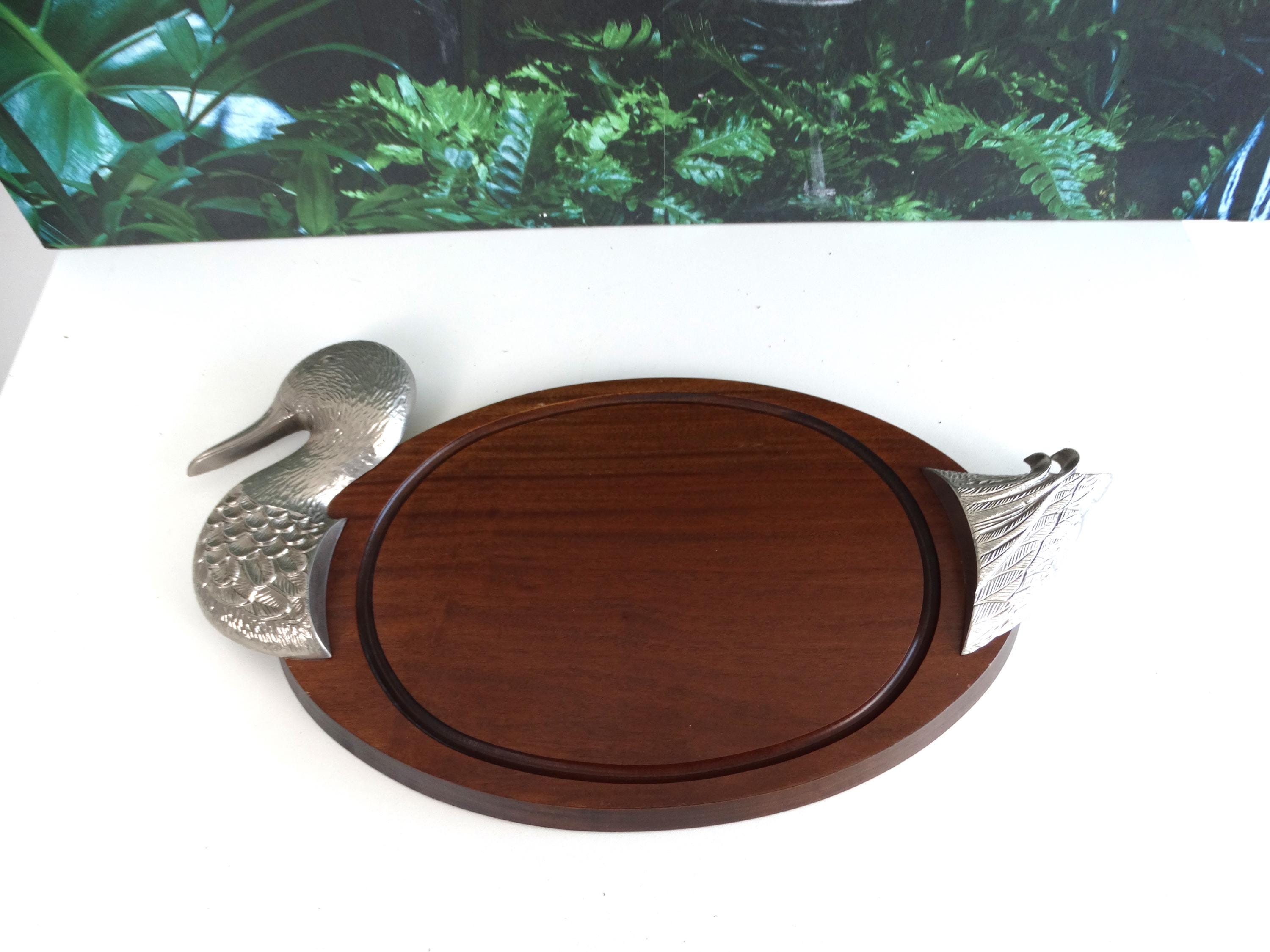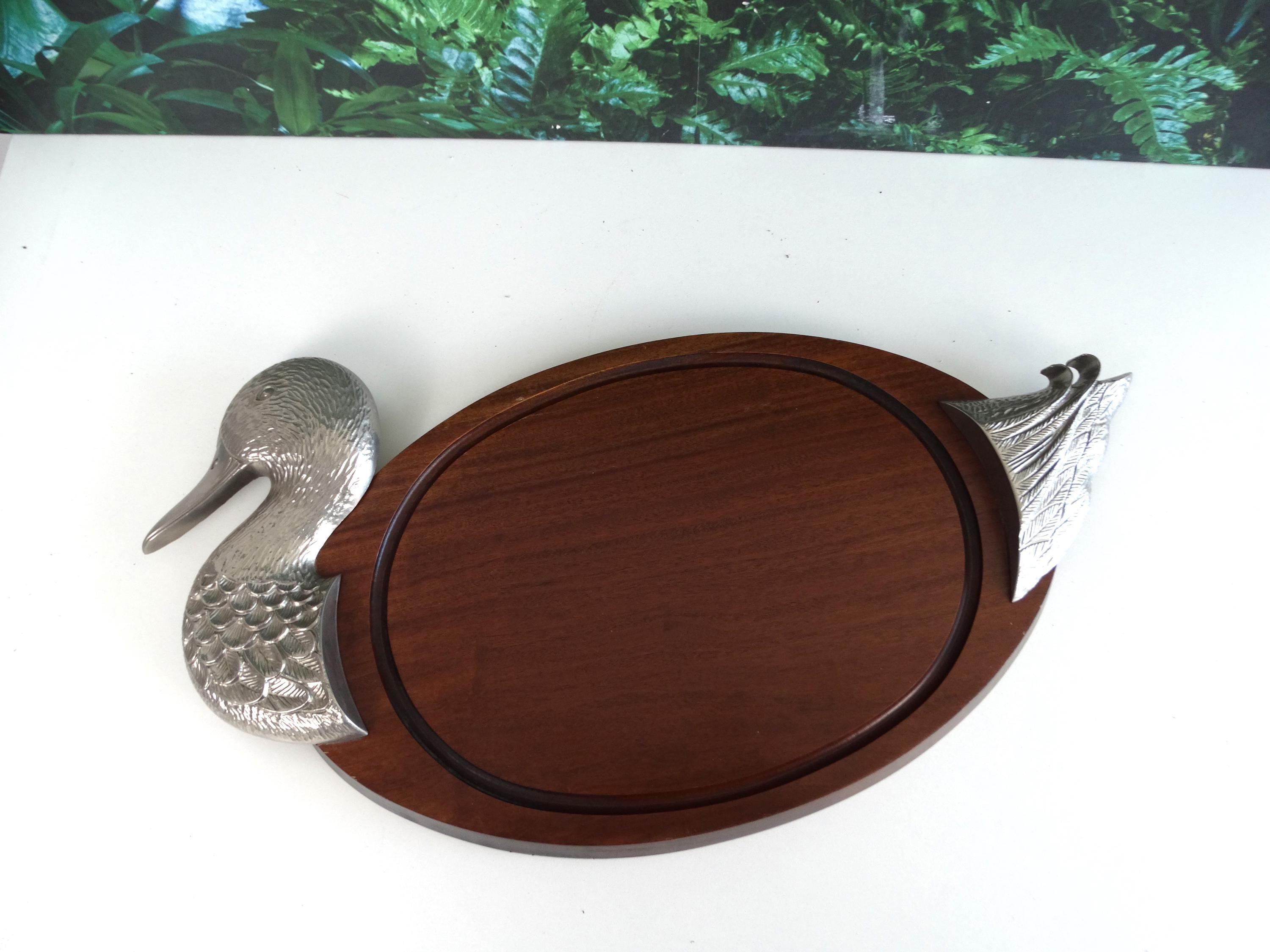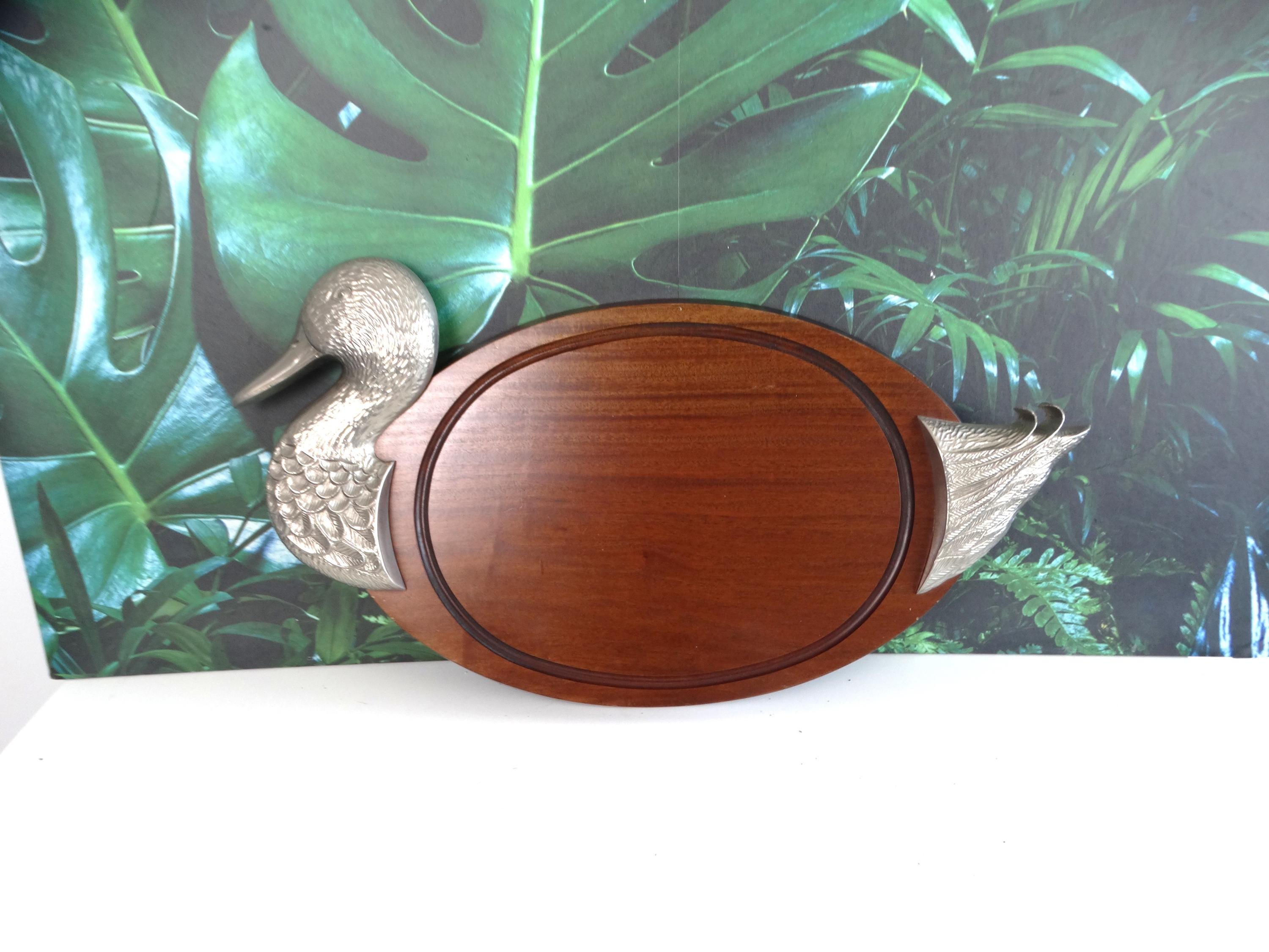 Very rare antique cutting board with duck decoration, wood waxed and patinated over time. This cutting board can also be used as wall-mounted kitchen decor. Plate presentation with its "duck" sculpture surrounding both sides.
