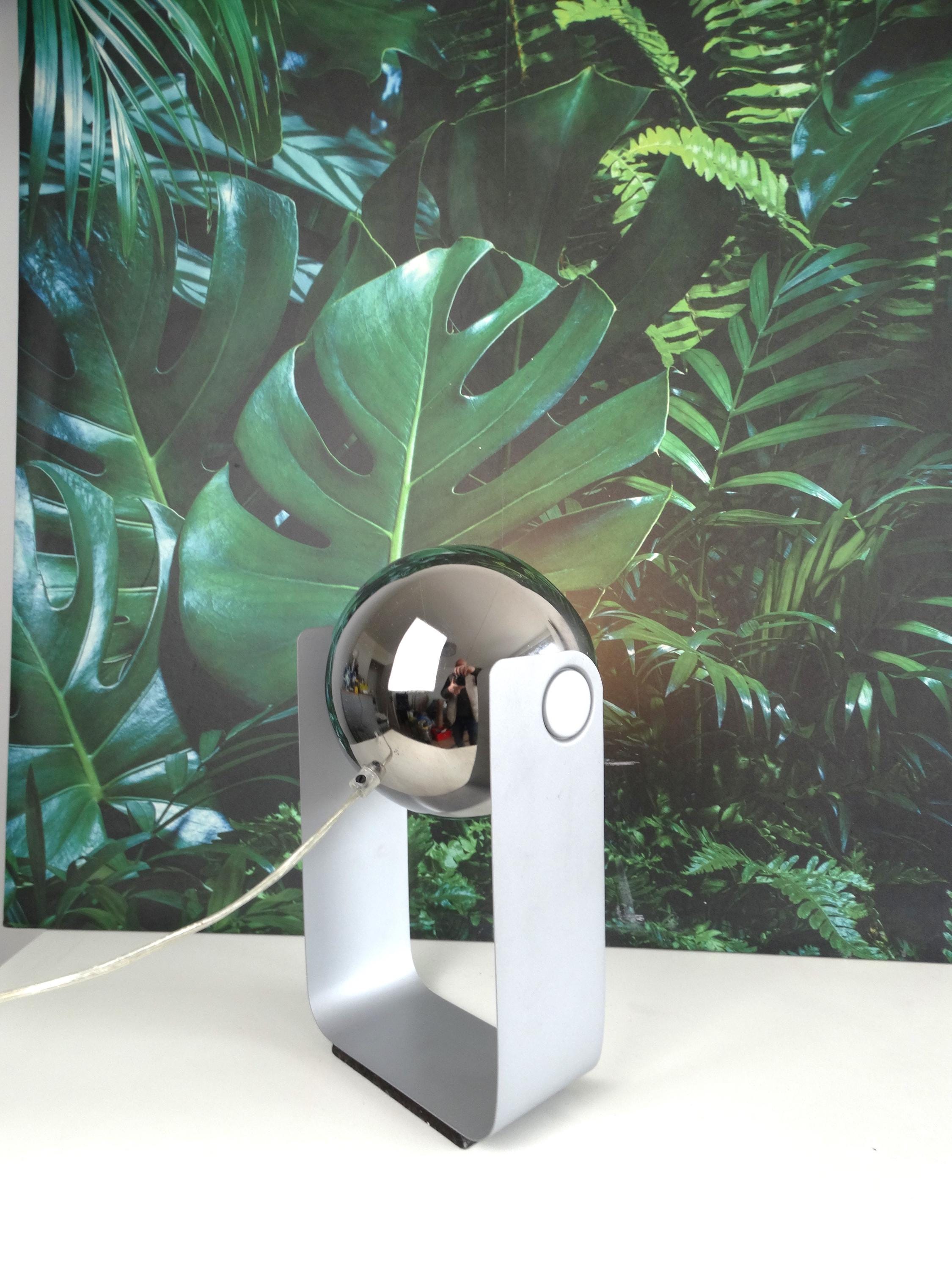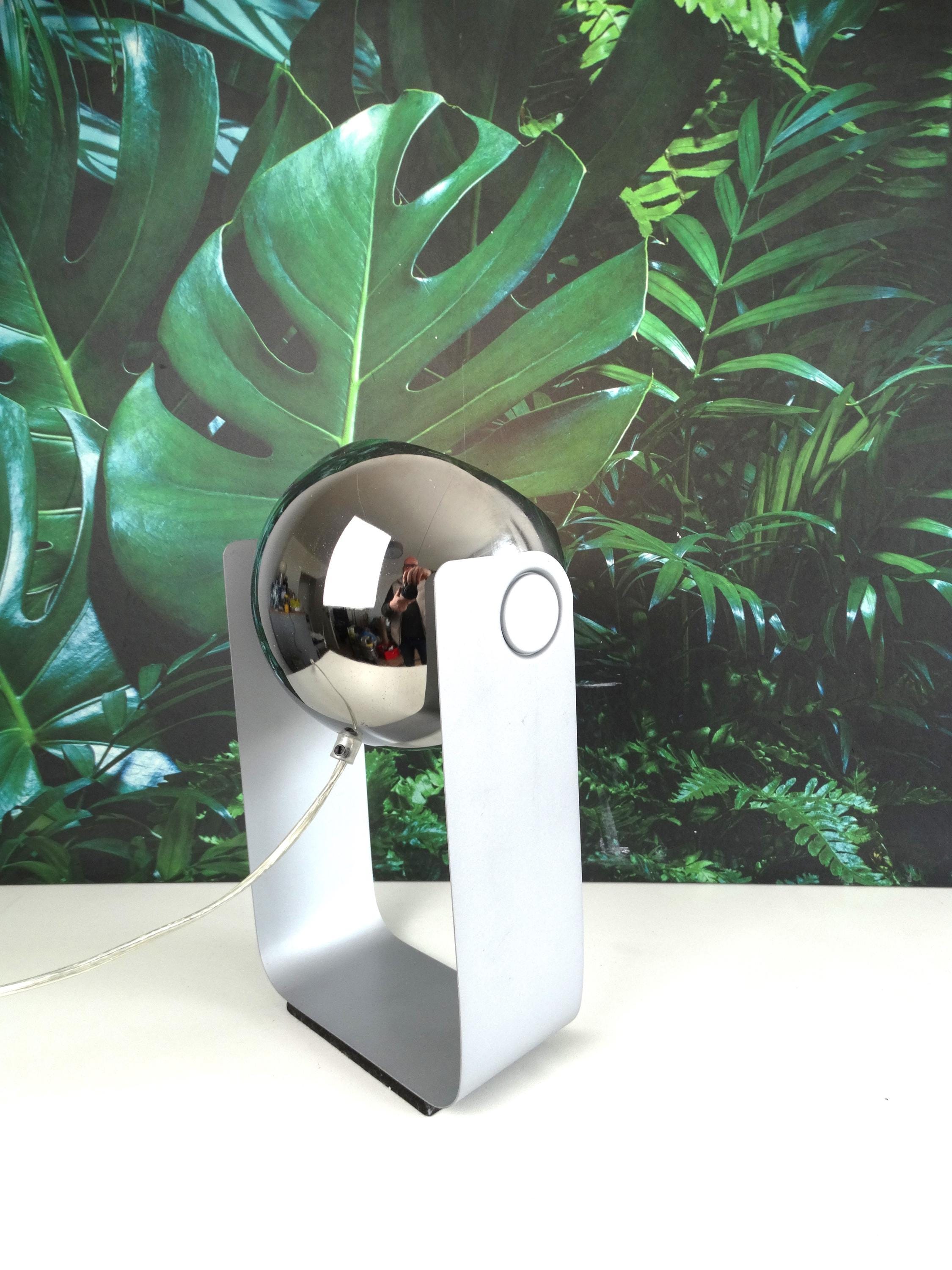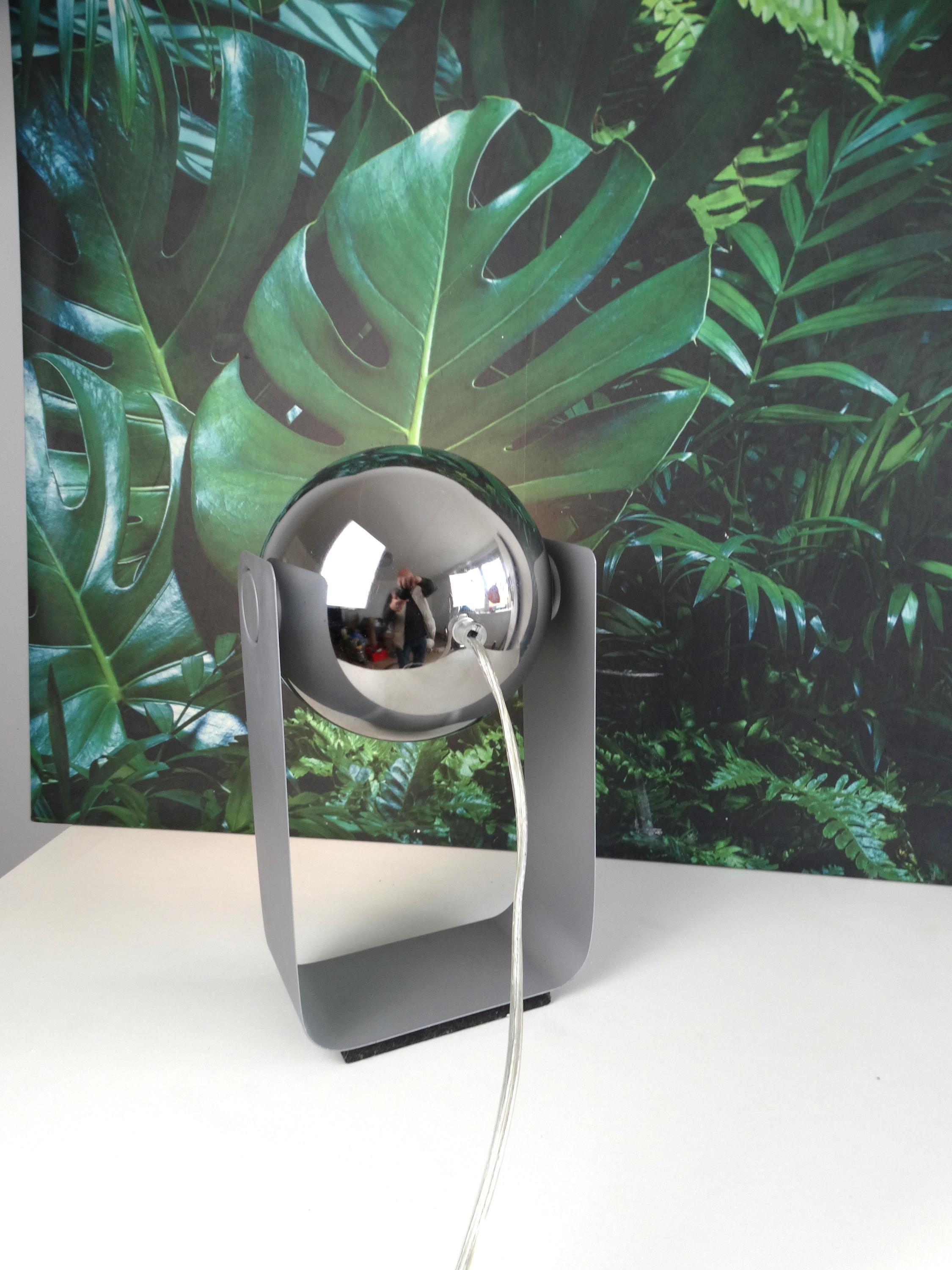 Chrome metal eyeball cap in an aluminium stand. The cap can rotate up and down.