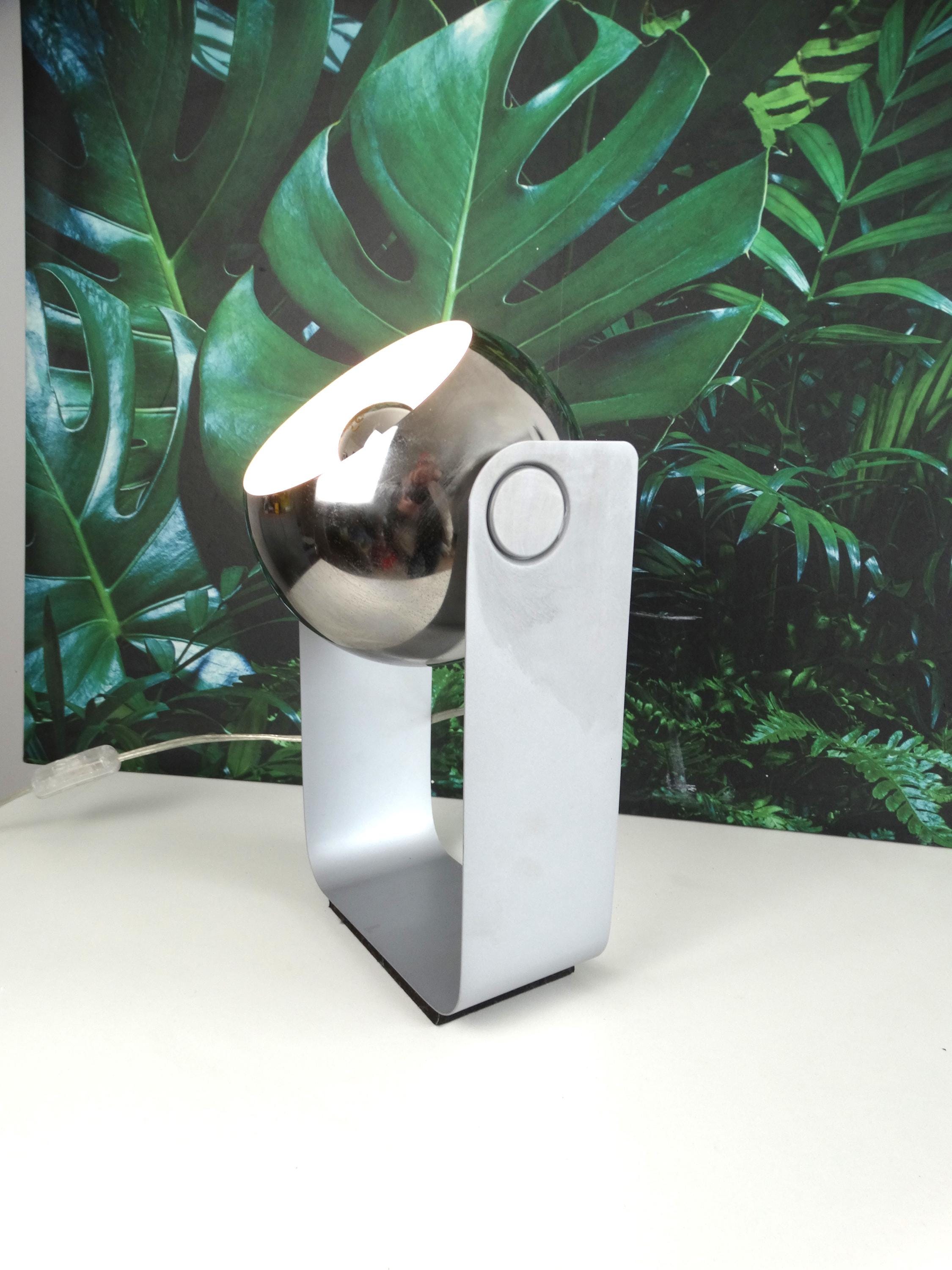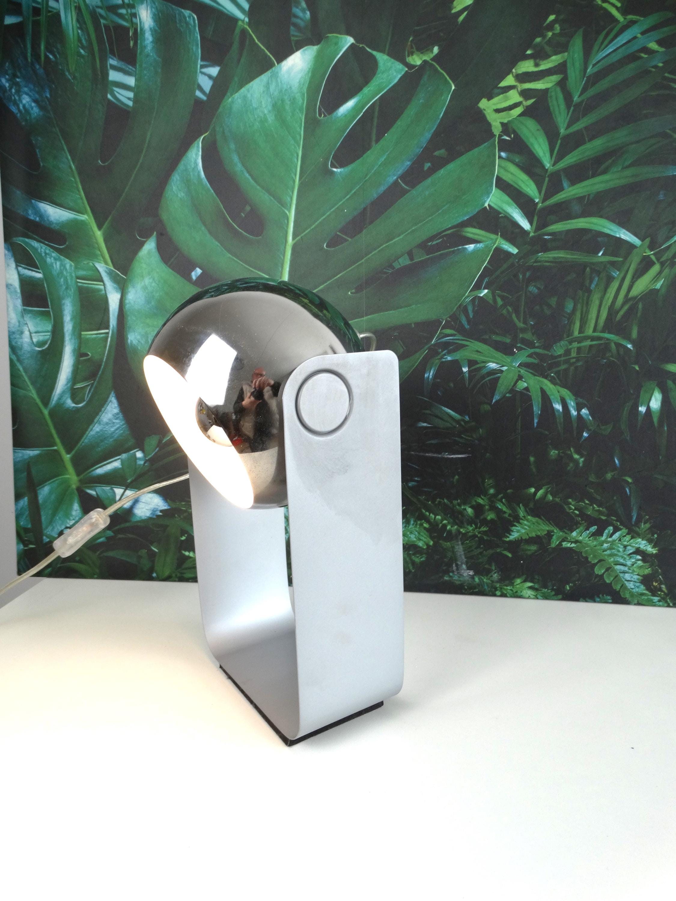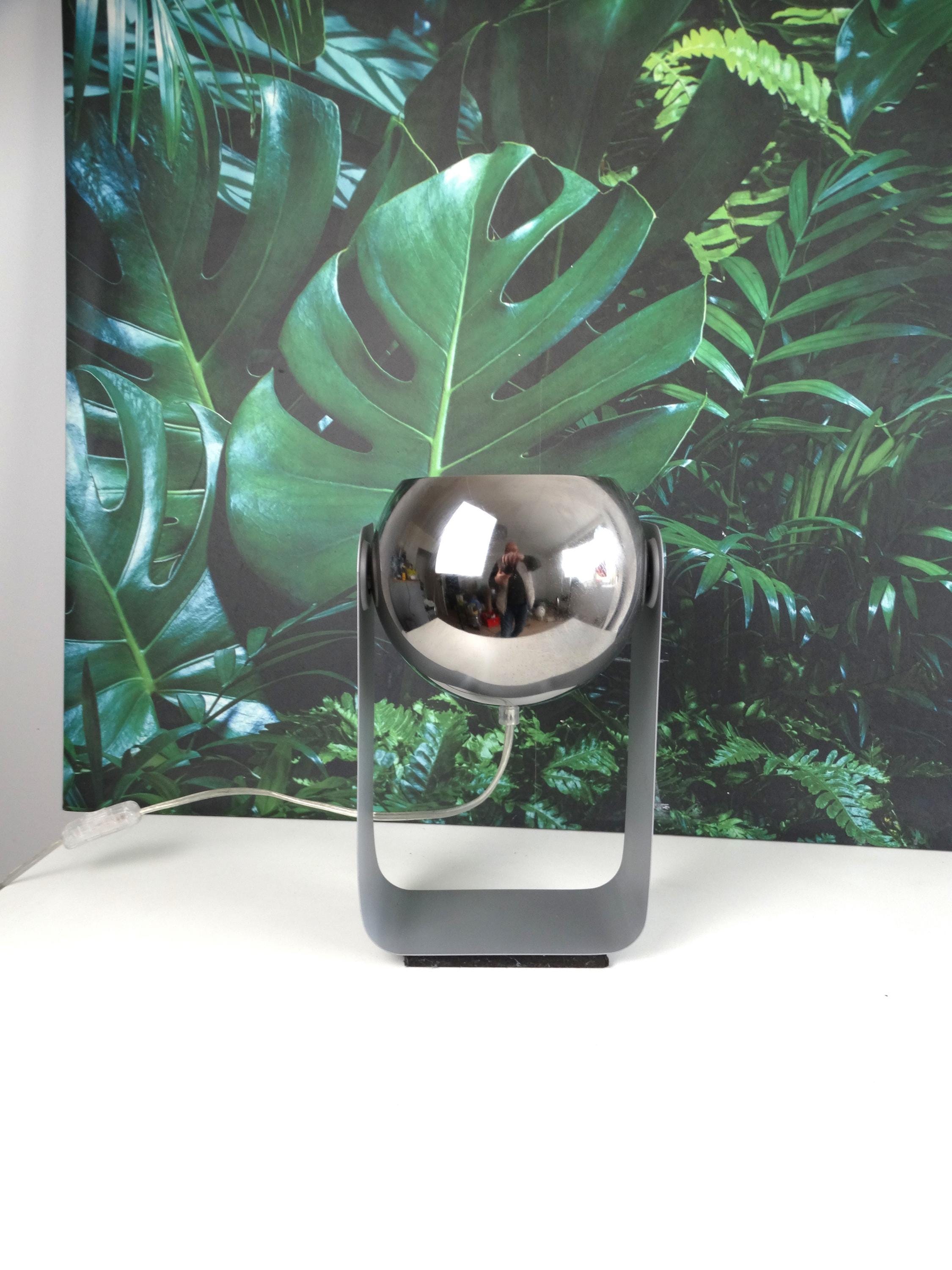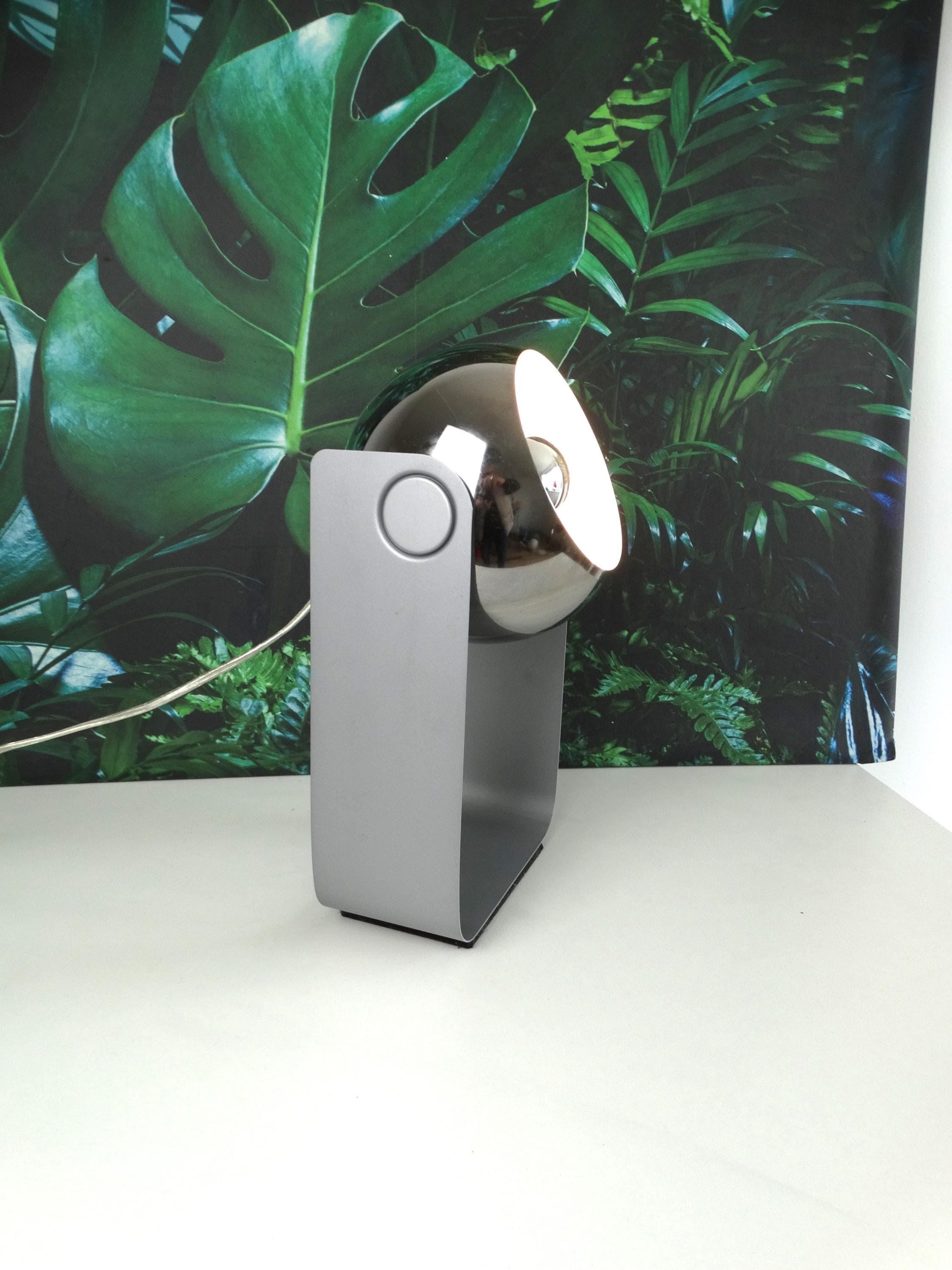 Chrome metal eyeball cap in an aluminium stand. The cap can rotate up and down.