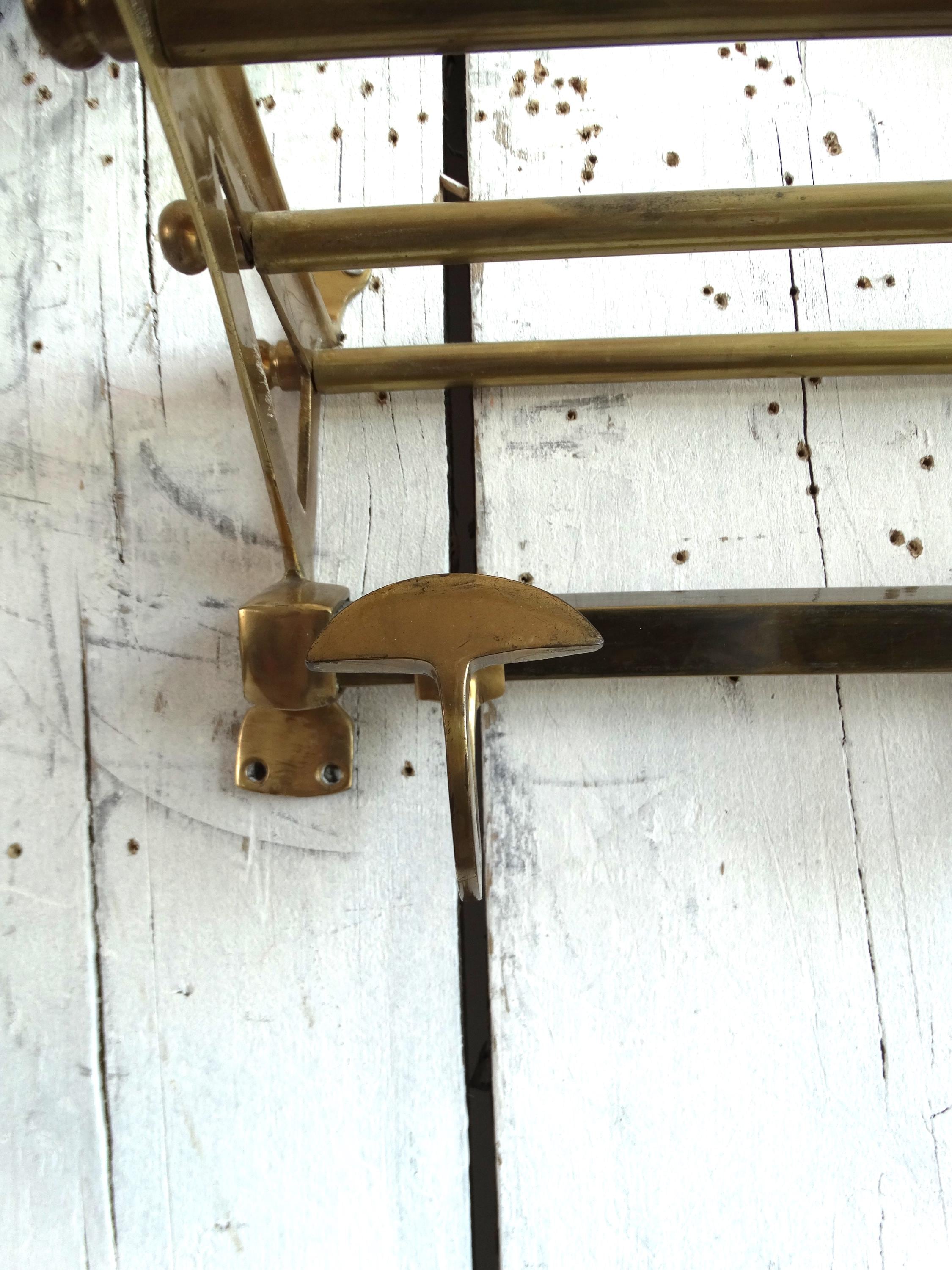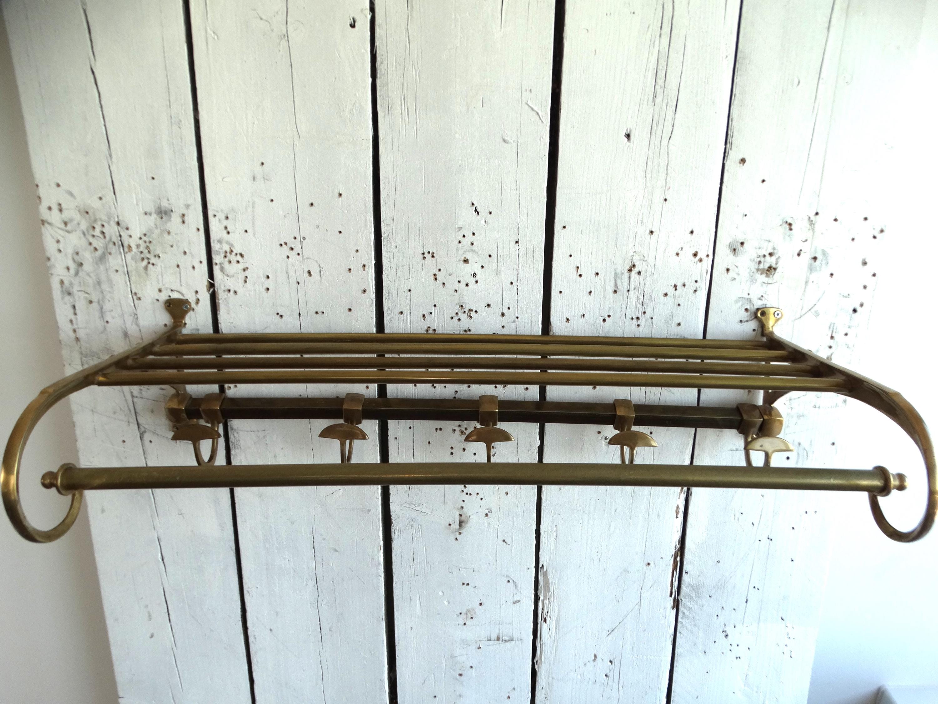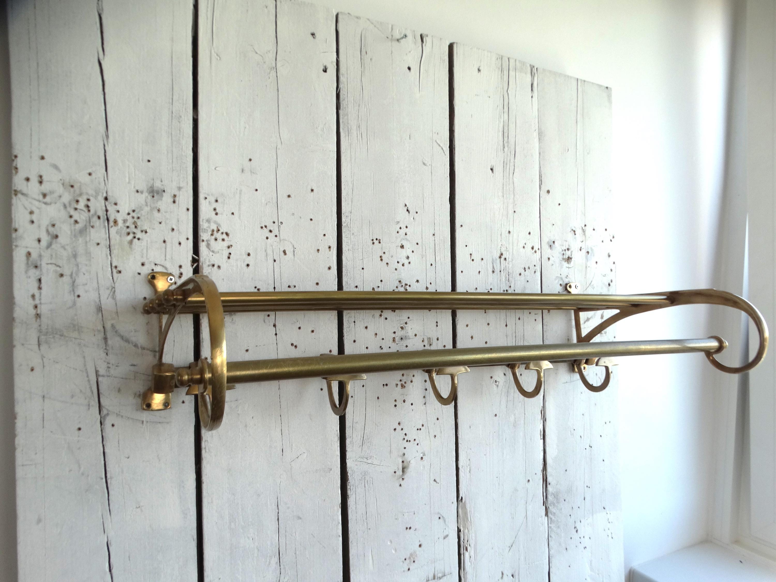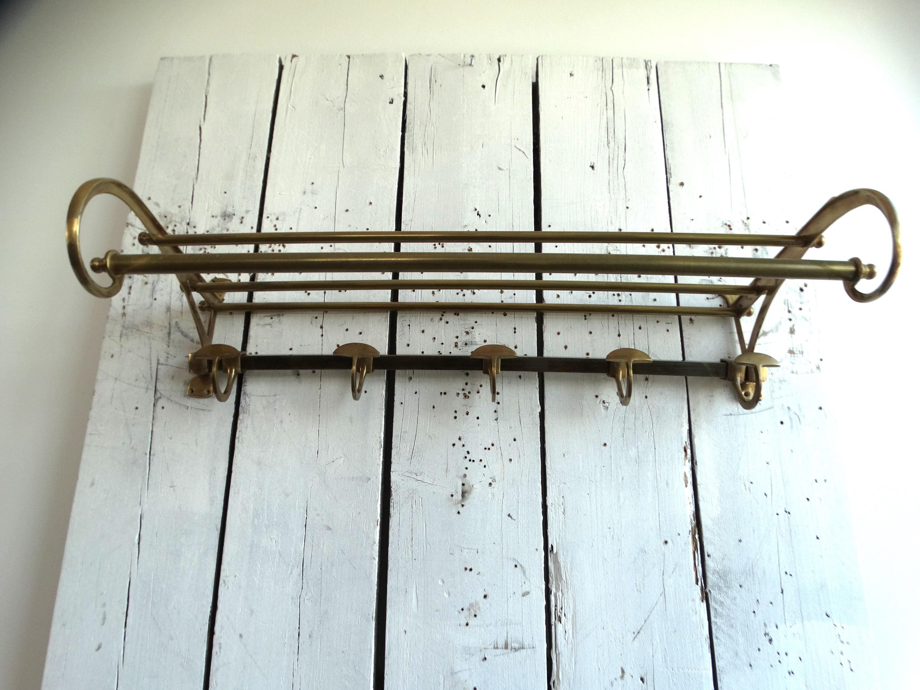 This coat rack is beautifully decorated and detailed with elegant knobs and beautifully shaped, sliding coat hooks. The hat shelf is formed by four round tubes, and the tube to which the hooks are attached is round. A total of five coat hooks.
