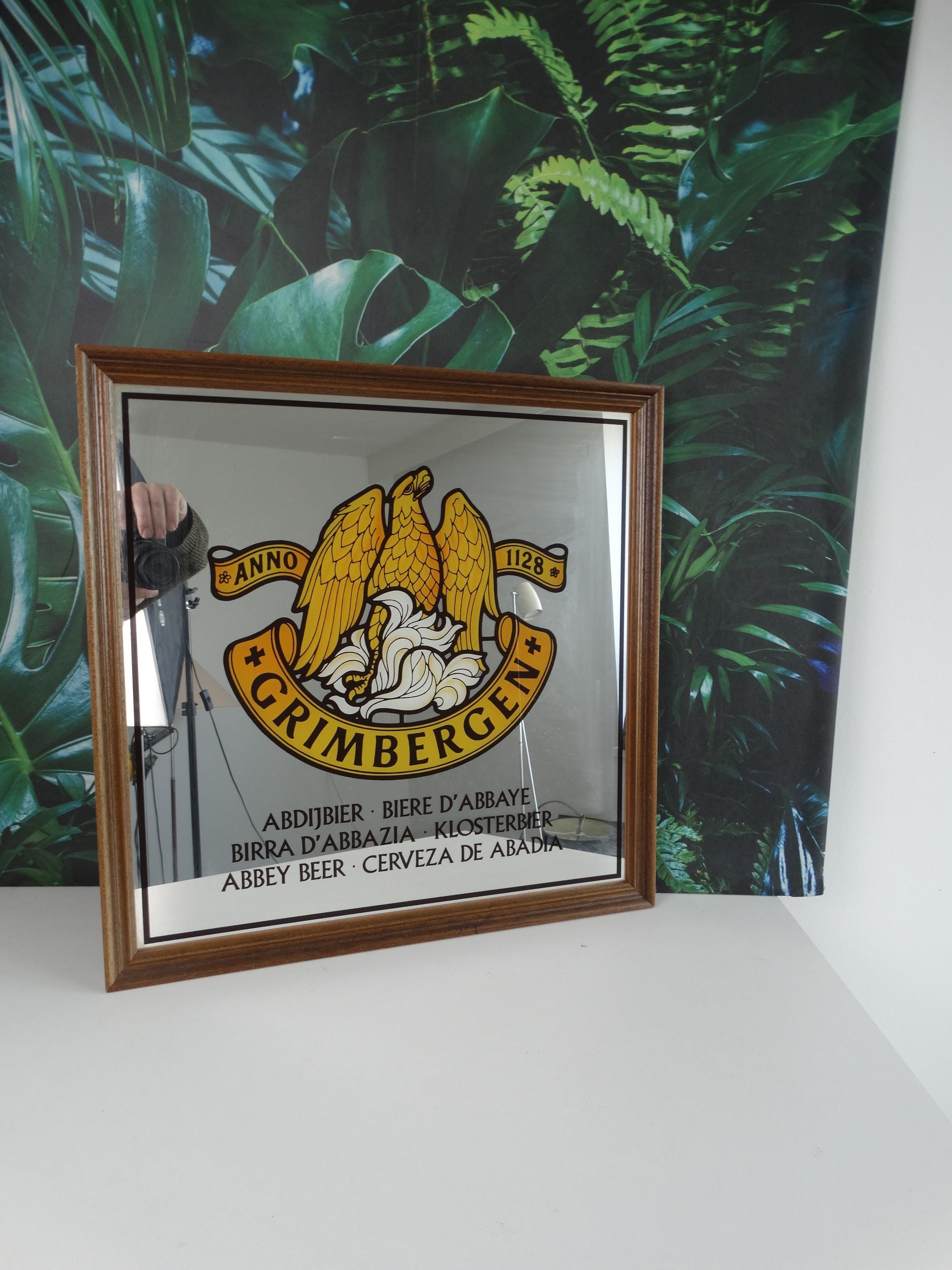 Vintage Grimbergen Abbey mirror from the 1980s.